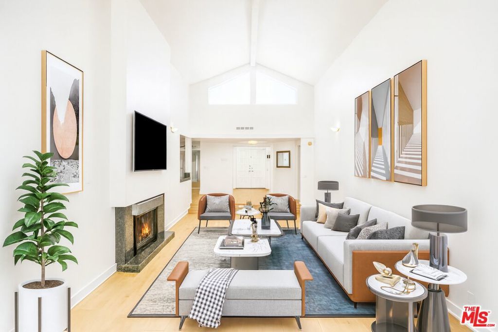 Rare front-facing top-floor penthouse in prime Westwood. This single-level, spacious 2-bed, 2-bath residence spans 1,991 square feet and features soaring vaulted ceilings, abundant natural light, and treetop views from multiple vantage points. The large living room with fireplace opens to a private terrace, ideal for quiet mornings or evening entertaining. An updated kitchen offers generous cabinetry and a breakfast area, adjoining a formal dining space with built-in bar. The expansive primary suite includes dual closets, a walk-in, and a beautifully scaled bath with separate soaking tub and shower. A second bedroom and full guest bath complete the well-proportioned layout. Additional features include in-unit laundry, central HVAC, and gated side-by-side parking with EV charger. The building offers controlled access, pool, spa, fitness room, and a community recreation space with pool and ping pong tables. Ideally located moments from UCLA, Westwood Village, and Brentwood. 13 month minimum lease.