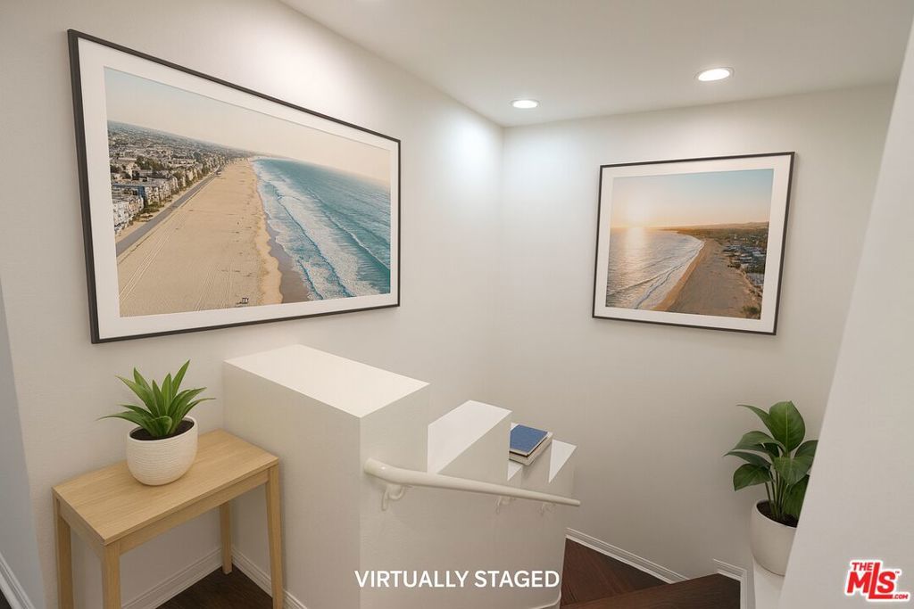 South-Facing Water Fountain Views + Serene Sounds at this naturally bright and airy 2-Story Metro Condo! Sophisticated charm and tons of natural light exude in this spacious and beautifully maintained 2-bedroom, plus flex space den/home office, 2.5-bath residence located in the heart of Silicon Beach within Playa Vista's highly sought-after Metro Building. This front-facing unit features two side-by-side parking spaces and offers a versatile floor plan. The first level includes a flexible space ideal for a guest bedroom or home office. Upstairs, the primary suite provides a peaceful retreat with a spa-inspired bathroom featuring a soaking tub, separate walk-in shower, dual vanities, and two closets. The second en-suite bedroom enjoys tranquil tree-top views and the soothing sounds of the nearby water fountain. Additional highlights include secure mail and package delivery in a locked mailroom. HOA dues include trash, and access to Playa Vista's premier amenities The Resort and CenterPointe Club fitness centers, pools, and spas.Experience the best of urban living in Playa Vista with unmatched access to Silicon Beach's vibrant energy, shops, dining, and entertainment. Photos are virtually staged and enhanced. Buyer to verify all information to their satisfaction.