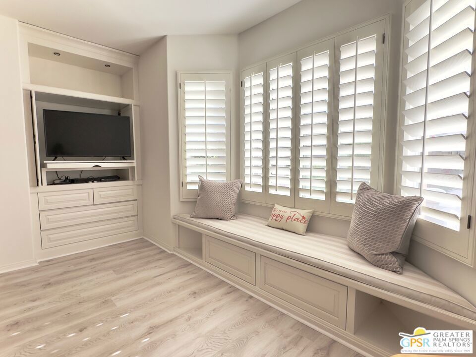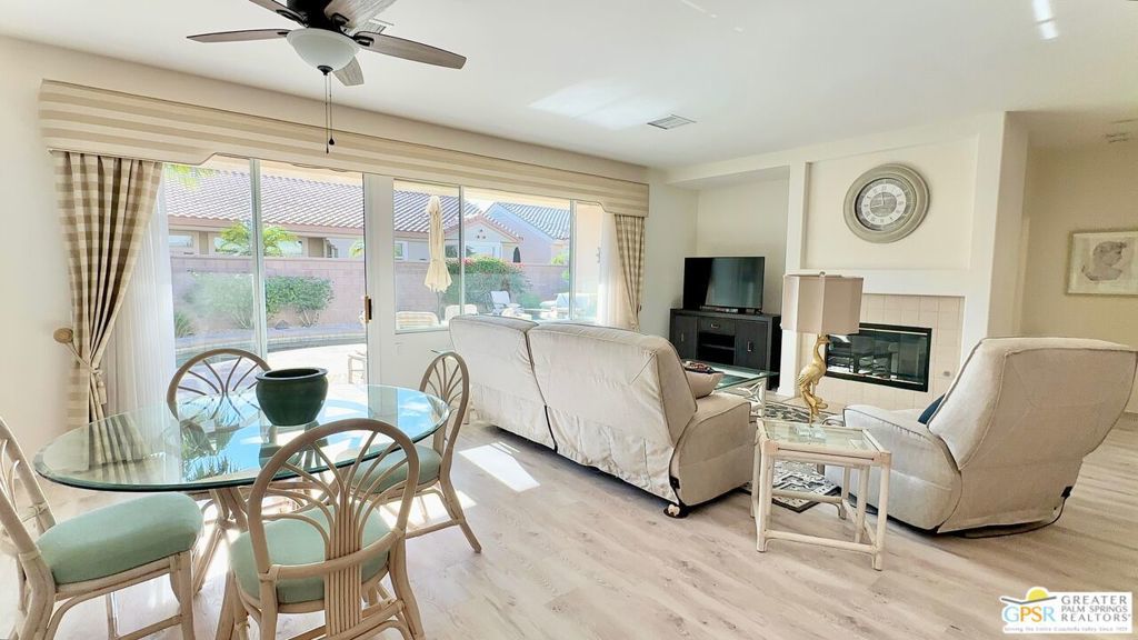 Welcome to Sun City, where every day feels like a vacation. This beautifully maintained 3-bedroom, 2-bath home with a private pool and firepit is perfectly designed for active adults 55+ seeking a vibrant, resort-style lifestyle in the Southern California desert. Step inside to discover an inviting open floor plan filled with natural light, featuring convenient cabinet pull-outs, a spacious primary suite with built-ins, and a two-car garage with built ins offering plenty of room for golf clubs, storage, or hobbies. Relax or entertain outdoors in your private backyard oasis, complete with a sparkling pool, firepit, and patio seating area ideal for cool desert evenings and gatherings with friends. Located in the heart of Sun City Palm Desert, a premier gated golf course community of nearly 5,000 homes, you'll enjoy access to endless amenities including two championship golf courses, tennis and pickleball courts, indoor and outdoor pools, fitness centers, on-site restaurants, and social clubs.This is more than a home it's a new chapter in resort-style living, where you can enjoy every moment surrounded by friendly neighbors, sunshine, and desert beauty. Discover the active adult lifestyle you've always dreamed of in the Coachella Valley, where comfort, connection, and leisure come together perfectly.