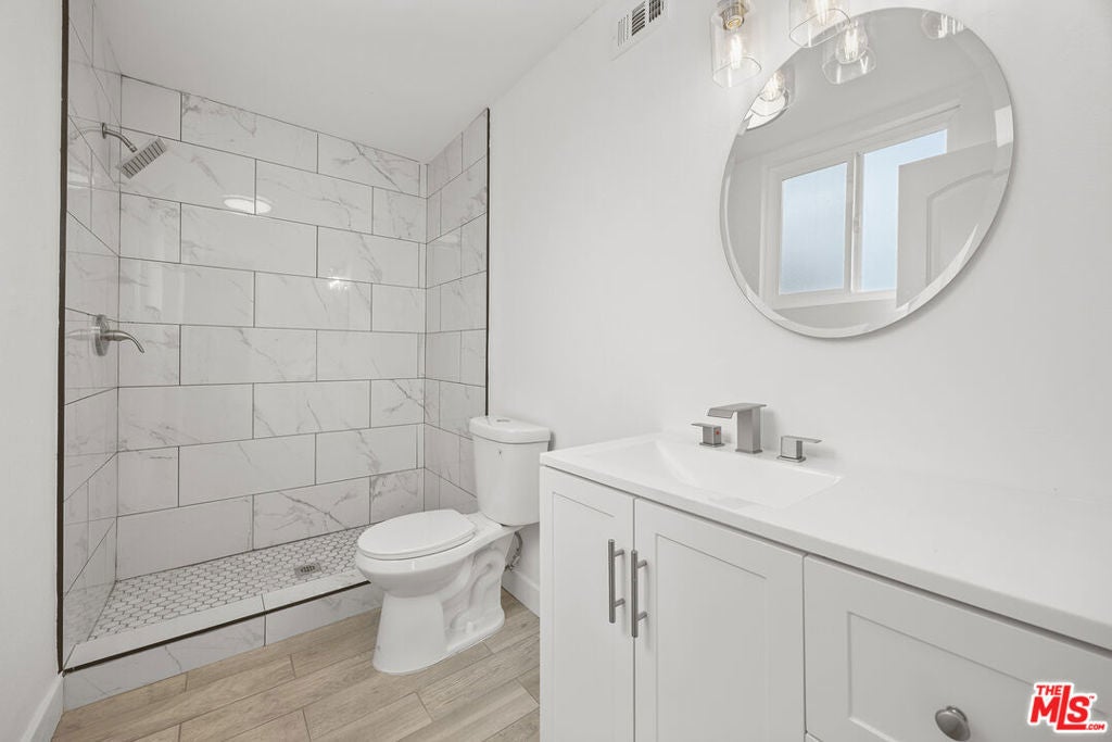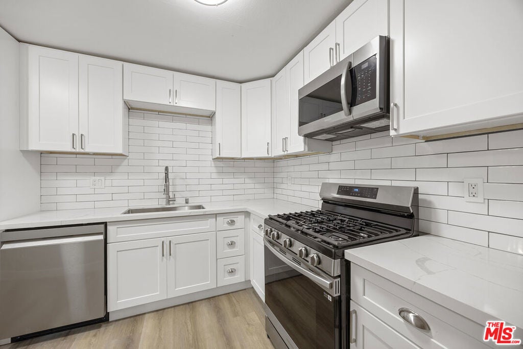 Completely remodeled end unit condo in a peaceful pocket of Van Nuys. This 2 bedroom 1 3/4 bathroom unit offers plenty of natural light and has new luxury vinyl flooring, new paint, new windows, new bathrooms and kitchen. Lots of storage space inside unit. Ample size balcony. New HVAC system. Two underground parking space. Unit located at the end of building facing Ranchito Ave and located on the quieter side of Sherman Way. Conveniently located walking distance to grocery stores, shopping centers and restaurants.