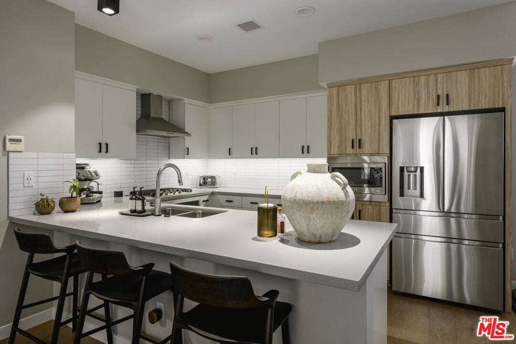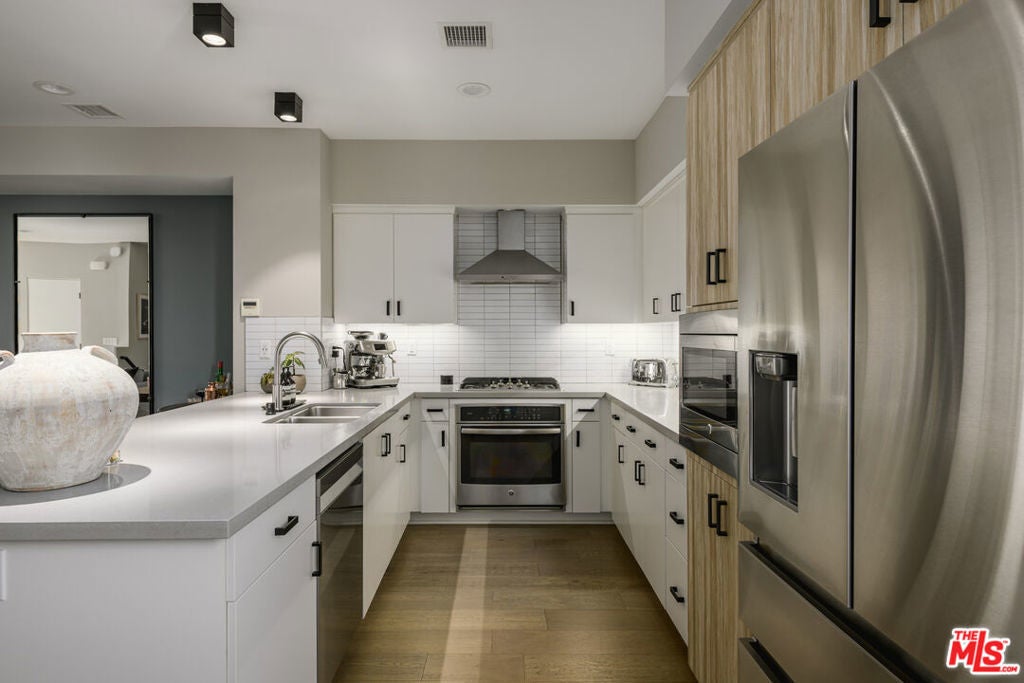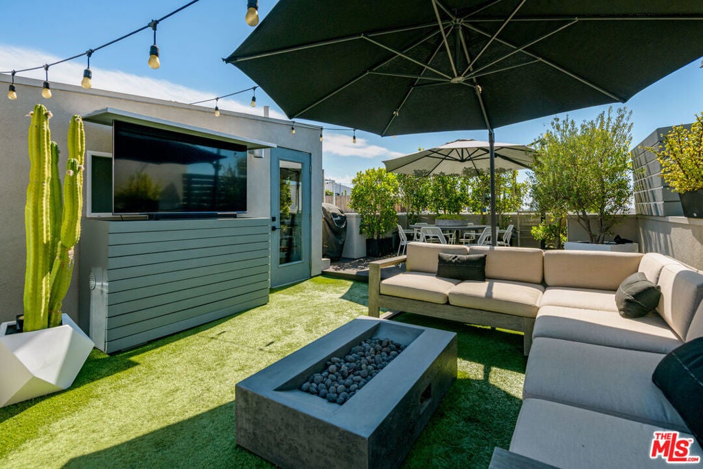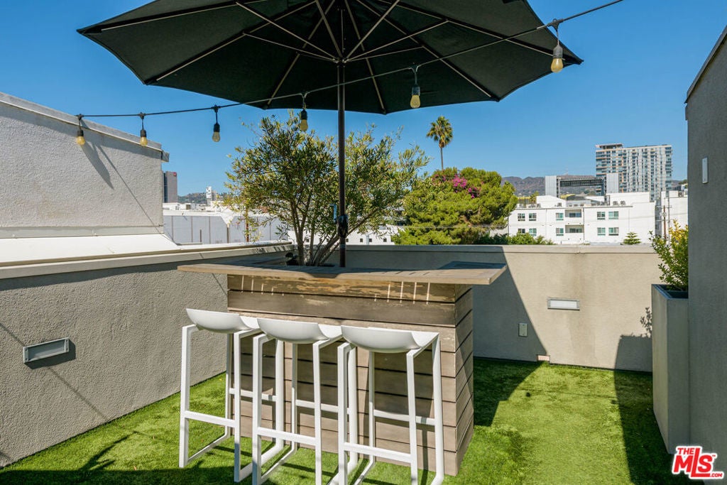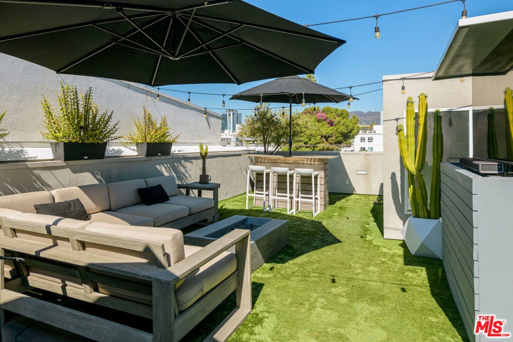 Welcome to Studio10, a secure gated enclave, and this stunning model home just blocks south of Sunset Blvd and moments from LA's premier dining, entertainment and gyms. Located in a quiet residential pocket and upgraded to the "9's" with no expense spared, enjoy abundant natural light, creating a bright, airy feel throughout the day. The home features 3 spacious bedrooms all with their own private baths and a decadent powder room with upgraded fixtures. Soaring ceilings throughout the home enhance the open-concept design, adding volume, light, and a true sense of space. The expansive kitchen features custom cabinetry with upgraded fixtures, European quartz countertops and stainless steel appliances. It flows seamlessly into the dining area and large living room, all finished with engineered hardwood floors, dual-pane windows, and custom lighting designed for seamless entertaining and modern living. The expansive primary suite is a serene retreat with a generous walk-in robe and newly renovated spa-inspired bath with elegant European tile and natural stone finishes. Enjoy panoramic views from Downtown LA to the Hollywood Hills on the sun-drenched rooftop deck, complete with turf, raised decking privacy screens and a built-in mechanical TV lift, a firepit and BBQ - ideal for movies under the stars or relaxing in the SoCal sun. Additional highlights include: Nest Cameras, a 2-car attached garage, custom storage cabinets. This home truly has it all: style, comfort and convenience whether exploring Larchmont Village, Griffith Park or strolling to the best Farmer's Market in the city.