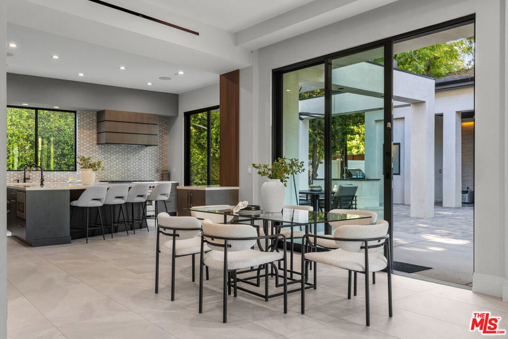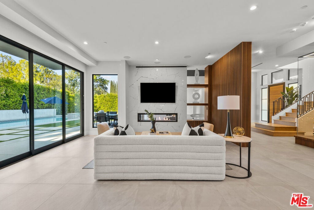 The home you've been waiting for in Encino! Welcome to California warmth and contemporary elegance in this thoughtfully designed 5,400 sq ft, 6 Bedroom, 7 Bathroom estate. Situated on a beautifully flat and private gated lot surrounded by majestic oak trees, this one-of-a-kind home was crafted with custom finishes and timeless architect. From the moment you arrive, the home's presence is undeniable. A hand-laid cobblestone driveway sets the tone for the attention to detail you'll find throughout. Inside, natural light pours into open, airy living spaces that flow effortlessly offering the ideal setting for both quiet moments and entertaining. Lutron-controlled lighting on the windows let you tailor the ambiance and privacy. The foyer greets you with soaring ceilings extending into the formal living room with seamless indoor-outdoor access through Fleetwood sliding doors. The formal living room and family room are elegantly connected by a dual-sided, see-through fireplace adding warmth, ambiance, and a touch of luxury to both spaces. Host unforgettable dinner parties in the formal dining room, complete with a stunning custom glass wine display. The open-concept family room offers the ultimate everyday comfort with custom built-ins and effortless connection to the kitchen and access to outdoors. The gourmet eat-in kitchen is a chef's dream, equipped with premium Wolf and Thermador appliances, custom cabinetry, and an oversized island perfect for gathering and entertaining. The first level features three bedrooms, including a suite with Fleetwood doors that has direct access to the backyard pool area, perfect for guests, in-laws, or a gym. Upstairs, you'll find a versatile loft area and media room with Dolby Atmos surround sound for an immersive cinematic experience. The primary suite feels like a true retreat. French doors greet you at the entrance, opening to a serene sanctuary featuring dual walk-in closets, a cozy fireplace, and a spa-inspired bathroom with soaking tub, dual vanities, double shower, and a private water closet. Step out onto your own private balcony with an outdoor fireplace, an ideal space to begin your day with coffee or end your day in peace and luxury. Two additional upstairs bedrooms are generously sized and beautifully appointed. Step outside to a serene, private backyard with premium low-maintenance turf designed for sophisticated entertaining and relaxation. Experience elevated outdoor living with a peaceful fire pit area, resort style pool and spa, featuring a Baja shelf, outdoor kitchen and BBQ, ideal for weekend gatherings or quiet evening unwinds. The poolside cabana has a TV and full bathroom which could be converted into an ADU, offering even more flexibility. Cutting-edge smart home automation puts lighting, climate, security, and entertainment at your finger tips, integrated seamlessly into a home defined by luxury craftsmanship and high-end finishes throughout, sets this home apart from the ordinary. Located on a quiet, desirable street, this estate delivers comfort, style, and versatility in one of Encino's most coveted pockets. If you've been searching for something beyond the expected- Welcome home!