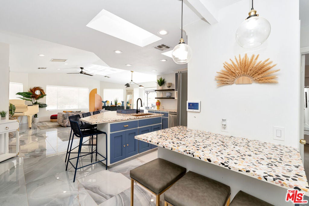 NEW IMPROVED PRICE!! Two separate units plus a dome. Main house, converted garage into a studio and dome. Nestled on eight acres of serene, open land, this extraordinary property offers breathtaking panoramic views and unmatched privacy. It's a rare investment opportunity for a short-term rental or the perfect sanctuary for those seeking a vacation retreat. The main home boasts an open-concept design, featuring sleek, refinished concrete floors, a custom front door, and contemporary lighting fixtures. The kitchen is a showpiece, with chic cabinetry and stunning terrazzo countertops from Concrete Collaborative. A newly renovated two-car garage has been transformed into a refined studio apartment, complete with elegant hardwood floors, a fully equipped kitchen, and a modern bath. Adding to the property's unique allure is a striking glass dome, offering endless possibilities. Imagine it as a stylish living space, a vibrant entertainment hub, a peaceful stargazing lounge, or even additional rental accommodations. The outdoor space is equally captivating, featuring a private trailhead, a cozy fire pit, and a dining area surrounded by lush, mature succulents and trees. Expansive windows frame the property's awe-inspiring views and a distinctive outdoor mural, effortlessly blending indoor comfort with outdoor beauty. Additional highlights include a 250-foot water well with a 2,500-gallon tank and a 150-foot booster pump, ensuring efficient water flow. Ideally located just 20 minutes from Palm Springs, Joshua Tree, Pappy & Harriet's, and Pioneer Town, this property offers the perfect balance of seclusion and accessibility. Whether you're envisioning a vacation rental, an event space, or a peaceful retreat, 51889 Canyon is primed to make your vision a reality. 4 Bedrooms and 3 Baths. Garage was converted without permits and it's included in the bed and bath and estimated square footage count. Disclaimer: Broker and agents do not represent or guarantee the accuracy of the square footage, income, expenses, condition, development potential, bedroom/bathroom count, lot size or lot lines, dimensions, permitted or non- permitted spaces, or school eligibility. Buyer is advised to independently verify the accuracy of all information with appropriate professionals. There are no warranties or guarantees, buyer to rely solely on his/her/their own findings.