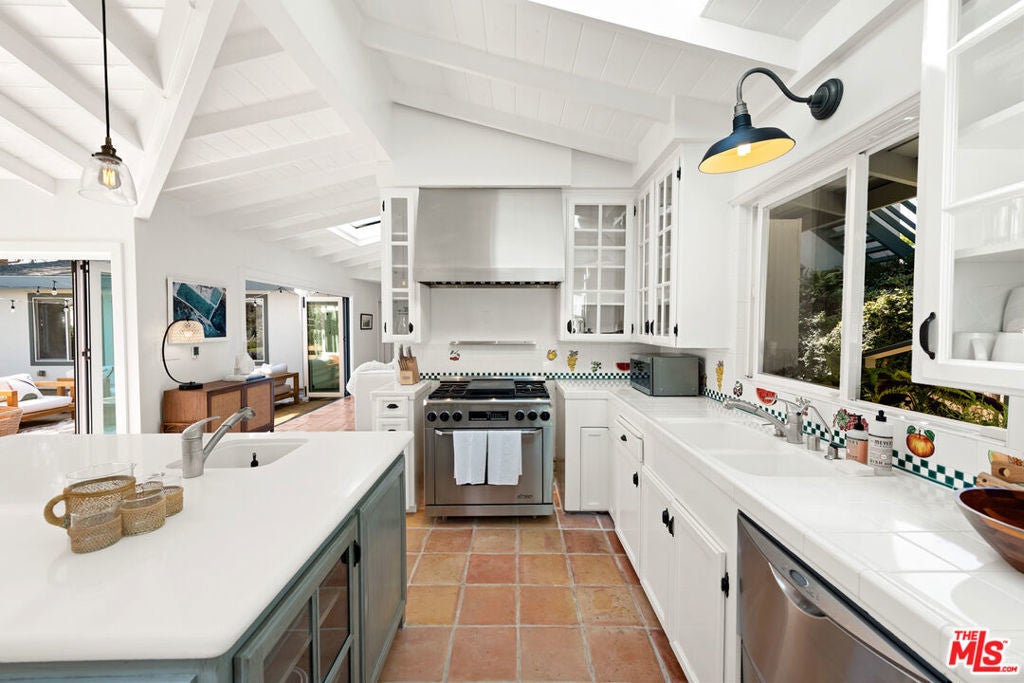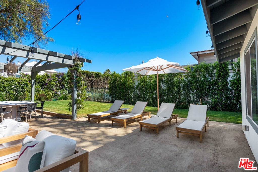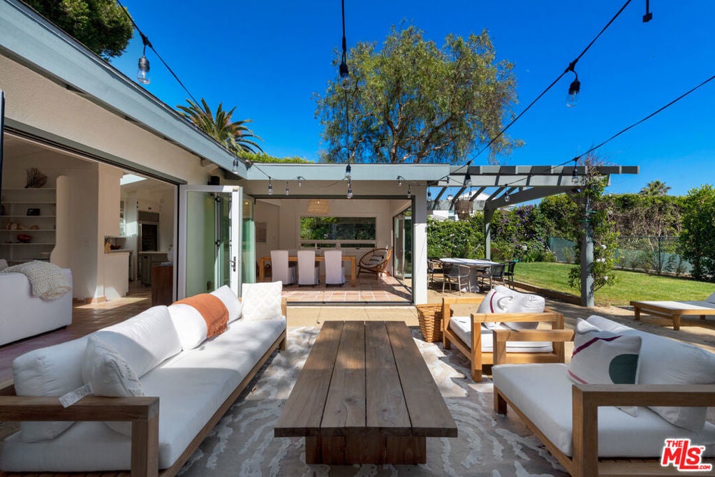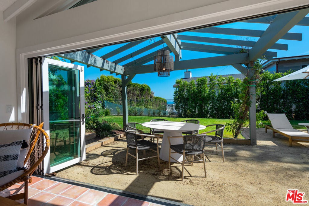 With mid-century pedigree and lush natural light, this beautifully updated garden home is perfectly appointed for indoor-outdoor living and entertaining. Gated and private, with handsome mature trees and generous lawns and patios, the property includes homeowner rights to a private sandy beach. Detailed with plank and beam ceilings, large windows, and Saltillo tile floors, the two-bedroom main house is complemented by a separate guest house with an additional bedroom, bath, and kitchen. At the heart of the main house is a light-infused great room that features a comfortable skylight living room, a chef's kitchen, and huge glass doors that open to the backyard, ocean views, and a large all-weather dining pavilion. The skylight kitchen has a center island with bar seating, top-quality appliances, beautiful cabinetry, and a wide garden window above the counter and sink. The bedrooms include a very peaceful primary suite with a large walk-in closet, a skylight bath, and French doors that open to the backyard. The guest suite, with a private entry from the street, has been updated with the same care and quality as the main house and features a full kitchen, a bedroom and bath, a living/dining room, and a balcony with sensational ocean views. The backyard, in addition to the dining pavilion, has a dining pergola, a large lawn, and various areas for lounging and entertaining, plus there is room for a pool. The home also has a two-car garage as well as guest parking in the driveway and on the street. With easy access to beaches, shops, dining and miles of hiking and biking trails, this Broad Beach home is the perfect year-round getaway.