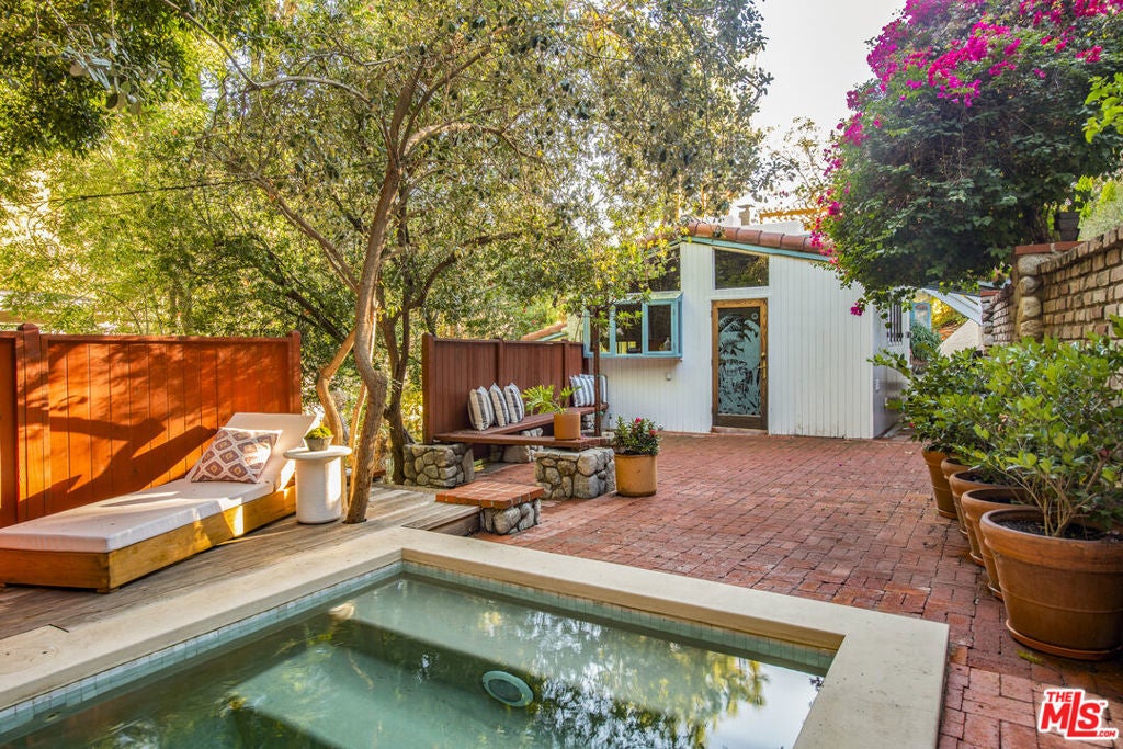Once the home of legendary Beatles sound engineer Geoffrey Emerick, this rare 1929 Spanish compound sits tucked away behind gates on an expansive half-acre in storied Laurel Canyon. Privacy, soul, and history converge hereopportunities like this surface once in a lifetime.Wander through lush Mediterranean-inspired gardens filled with roses, lavender, and bougainvillea, with the tranquil soundtrack of birds and breeze as your constant companion. Step inside to soaring cathedral wood-beam ceilings, French windows, original hardwood floors, and custom built-ins wrapped in velvet mohair. Every inch exudes craftsmanshipfrom the intricate ironwork and wood-burning fireplace to the Japanese ceramic tile, un-lacquered brass Waterworks fixtures, and Carl Fagerlund 1960s pendant lights.A split-level floor plan provides privacy and flow, while designer detailsItalian terracotta, Agape sinks, 1950s brass handles, and eight-foot solid-wood doorsspeak to an era of artistry rarely seen today. The kitchen features a Liebherr refrigerator, Bertazzoni appliances, and a view that turns every meal into a moment.Multiple terraced patios create endless possibilities for al fresco dining, while a private plunge pool, outdoor shower, and rooftop deck with pergola and fireplace set the stage for quintessential canyon evenings. A detached casita with built-in desk and lofted bed offers the perfect creative studio or serene guest retreat, framed by garden views.Whether you're an artist, a collector, or a dreamer chasing history and beauty, this is Laurel Canyon magic at its puresta place where music, design, and legend live on.
