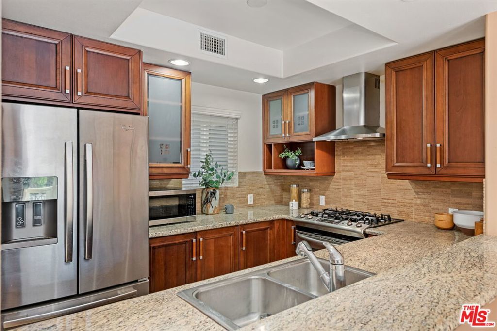$50K Price Adjustment! A premier Valley Village townhome within a boutique complex of only 10 units. Built in 2009, this home features balconies on each level offering treetop views and plenty of natural light throughout. The kitchen includes granite countertops, travertine floors, and stainless-steel appliances. It opens to the living and dining areas, making the space ideal for both daily living and entertaining. The living room features a stone fireplace, wood floors, iron stair rails, and recessed lighting. There's also a powder room on the entry level. The secondary bedrooms are located on the middle level and offer generous space, sharing a full hallway bathroom. This floor also includes a laundry area that fits a full-size stackable washer and dryer. The oversized primary bedroom occupies the top level and includes an ensuite bathroom with a separate shower, large soaking tub, dual sinks, and a walk-in closet. One of the two balconies is partially enclosed for added privacy. The building features with gated entry to an interior courtyard and gated two side-by-side parking spaces with Tesla car charger. HOA dues are $498 per month, includes earthquake insurance, and balconies have been inspected. Located in a convenient location, close to Hollywood Studios, the Metro, North Hollywood Arts District, and Toluca Lake and Ventura Blvd restaurants and shops.