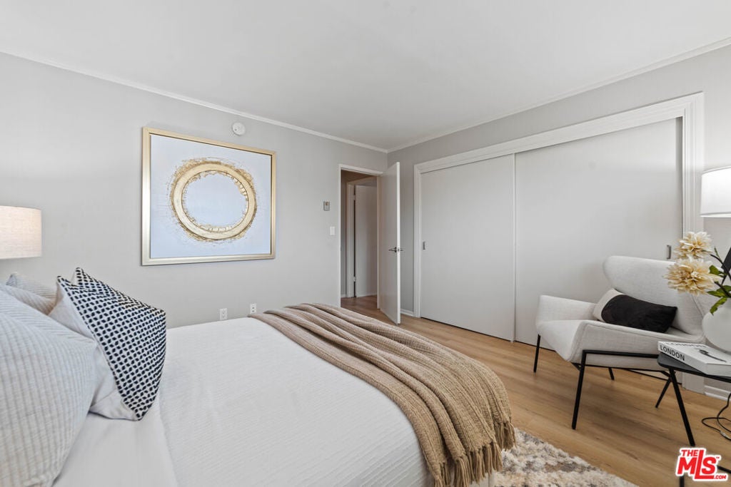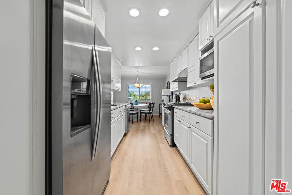 Beautifully Remodeled Top-Floor Corner Unit with Treetop Views in Prime Westwood. Welcome to this sun-drenched, top-floor corner condo offering exceptional privacy with only one shared wall and serene rear-facing treetop views. Thoughtfully and tastefully updated, this 2-bedroom, 2-bathroom home features a remodeled kitchen that seamlessly opens to a dining area and a spacious living room perfect for relaxing or entertaining. The primary suite is a true retreat with two oversized closets featuring custom built-ins, and a full-size washer and dryer conveniently located inside the unit. The private balcony offers a peaceful setting to unwind and enjoy the view. Located in a well-maintained, secured courtyard building with a sparkling pool, this home sits in the highly sought-after Westwood Charter School district. Just moments from UCLA, the metro, shopping, and dining, this inviting residence combines comfort, style, and a truly unbeatable location. A rare gem that checks all the boxes .