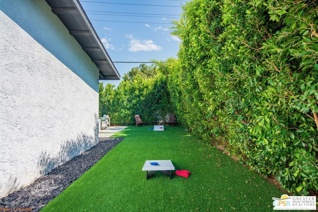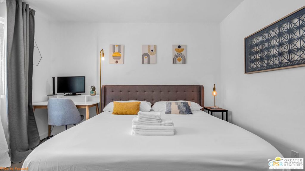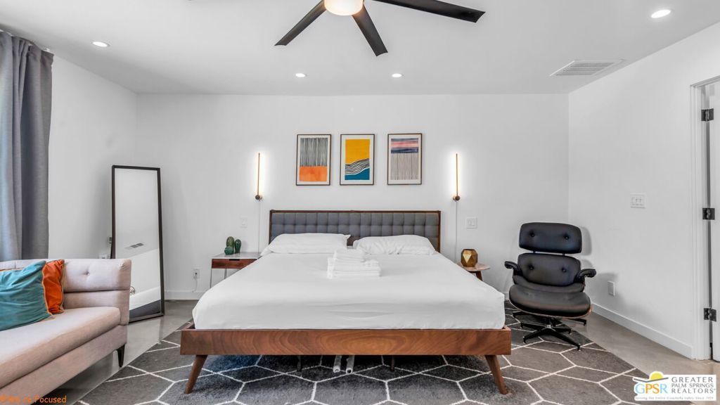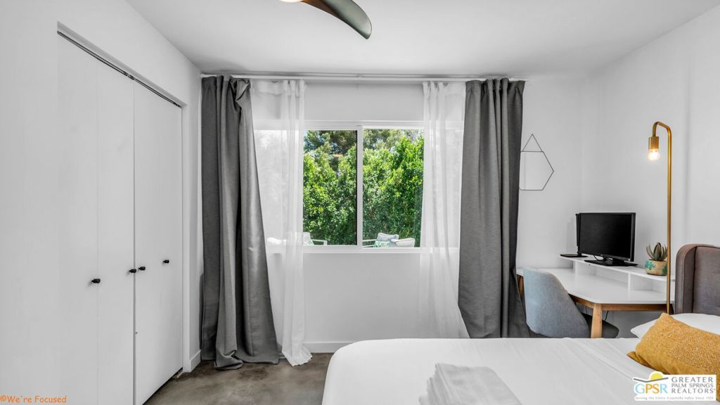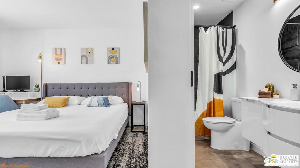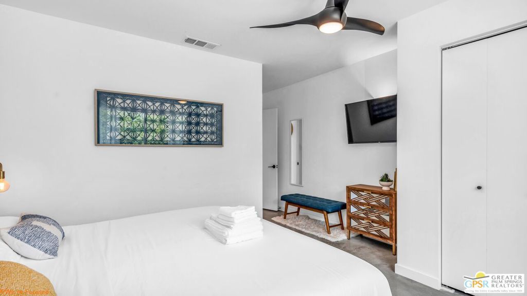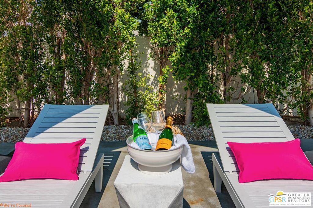 Experience the pinnacle of desert living in this 4-bedroom, 3.5-bath modern oasisa fully reimagined retreat where sophistication meets serenity. Set on a rare double-wide lot, this home is surrounded by over 100 mature ficus trees, creating a lush private sanctuary with unobstructed mountain views. Step outside to a resort-style escape featuring a saltwater pool and spa with baja shelf, a 10-person hot tub, and a firepit beside a turfed play area. Entertain with ease thanks to a built-in BBQ, outdoor dining area, and dedicated pool bath, all enhanced by $150K+ in professional hardscaping and landscaping, sleek block walls, and ample parking pads. Inside, natural light pours through expansive glass doors connecting the living area to the outdoors. The chef's kitchen boasts quartz counters, stainless steel appliances, and a Carrara marble dining table centerpiece. Modern touches abound: polished concrete floors, floating vanities, and two primary suites with en-suite baths.Offered fully furnished and turnkey, this property has a proven short-term rental history with rave reviews, making it ideal as a luxury investment or personal retreat. Additional upgrades include a new HVAC system, leased solar, and a new Pentair saline system for effortless maintenance.Live or invest in one of Palm Springs' most desirable neighborhoods where modern elegance, privacy, and income potential unite in one extraordinary property.
