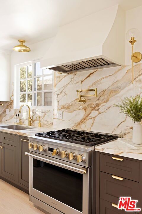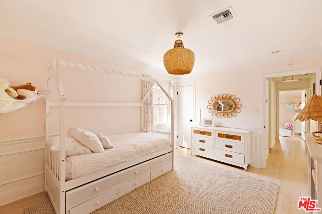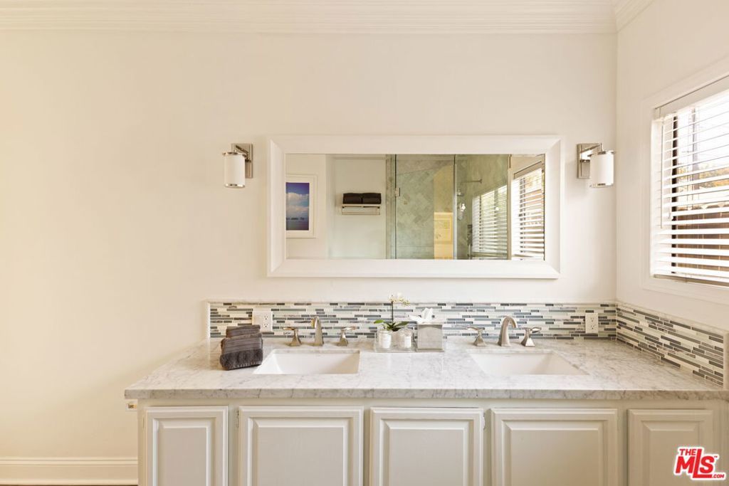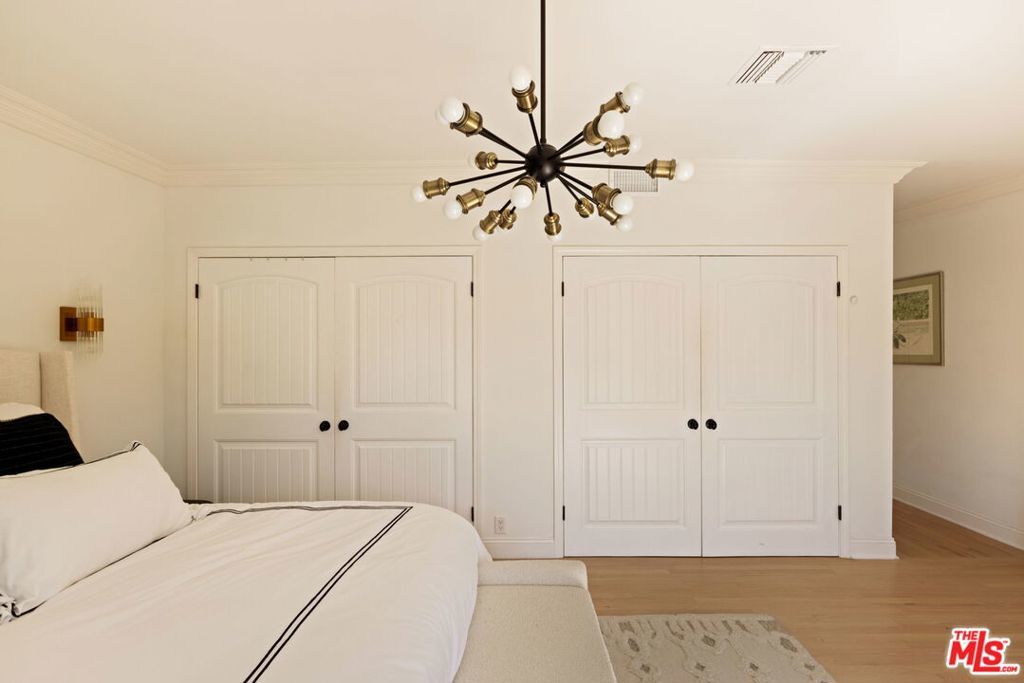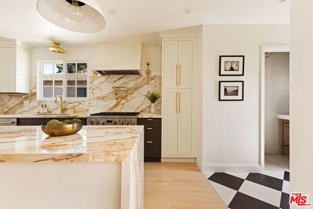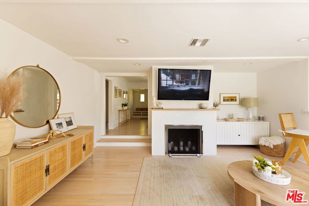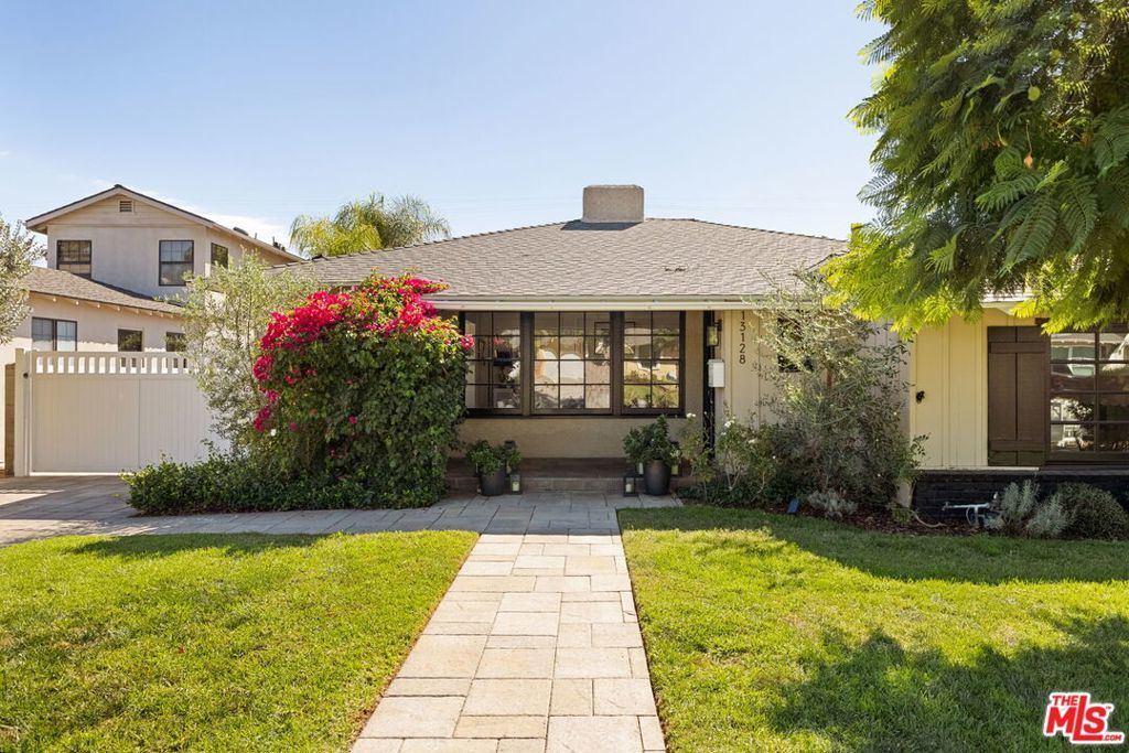 On a quiet, tree-lined street in one of the most desirable areas of Sherman Oaks, this one level Ranch Traditional is a rare find. Completely renovated inside and out, this turnkey home is a true oasis. Step up to the lovely front porch and enter one of two living rooms with large picture windows, flooding natural light, and a beautiful fireplace. The designer dining room and completely renovated kitchen featuring top of the line finishes and appliances is wonderful for formal and informal gatherings. A second sunken living room off the kitchen features vaulted ceilings, a second fireplace and ample space to entertain. A convenient half bathroom nearby is ideal for guests. The spacious and bright primary suite features an Elfa custom closet system along with direct backyard access through picturesque French doors. The bathroom has a beautiful frameless glass shower enclosure with a dual sink vanity. Two additional spacious secondary bedrooms share an updated full bath with shower, tub and vanity. The garage has been stunningly converted into an unpermitted 400+ square foot detached guest house with a bedroom and a bathroom, along with a brand new cabinet system and sliding glass doors. It can also be used as a home office or studio and has a new storage shed behind it. Head outside to a lush resort-style backyard and a stunning pool with a waterfall and spa - an idyllic space for relaxing and hosting guests. With brand new low maintenance turf, a lounging area, a built-in BBQ center and a swim up bar, it's better than any hotel. Additional features include solar panels on the house that generate about 90% of normal household usage, a brand new laundry room and mudroom, new hardwood floors throughout the main home, a new HVAC system and a new tankless water heater. Minutes from great shopping and restaurants along Ventura Blvd and close to many elite schools, this home is the perfect blend of luxury, privacy and convenience.