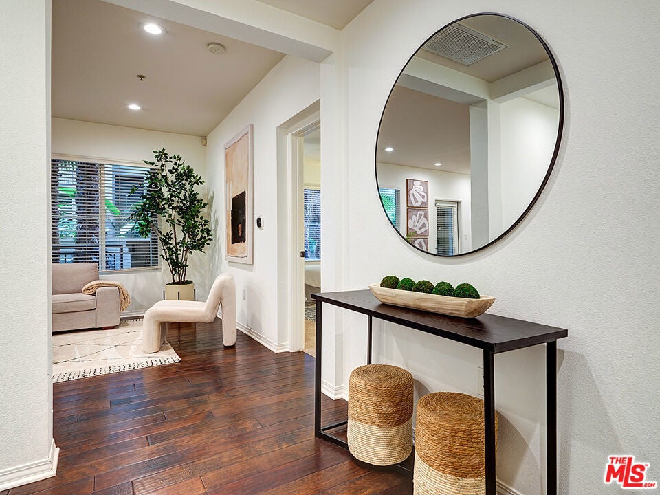 Discover the absolute best opportunity to own a 2-bedroom residence in the highly sought-after Playa Vista community. This single-level, 910 sq ft home in the centrally located Tempo building offers a desirable split-bedroom floorplan and an unbeatable location right across from Concert Park. Step inside to a bright, contemporary open floor plan where the living room and kitchen flow seamlessly together. Rich engineered hardwood floors add warmth and sophistication, while the living room opens to a large private patio with lush green views - perfect for relaxing or entertaining. The spacious primary suite is a comfortable retreat, featuring a roomy walk-in closet and an en-suite bathroom with a large vanity and walk-in shower. The secondary bedroom offers versatile space for a guest room, office, child's room, or flex area. A generous guest bath with tub/shower combination sits conveniently off the hallway. Also in the hallway, you'll find a full-sized stackable washer and dryer. This home includes two parking spaces and grants access to all the incredible Playa Vista amenities: sparkling swimming pools, spas, a state-of-the-art fitness center, parks, sport courts, dog parks, community centers, playgrounds, weekly farmers markets, and more. Just outside your door, enjoy neighborhood favorites like Coffee Bean, Yummy Market, local restaurants, salons, and a dry cleaner - all at your fingertips.