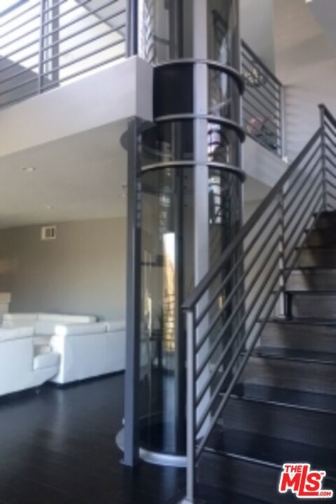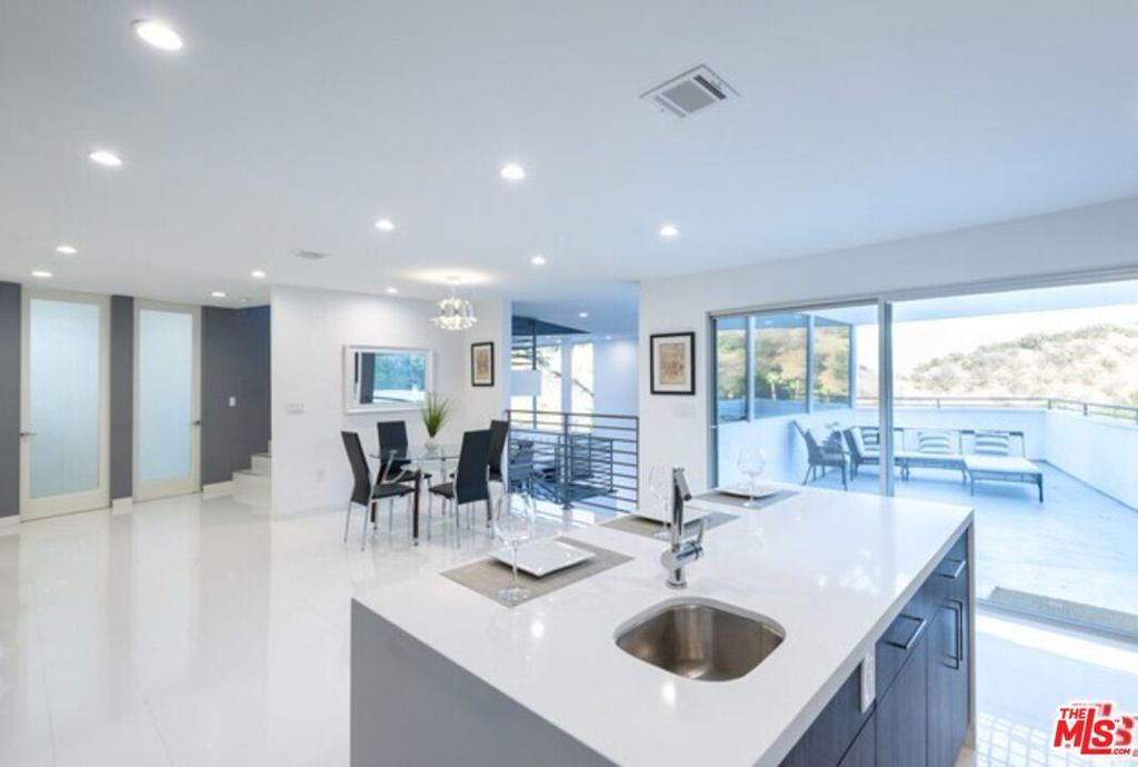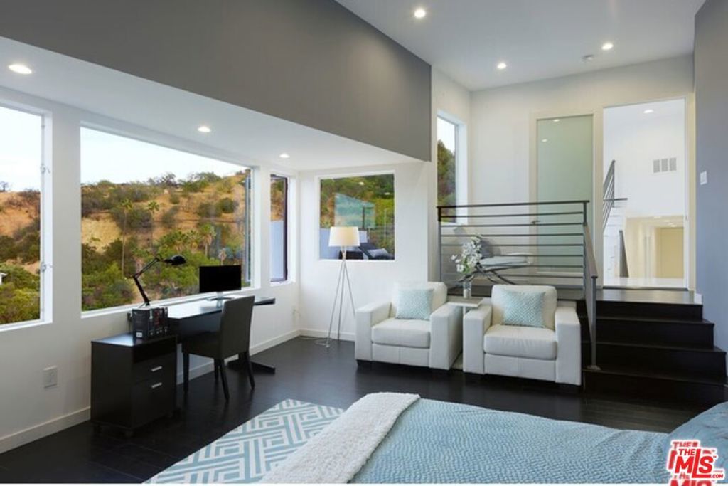 Beautiful modern architectural estate with canyon and city views! With state-of-the-art Vacuum elevator inside. This extravagant home was built by renowned architect Michael Pearce with 4 large bedrooms, 3.5 bathrooms and an indoor/outdoor feel throughout. The three level estate features an open floor plan with 4,700 Sq/Ft of living space, chef's kitchen with stainless steel appliances, large master bedroom, spacious bonus room and prestigious private entrance with a three car garage. The master bedroom includes breathe taking views, wet bar, bathroom with his/hers sinks, vanity, walk in closet and sitting area.