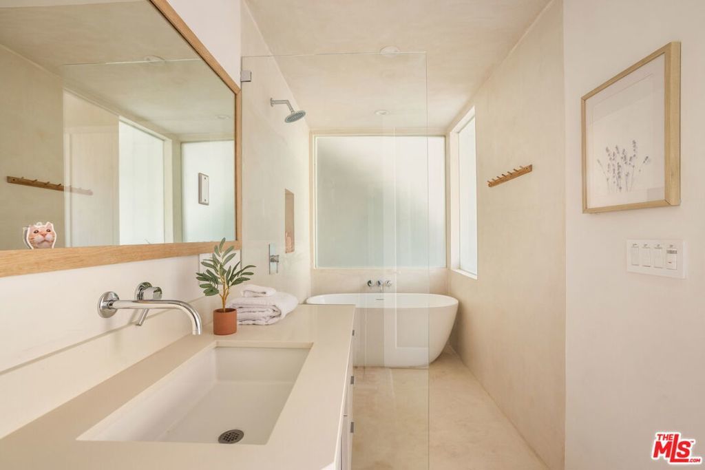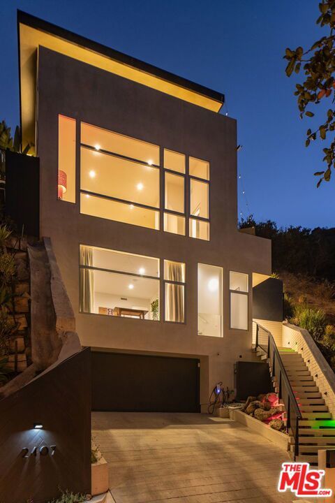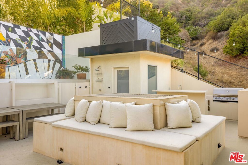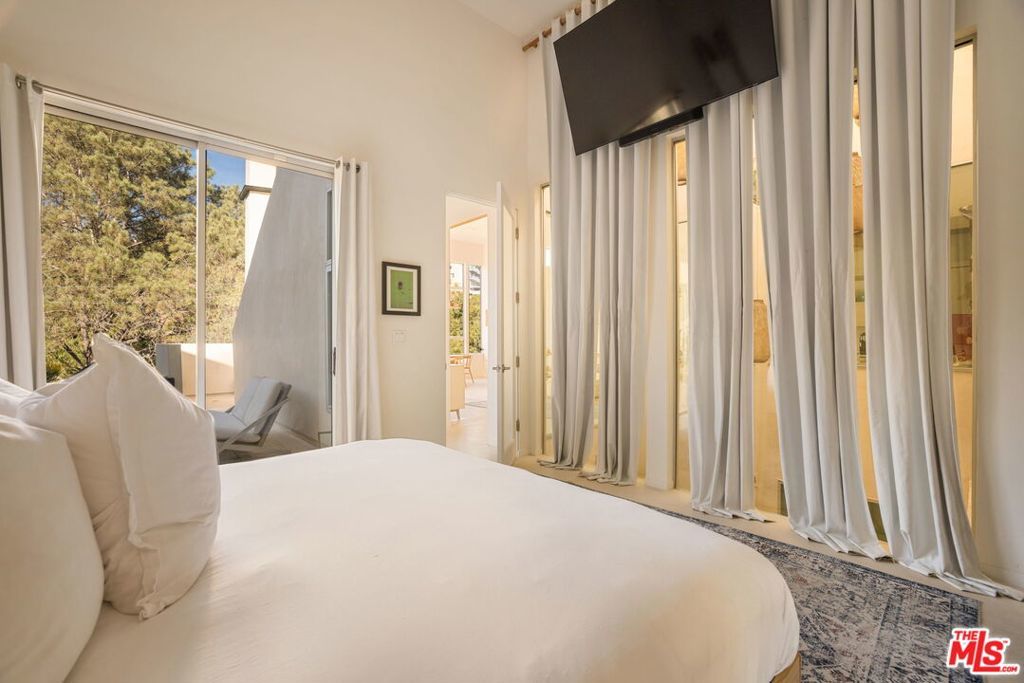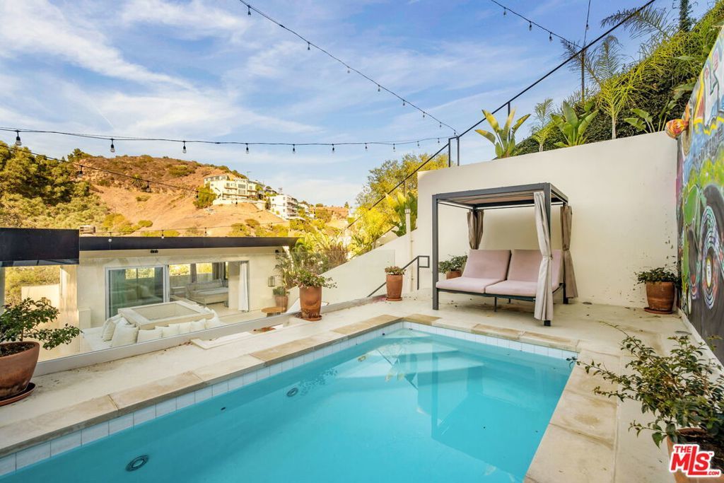 Set in the verdant hillside enclave of the Hollywood Dell, this residence offers a rare blend of privacy, contemporary design, and proximity to the best of Los Angeles. Surrounded by mature landscaping and natural beauty, the home feels quietly removed while remaining moments from the Hollywood Bowl, Lake Hollywood, scenic hiking trails, and the shops, restaurants, and energy of the city below. Inside, over fifteen-foot ceilings and walls of glass fill the great room and primary suite with natural light, creating an airy, open feel. The kitchen is designed for both everyday living and entertaining, with Miele and Thermador appliances, a wine refrigerator, and a walk-in pantry. Three of the bedrooms feature en-suite bathrooms, while a separate powder room serves guests. The versatile fourth bedroom on the upper level offers flexibility as an office, media room, or creative space, and connects directly to the pool terrace. Outside, the pool deck is designed for easy entertaining, with space for outdoor dining, a barbecue, a shower, and a dedicated pool bathroom. Additional features include a private atrium, ideal for yoga, meditation, or quiet reading, and a secluded patio off the primary suite, perfect for morning coffee. Multiple outdoor spaces provide options for relaxation or remote work, all set against the peaceful backdrop of the surrounding hillside. Other amenities include: Full home app/automation for lights, security cameras, speakers, sprinklers, pool, garage door, fireplace, and and EV charger. Adjoining parcel 2401 San Marco is also available for sale for $100,000, which includes dedicated street parking.