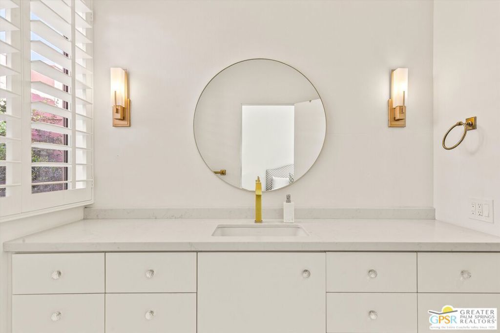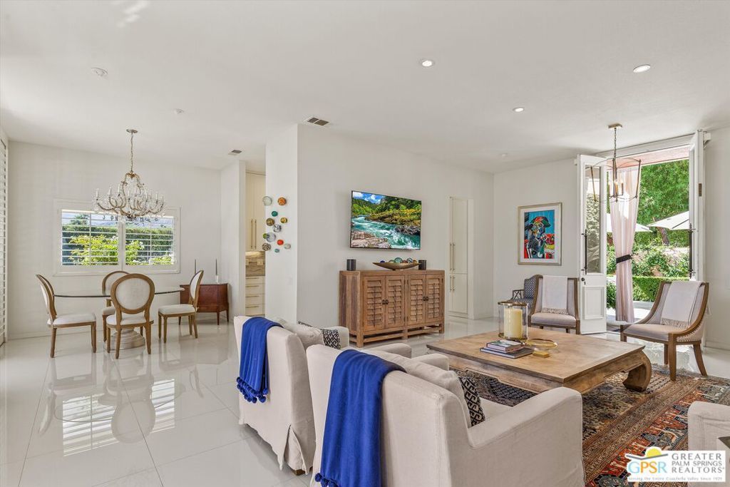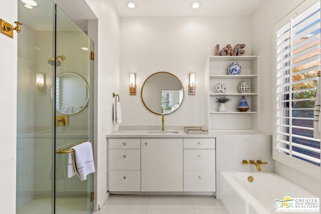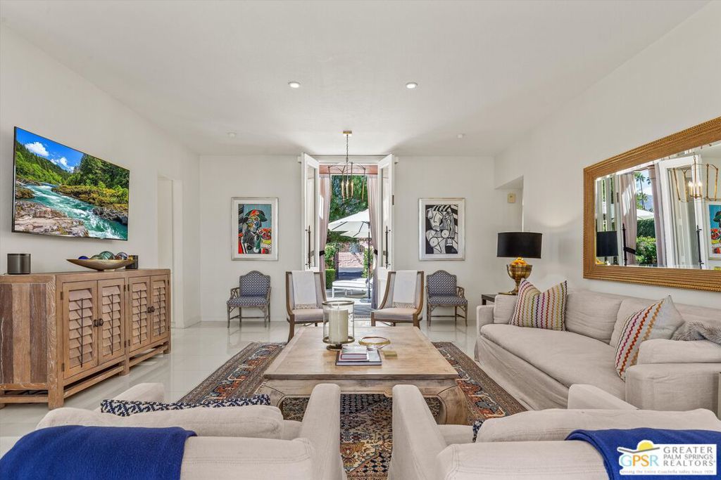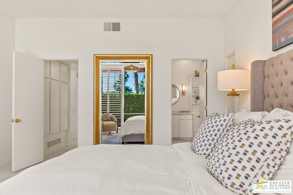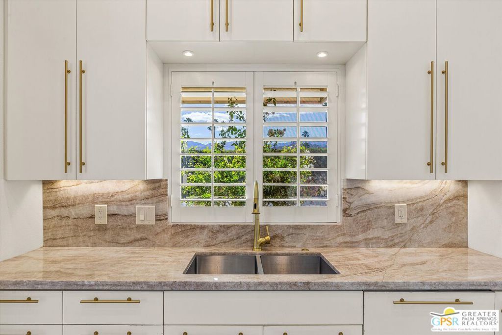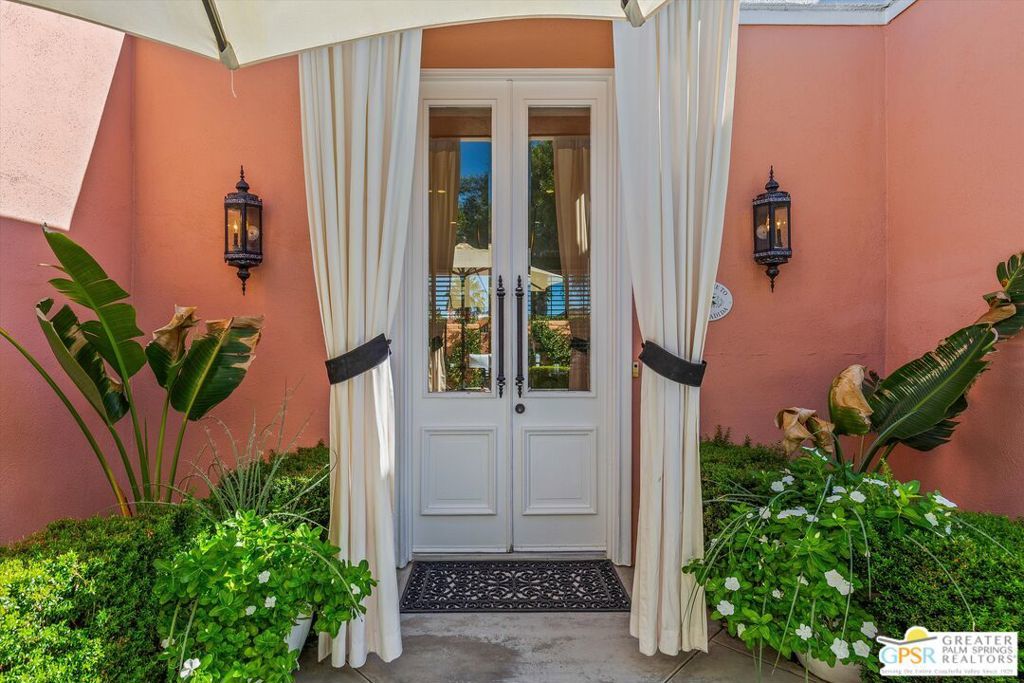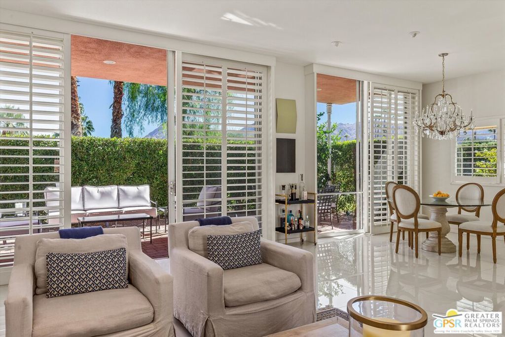 Modern glamour meets classic Hollywood Regency at Marrakesh Country Club. Step into timeless style at Villa Jadida, a beautifully updated residence in the iconic Marrakesh Country Club - Palm Desert's celebrated enclave of pink faades, lush fairways, and signature Hollywood Regency design by John Elgin Woolf. This elegant home blends the club's midcentury charm with today's luxury finishes. The remodeled kitchen and baths showcase designer details throughout, including Wolf and Sub-Zero appliances, custom cabinetry, and sophisticated stone surfaces. Walls of glass create light-filled living spaces, flowing effortlessly to an enclosed lush and spacious front courtyard and expansive private rear patio, perfect for effortless indoor-outdoor entertaining. Additional updates include tile flooring throughout, expanded second bedroom, finished walk-in closet, and custom plantation shutters and window treatments. Marrakesh Country Club offers resort-style amenities including a championship golf course, clubhouse, fine dining, fitness center, and 14 pools and spas - all within a secure, beautifully maintained community just minutes from El Paseo's world-class shopping and dining. Experience refined desert living where modern comfort meets classic Palm Desert glamour. Note: Seller has paid in full BOTH Clubhouse Assessments.