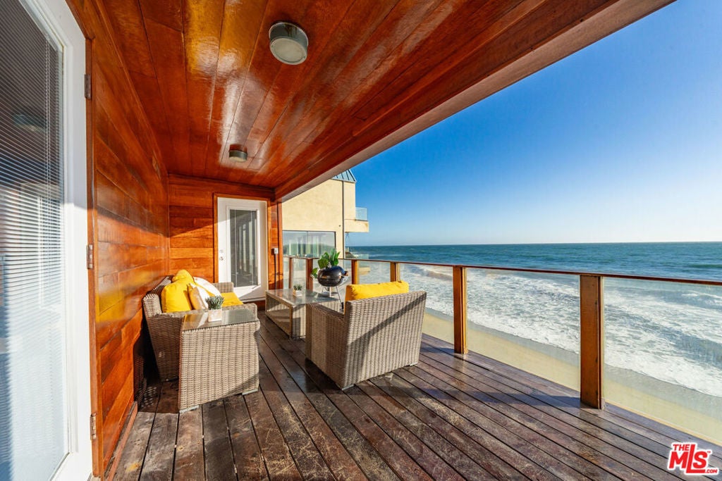 Experience the ultimate oceanfront lifestyle in this absolutely charming coastal retreat, located just past County Line on 60 feet of private, quiet sandy beach. This beautifully remodeled 1-bedroom, 1-bath home offers breathtaking panoramic ocean views and the soothing sound of waves from every room.Step through French doors that open directly to the beach and an expansive teakwood deck perfect for morning coffee, sunset dining, or watching dolphins and seals glide by. The open-concept kitchen features new high-end appliances, custom cabinetry, and modern fixtures. Throughout the home, French oak floors and natural light create a warm, inviting atmosphere.The spa-inspired bathroom boasts a marble shower and large porcelain sink, while the serene primary bedroom offers sunrise views you'll never forget. Ideal for surfers, this stretch of coastline offers one of the best swells in the country just steps from your front door.Whether you're seeking a tranquil escape or an adventurous oceanfront haven, this Malibu-adjacent beach paradise delivers the quintessential California lifestyle.