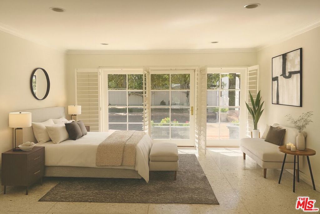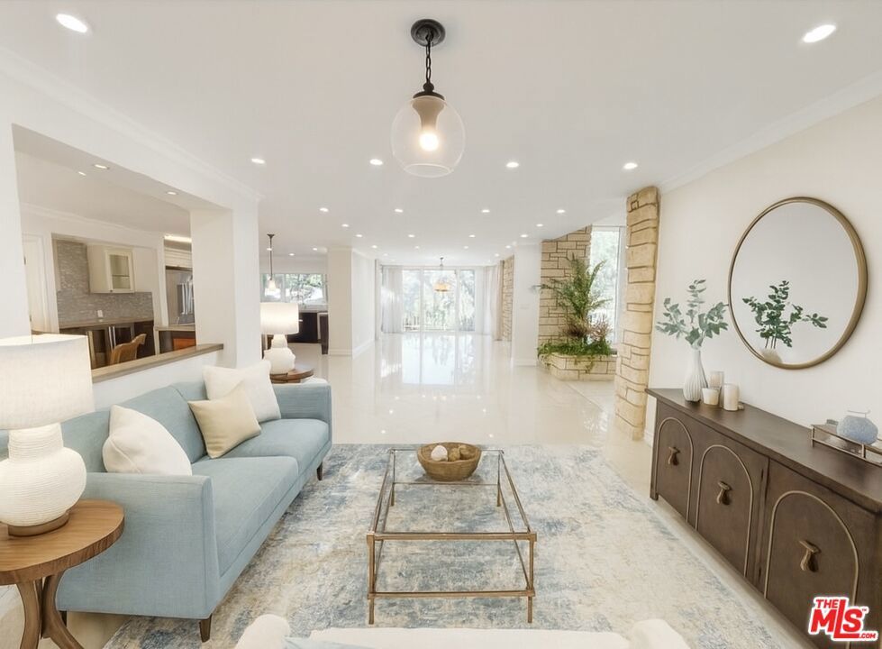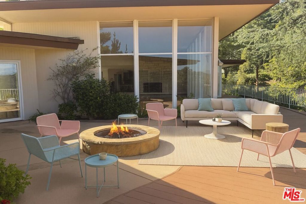 VIEW VIEW VIEW | Beautiful Lake View Home in Bel Air. Your dream home is here! This special place feels like a vacation every day full of light, great energy, and peaceful views. Located just a few minutes north of the famous Bel Air Hotel, this mid-century home offers stunning views of the lake and canyon. You enter through a private gate and walk over a bridge that leads to the pool and spa. Inside, the open floor plan feels bright and airy with high ceilings and expansive glass walls that bring the outdoors in. It's perfect for relaxing or entertaining, featuring a large deck, gas fire pit, custom pool, and spa with a waterfall. There's a cozy family room, den, dining room, and an office that can also be used as a guest room. The primary bedroom is spacious with abundant closet space, a large bathroom with skylights, and beautiful views. The home has been completely updated with brand-new bathrooms and a chef's kitchen equipped with top-quality appliances, ample cabinets, and generous storage throughout. Move-in ready and close to the Bel Air Hotel, this home truly has it all! (Photos are digitally staged. Home offered unfurnished.)