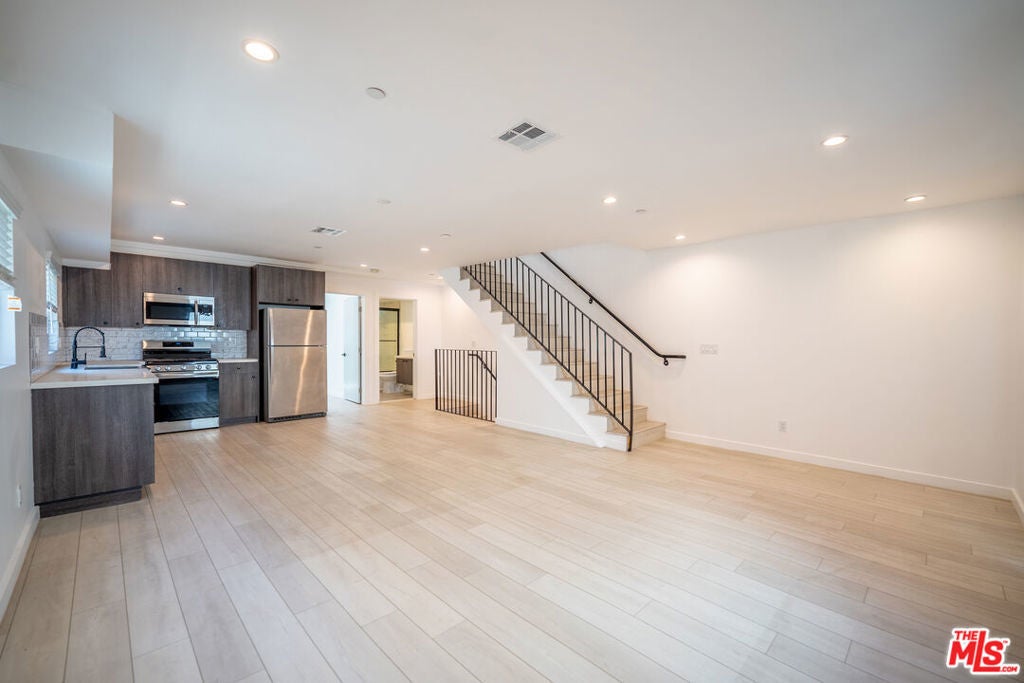 Promotional one month free rent! Experience elevated living in this luxurious 4-bedroom, 4-bathroom modern residence, nestled in the heart of Silverlake/Echo Park. Built in 2021, this sophisticated home offers the perfect blend of contemporary design and everyday comfort. Enjoy stainless steel appliances, central air conditioning, and stylish laminated and tile flooring throughout. Each spacious bedroom features its own private en-suite bathroom, providing privacy and convenience for every resident. The thoughtfully designed layout includes a first-floor bedroom, direct access to a private backyard, and an attached two-car garage equipped with an EV charger, all with direct access of the garage from the first floor unit. On the second level, you'll find an open-concept living area, a sleek chef's kitchen, and a second bedroom. The third floor hosts two stunning en-suite bedrooms with panoramic city views, perfect for unwinding after a long day with balcony. The property is fully gated with a motorized entry gate for enhanced security and peace of mind. Located just minutes from Downtown LA, Hollywood, Burbank, and Beverly Hills, and offering quick access to the 101, 10, and 110 freeways, this home combines upscale living with unbeatable convenience. This is your opportunity to enjoy designer comfort in one of LA's most dynamic neighborhoods.