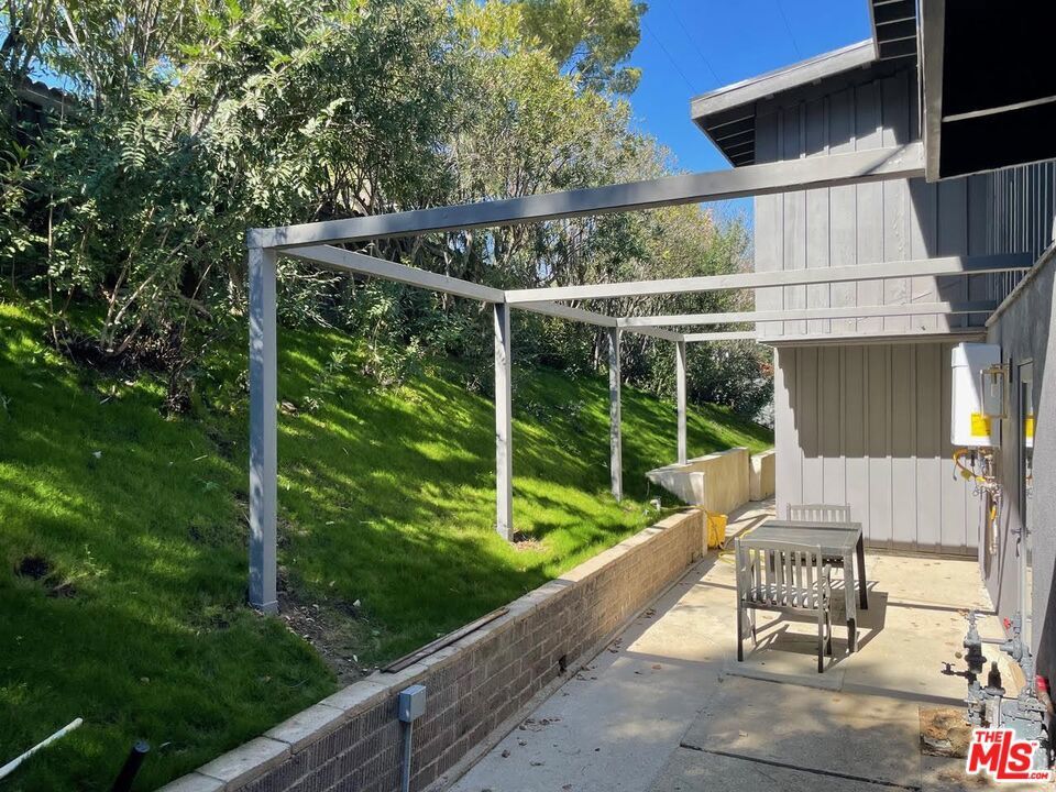 Mid century Gated 4 bedroom 4 bath, fully renovated home on a very private street off of Mulholland. Lots of light and beautiful canyon views from almost every room in this home. Private and serene with Zen court yard with pond. Large grassy yard with BBQ area. Open floor plan includes living room, dining room, and gourmet kitchen. Studio garage. Also for sale.