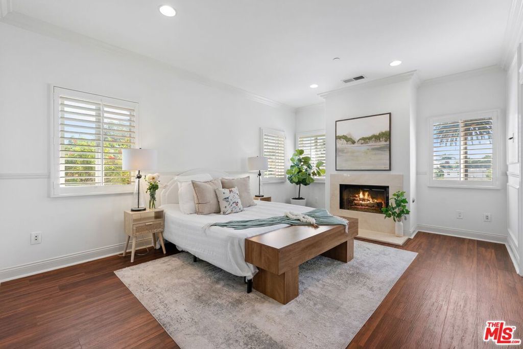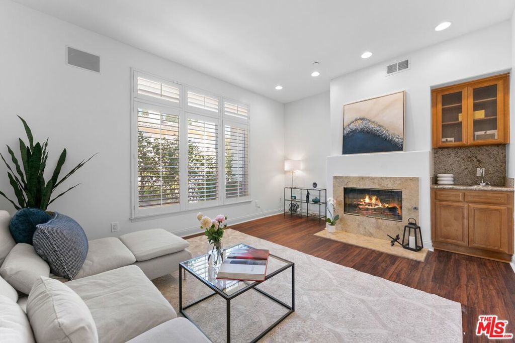 Luxury contemporary Mar Vista home in a quiet, gated community awaits you. This exquisite 4-bedroom, 3.5-bathroom residence, spanning approximately 2,900 square feet, blends architectural elegance, spacious design, and refined comfort. Perfectly situated on a private cul-de-sac, this home harmonizes Mediterranean charm with timeless California sophistication. A formal entryway leads to a dramatic two-story atrium that fills the home with natural light and connects each space with effortless flow. The formal living room, complete with an elegant fireplace, opens to the dining room, creating a perfect setting for entertaining or intimate gatherings. A graceful walkway connects to the family room, powder room, and designer kitchen, bringing warmth and function to the heart of the home. The family room features a second fireplace, built-in cabinetry, crown molding, recessed lighting, and a wet bar, all complemented by abundant natural light and a theater-quality surround sound system. The gourmet kitchen is a chef's dream, showcasing a massive granite island with built-in storage, breakfast bar, plentiful cabinetry, and stainless-steel appliances, including dual ovens, a microwave, refrigerator, trash compactor, and wine cooler. Skylights and vertical windows flood the space with sunlight, while a breakfast area offers tranquil views of the lush yard. A spectacular wood staircase leads to the second floor. The lavish primary suite features vaulted ceilings, a third fireplace, a spacious walk-in closet, a private balcony with tree and neighborhood views, and a spa-inspired en-suite bath with a jetted soaking tub. A sunny loft area provides a perfect retreat or reading nook. The home also includes a junior suite with its own sitting area and balcony, as well as two additional bedrooms that can serve as guest rooms, a gym, office, or creative spaces. Additional features include a dedicated laundry room with a utility sink, direct access to a private two-car garage and driveway parking, central air conditioning and heating, and separate grassy yardsone fenced for complemented by a rock garden and a serene Zen path. Freshly painted interiors, plantation shutters throughout, and premium finishes elevate every detail. The community offers low HOA dues ($233/month) covering weekly landscaping, maintenance, and gate security. Nearby are pet-friendly walking streets, restaurants of all cuisines, museums, parks, golf, and shopping. Conveniently close to the 405 and 10 Freeways, UCLA, Santa Monica, Venice Beach, and Beverly Hills, this home provides easy access to the best of Los Angeles. Refined, radiant, and move-in ready, this gorgeous Mar Vista estate offers an unparalleled lifestyle of elegance, comfort, and architectural grace truly designed for your most discerning buyer.