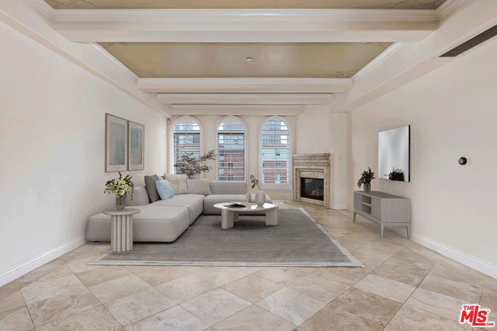 Situated on the Wilshire Corridor, Charming 2-bedroom plus den, 2.5-bath, single-level residence sits within The Venezia, a boutique Tuscan-style building. This unit offers a refined blend of elegance and comfort. A gracious living room welcomes you with a wall of windows, treetop views, an adjacent den or office, and a fireplace. The chef's kitchen features stainless steel appliances and a breakfast bar. The primary suite offers greenery views, balcony, a walk-in closet, an additional built-in closet, and a bathroom with double sinks, a soaking tub, and a separate shower. The second bedroom is spacious and includes an en-suite bath. Additional features include a powder room, in-unit laundry. The Venezia provides 2 assigned tandem parking spaces with storage, guest parking, controlled access, a 24-hour attendant, valet service, a fitness center, a banquet room with a catering kitchen, and a rooftop terrace with lounge seating, BBQ, cabana, and city views. This is prime Westwood location in close proximity to Westfield Century City, Westwood Village, and UCLA. Shown by appointment. Photos are virtually staged.