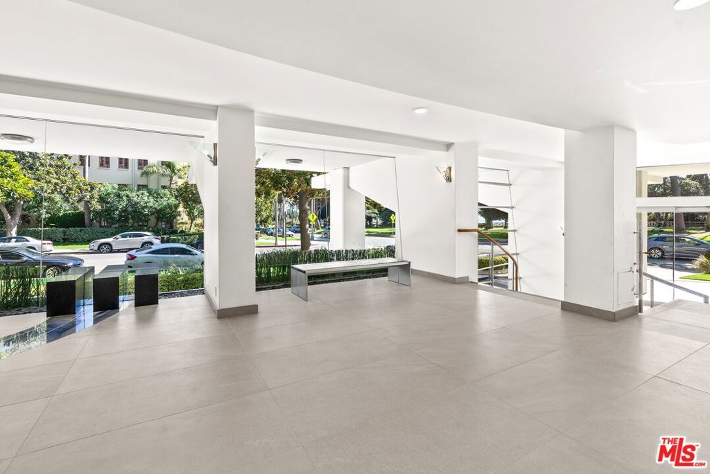 Natural light and ocean breezes fill this contemporary one-bedroom residence in the prestigious Oceanaire building designed by architect A. Quincy Jones. This modern home features an open floor plan with walls of glass, wood floors, and floor-to-ceiling sliding doors that connect to a spacious private patio, ideal for relaxing or dining outdoors. The kitchen includes stainless steel appliances, granite countertops, and an open dining area. Additional features include in-unit laundry with washer and dryer, two parking spaces, and a storage unit. Residents enjoy access to an elegant lobby, fitness center, conference room, Zen garden with fire pit, and 24-hour doorman service. Ideally located near the Third Street Promenade, Ocean Avenue dining, Montana Avenue boutiques, and Palisades Park. Property has been virtually staged.