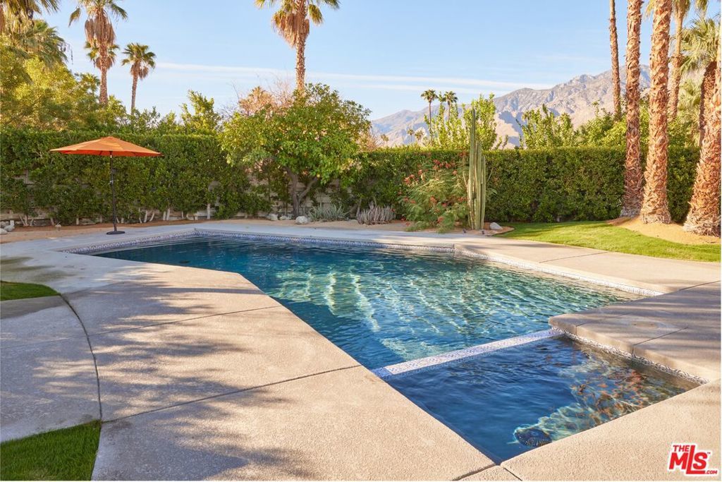 Desert Living at Its Best! Welcome to your fully-furnished Palm Springs getaway, a 3-bedroom, 2-bath vacation home designed for seamless indoor-outdoor living. Set on an expansive 8,700+ sq ft lot, this private oasis features a sparkling pool, relaxing hot tub, and lush palm and citrus trees, all framed by breathtaking mountain views. Multiple outdoor lounging, dining, and conversation areas invite you to soak up the desert sunshine year-round. Inside, the updated open-concept home offers a vaulted-ceiling great room with a cozy fireplace, dining area, and kitchen with island breakfast bar, all flowing effortlessly to the outdoor dining patio and pool deck. The spacious primary suite opens directly to the pool and includes a bathroom with dual vanities and a large walk-in shower. A second oversized bedroom features a huge closet and its own TV, while a third bedroom sits just off the home's main hallway. Home has been a successful short-term rental in the past, and Oasis del Sol appears to be well below the 20% threshold, so a new buyer should be able to apply for a short-term rental permit from day 1 (buyer to verify with the city). Additional highlights include a two-car garage with washer & dryer, and ample gated parking with room for an RV or even potential for another structure (buyer to verify). Very low land lease is only $376/month and is extended through 2066. Whether you're looking for a full-time residence, vacation retreat, or income-producing rental, this turnkey Palm Springs home delivers the perfect blend of comfort, style, and outdoor living.