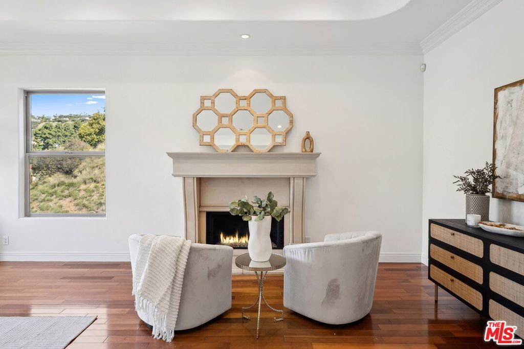 UNMATCHED VALUE IN THE HOLLYWOOD HILLS - PRIVATE GATED STREET WITH STUNNING VIEWS! Welcome to 8031 Floral Ave! Nestled at the end of a private drive behind a secure gated entrance, this breathtaking residence offers unparalleled city and canyon views from every floor. Completed in 2013, the home boasts wrap-around terraces, soaring ceilings, and an open-concept design that seamlessly blends elegance with modern luxury. The main level features a grand living room with a cozy fireplace, an elegant dining area, and a chef's kitchen outfitted with granite countertops, custom cabinetry, and top-of-the-line appliances. Descending to the primary suite level, you'll find a serene retreat with its own fireplace, dual walk-in closets, and a spa-like primary bath with a soaking tub and walk-in shower. This level also includes a spacious bonus room. The lower level offers two additional bedrooms, each with en suite baths, providing comfort and privacy for guests or family members. Experience luxury, privacy, and breathtaking views in this exceptional home.