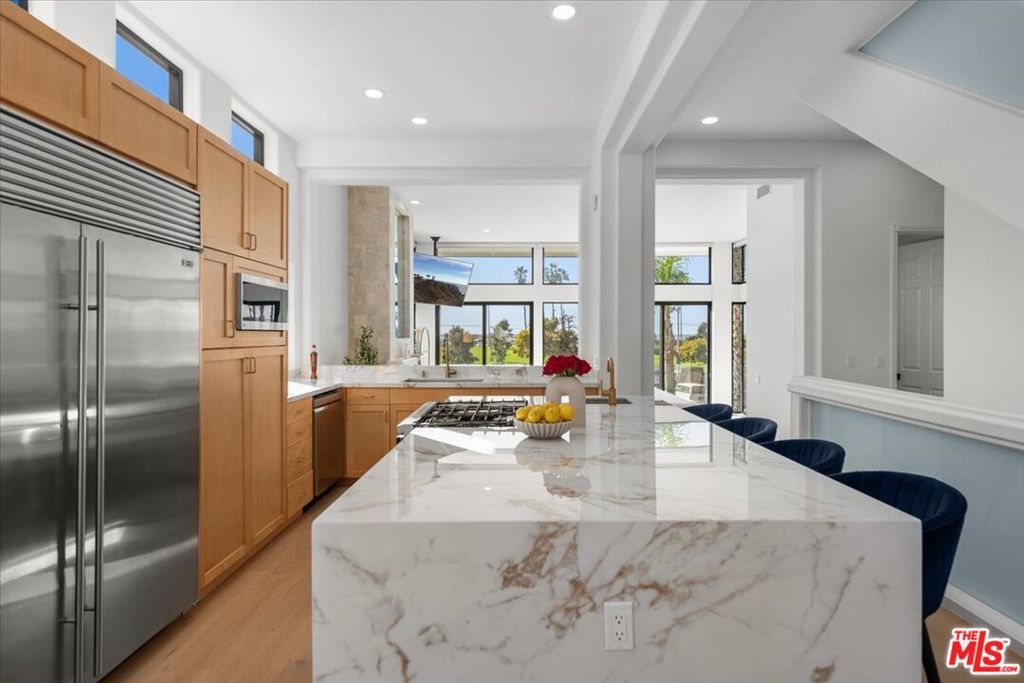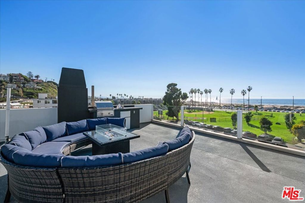 Location, Location, Location! An incredible opportunity to experience California coastal living at it's finest. Fully Furnished and perfectly situated in a premier Playa Del Rey beachside location, this stunning contemporary home captures 360-degree views of the ocean, lagoon, city, and mountains all just steps from the sand. Completely remodeled, this residence blends modern sophistication with a relaxed coastal feel. As you enter the main level, you're immediately embraced by natural light pouring through floor-to-ceiling windows and soaring ceilings. The fresh neutral palette, and open-concept layout create a seamless flow between living, dining, and outdoor spaces all framed by frontal ocean views. At the heart of the home is the brand-new gourmet kitchen, showcasing an oversized Porcelanosa island, custom cabinetry, and top-of-the-line appliances, including a Sub-Zero refrigerator, LG dishwasher, and Thor range. The adjoining formal dining area opens to an ocean-view patio, ideal for enjoying morning coffee or dining al fresco, with stairs leading to your own private, newly turfed yard. The second floor features three spacious bedrooms, including a luxurious primary suite with ocean views, a private balcony, a stone fireplace, and a spa-inspired bath featuring a steam shower and designer finishes. Crowning the home is a private rooftop, reimagined for ultimate entertaining and relaxation complete with a built-in BBQ, wet bar, and 10-seat firepit lounge where you can take in endless sunsets and panoramic views. This home is being offered fully furnished with flexible lease options, making it move-in ready for those seeking a turnkey coastal retreat. Located minutes from LAX, Playa Vista's Runway and Marina del Rey's shops and restaurants, and just steps from Playa Provisions, Bacari, the beach path, and Del Rey Lagoon Park. This is true beach living at its finest.