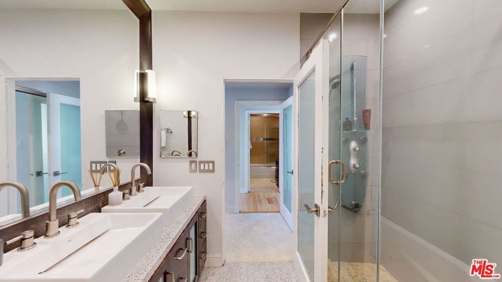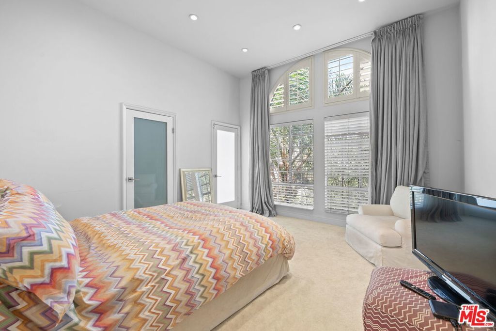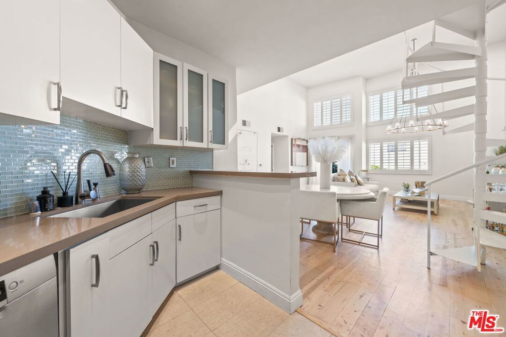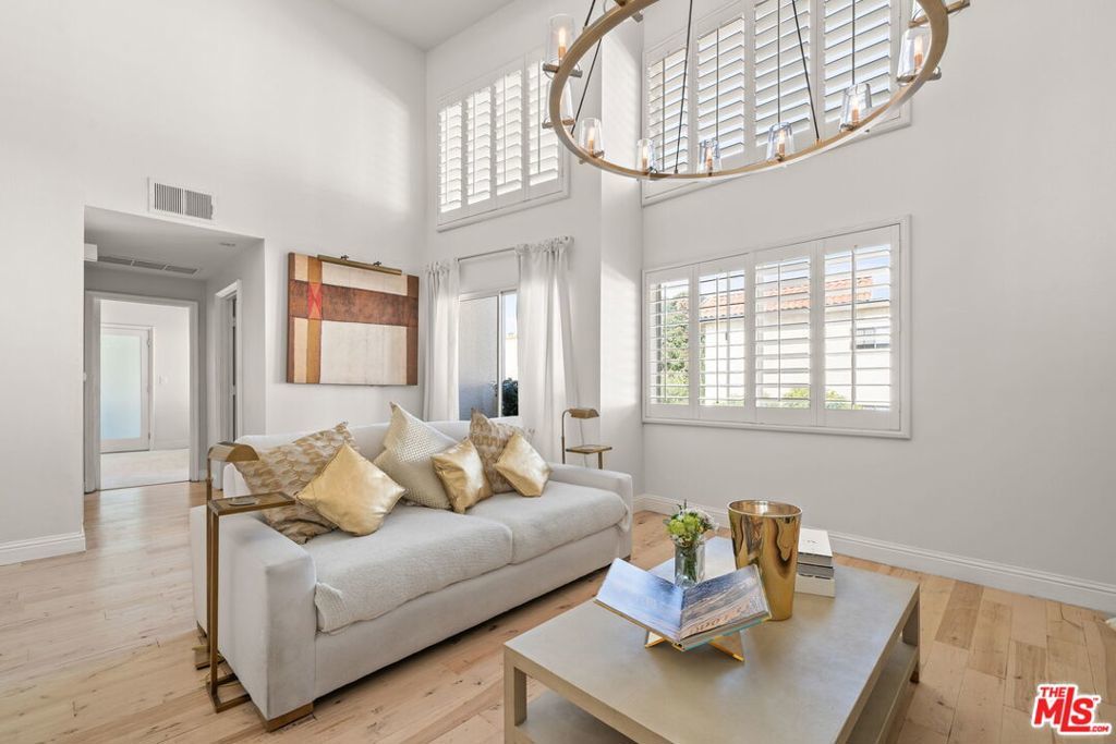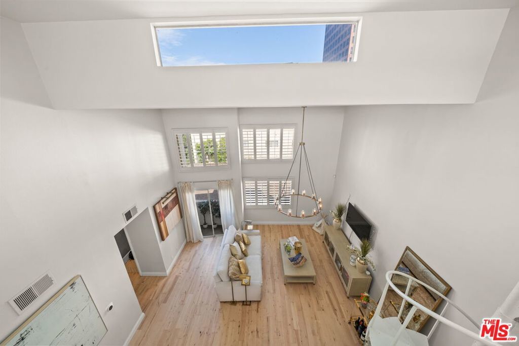 The Premier unit in the building! This rare, stylish & updated TOP FLOOR, Front facing, corner, light, bright & airy Penthouse features 2 bds + Loft + 2 full baths. Dramatic open floor plan with soaring 18-foot ceilings in the living room & dining room & 3 separate balconies! Lovely light hardwood floors, expansive windows, and spiral staircase leading to Loft which is perfect for a home office or gym. Modern kitchen has stainless steel appls, including a Viking Range, built-in refrigerator, and Bosche dishwasher & glass front cabinetry. The Primary Suite has spectacular floor to ceiling palladium windows & blackout curtains, walk-in closet & second closet, an en suite spa-like bathroom w/ separate spa tub & shower w/ 6-head shower & double vanity. Brand New central Heat & A/C unit, Brand New Water Heater, Newly installed Nest thermostat and alarm system, plus inside laundry. Situated in highly desirable Brentwood near top restaurants, trendy boutiques, grocery stores & coffee shops.