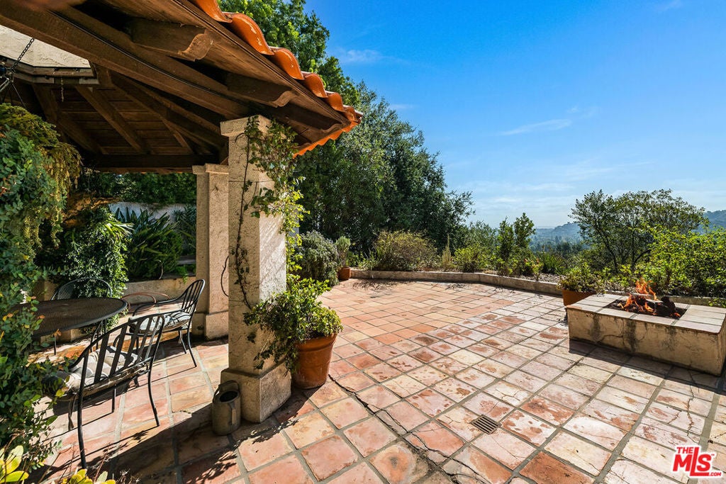 Timeless Spanish Revival with Panoramic Views. Perched high in the Pasadena hills, this exceptional Spanish view home is a private slice of paradise, combining timeless craftsmanship, luxurious upgrades, and sweeping jetliner views that stretch across the city, the Rose Bowl, and beyond. From the moment you step inside, soaring ceilings, elegant arches, and hand-crafted chandeliers create a sense of grandeur and warmth. Sunlight pours through expansive Fleetwood doors, opening to a wraparound balcony that perfectly frames the breathtaking vistas below. The open-concept living space flows seamlessly across rich hardwood floors and classic Saltillo tiles, anchored by a wood-burning fireplace and exposed beam ceilings that showcase the home's authentic Spanish character. The en-suite primary retreat offers a serene escape with a spacious walk-in closet and unobstructed canyon and city views. Downstairs, a versatile bonus studio or gym provides the ideal space for creativity, fitness, or a private guest suite. Outdoors, multiple entertaining areas invite relaxation and gatherings, featuring a grand front patio, a lush side garden, a lower terrace, and a tranquil gazebo with a fire pit, all enveloped in privacy and surrounded by nature's calm. With a three-car garage, generous parking, and a location just minutes from downtown Pasadena, this beautifully built home offers unmatched quality, serenity, and value. A rare opportunity to own a masterfully crafted Spanish retreat perched above it all.