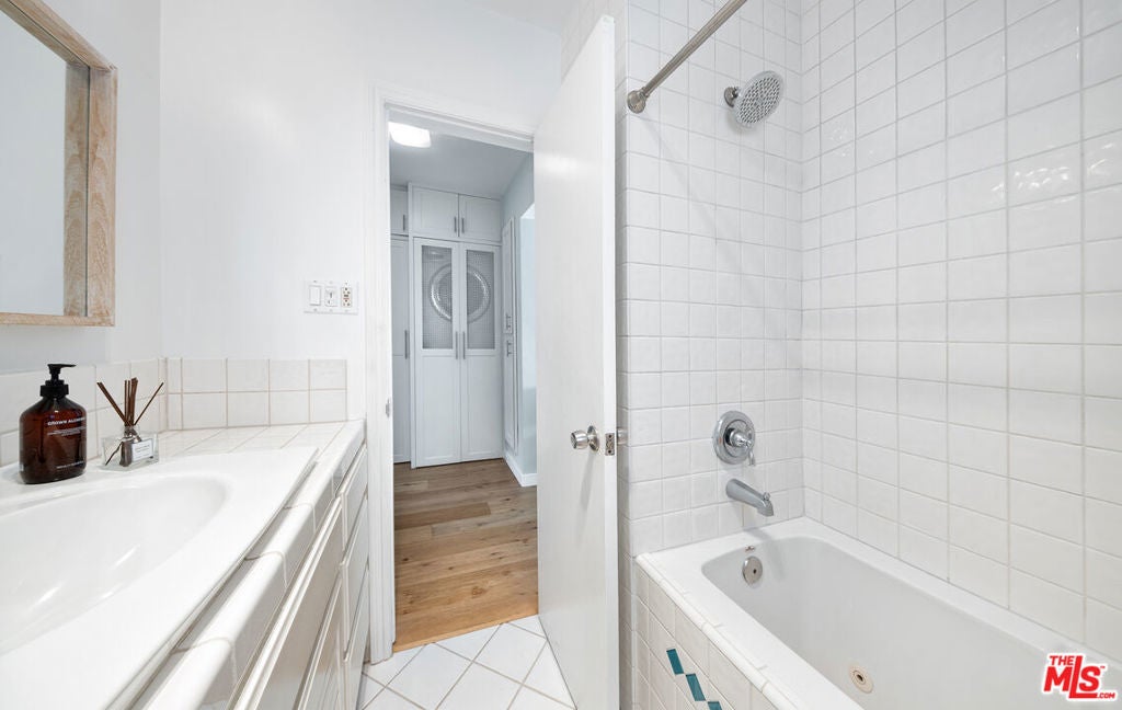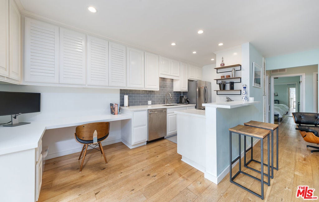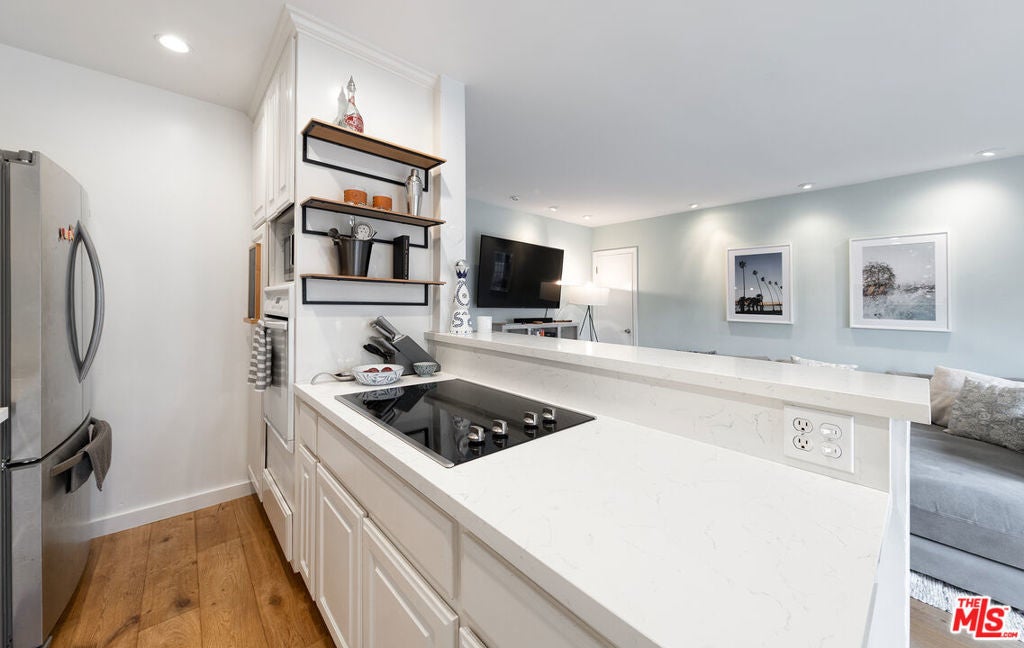 Experience indoor/outdoor living in Santa Monica's Ocean Park neighborhood at this tastefully designed, single level two bedroom condo. From the serene patio, where you can enjoy the benign Mediterranean climate year round, French doors lead to an open floor plan featuring an inviting, light-filled living room and a recently updated kitchen. To the rear you will find two bedrooms and two bathrooms along with in unit laundry. A second set of doors in one of the bedrooms lead you to the parking area and the association amenities of a heated pool, spa, paddle tennis court and an expansive mezzanine deck with community barbecue grills for entertaining or relaxing with a good read in the sun. The current owners installed real hardwood floors and an upgraded electrical panel and they remodeled the kitchen with quartz countertops; a tile backsplash; new sink, faucet and cabinet; canned lights; and a new dishwasher and cooktop. Other improvements were new windows in one of the bedrooms and one of the bathrooms. Easy parking for two cars via gated access is provided in one covered space with a storage locker and an assigned space just to the rear of the unit. Hot water is supplied by a solar-assisted heater on the roof of the complex. HOA dues provide high-speed internet and deluxe cable TV. Conveniently located near freeway access and the Metro Expo line, this condo is close to the shops and restaurants on Main Street, downtown Santa Monica and, of course, the beach and its many recreational options.Don't miss the opportunity to call this remarkable coastal sanctuary your home.