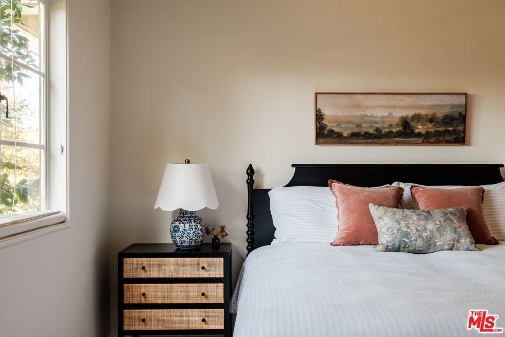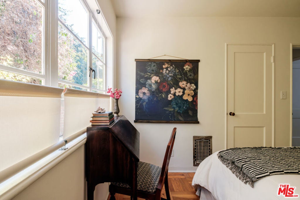 Beautiful light-filled lower unit near the main green. Gorgeous refinished wood parquet floors, original bathroom tile, spacious bedrooms, and plenty of storage! Lovely view of leafy trees from every window, and a sweet outdoor patio off the kitchen. One car garage. Potential of installing W/D with approval from the board. The Village Green, led in design by architect Reginald D. Johnson in the early 1940s, is both a National Historic Landmark and a Los Angeles Historic-Cultural Monument, and each homeowner benefits from the Mills Act with a significant property tax reduction. Come enjoy the sprawling 64 acres of mature trees, grassy fields, and serene walkways, and a vibrant community, with exciting annual events on the green - truly an oasis in the city! Close to the Expo line, Culver City, Kenneth Hahn Park, Baldwin Hills, Whole Foods, Target, plus the many fabulous restaurants on Jefferson and Adams in West Adams like Highly Likely, Maydan Market, Vicky's, MizLaLa and so much more!