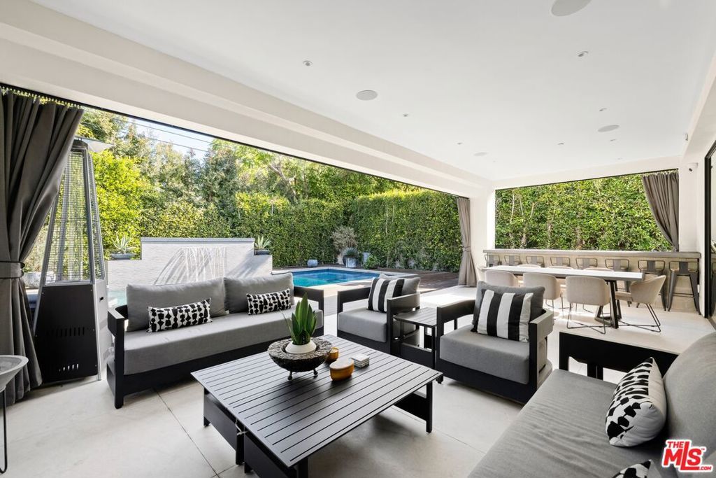 Wonderfully situated in West Los Angeles, this newly constructed contemporary home is perfectly positioned between Century City and Westwood. A sizable 6,800 sqft is laid out over three stories and includes five bedrooms and five full bathrooms, with tasteful details throughout. Vast entertainment spaces include highly polished floors, open room concepts, and sliding floor-to-ceiling windows that open to a loggia-style deck, which frames the pool, fountain, and spa, all within a private hedged back garden. The kitchen boasts dark cabinetry and a pull-up waterfall black marble island with Miele chef-grade appliances. Rounding out the main living space is a dining area with room to host 10 or more guests. Each floor is accessed via a floating concrete and polished steel stairwell, a secondary front-facing den with fireplace, and balcony creates a more intimate space before leading to the bedrooms. The primary suite boasts a black marble fireplace, oversized patio doors, and an archway-covered balcony that overlooks the pool. The ensuite has a stunning dual shower walkthrough-to-standalone tub, stone-topped vanities, and brass fixtures. Other bedrooms feature matching bathrooms and balconies. Unified features throughout include porcelain wide-planked white-washed flooring, recessed lighting, bespoke cabinet work, and unique wallpapers. Further amenities include a partially subterranean games room with a wine wall, wet bar, table tennis, pool table, and a large TV, a resolute space for sports gatherings. Nearby schools include Westwood Charter Elementary, Le Lycee Francais, Wildwood, and UCLA. 1940 Kelton is located close to Westwood Village, Westfield, and the famed Sawtelle Japanese district. Property can be leased furnished or unfurnished.