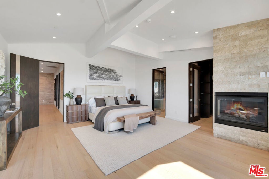 View, View, View! Welcome to this exceptional 5-bedroom, 6-bath custom-built residence that defines modern luxury and elegance. This stunning home offers approximately 6,071 sq. ft. of beautifully finished living space, featuring a spacious private office, exercise room, and entertainment room. Every detail has been thoughtfully designed from the sophisticated, cedar-lined closets to the seamless integration of smart home technology. The open-concept gourmet kitchen showcases top-of-the-line Thermador appliances, dual dishwashers, dual sinks, sleek custom cabinetry, and designer finishes. A cozy fireplace in the living room and another in the primary suite add warmth and ambiance throughout. An in-home elevator provides effortless access to the outdoor paradise, where you'll find a sparkling heated infinity pool, relaxing jacuzzi, and breathtaking panoramic views to enjoy while you unwind. 24-hour security guard ! Please click on the video and drone tour for a full experience of this remarkable home!