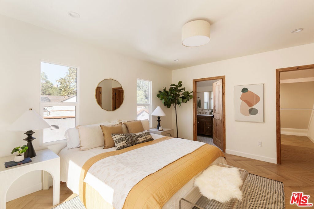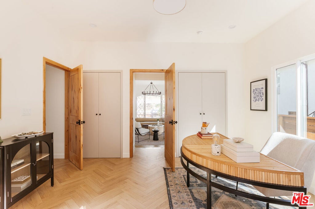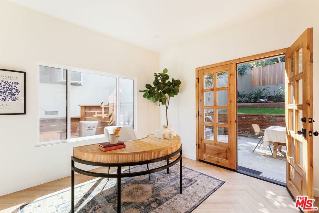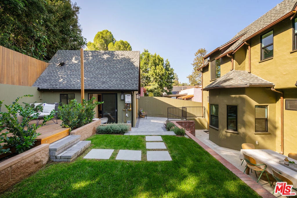 Perched in the sought-after Franklin Hills of Los Feliz, this stunning Tudor residence perfectly balances timeless character with modern design. Thoughtfully remodeled, the home showcases elegant herringbone flooring, a designer kitchen, and beautifully updated bathrooms, all while preserving the charm of its original leaded glass windows and classic wainscoting. The living room is a showpiece, featuring a soaring ceiling, original architectural details, and a striking fireplace. A full dining room provides the perfect setting for gatherings, while a sunny kitchen eating area offers a relaxed spot to start the day. Upstairs are three inviting bedrooms, while the main level includes a versatile office that can double as a guest bedroom, conveniently situated next to a full bath. Outside, a newly converted detached ADU adds valuable flexibility, ideal for guests or private home workspace. The manicured yard is fully fenced for privacy and includes a deck with a built-in hot tub, perfect for unwinding beneath the stars. With ample space for entertaining and seamless indoor-outdoor flow, this home embodies quintessential Los Angeles living. With new plumbing, electrical, drainage systems, and foundation upgrades, every detail has been updated for lasting comfort and peace of mind. Surrounded by the best of Los Feliz and Silver Lake's cafes, boutiques, and dining, this home offers the perfect blend of style, location, and livability.
