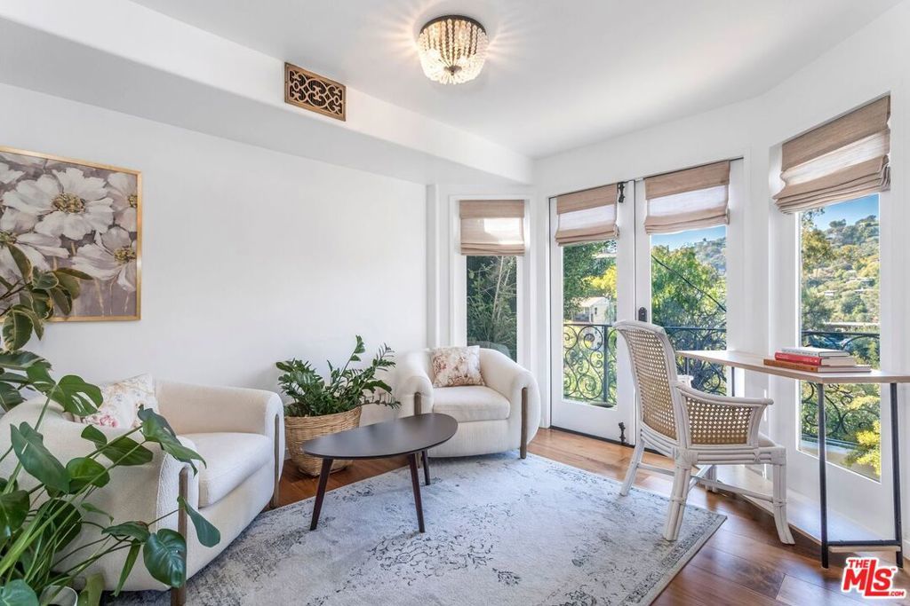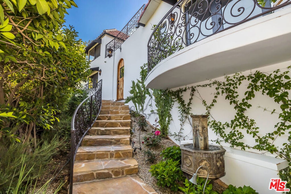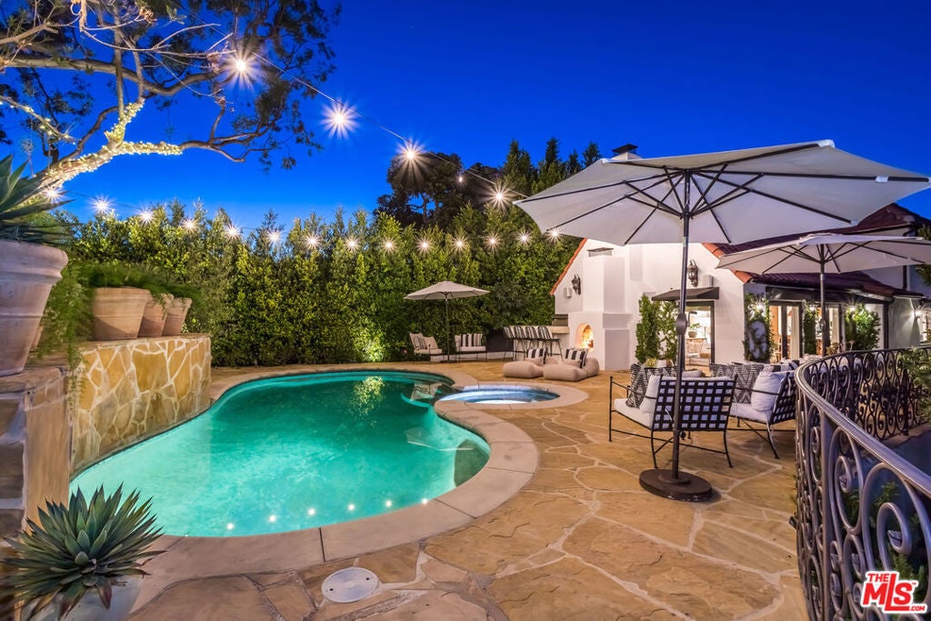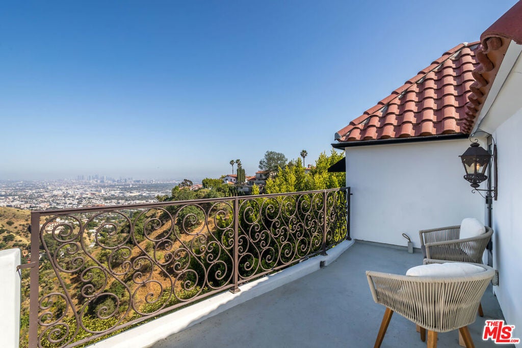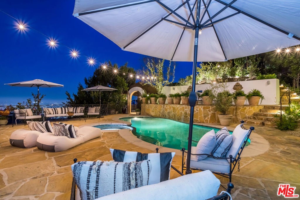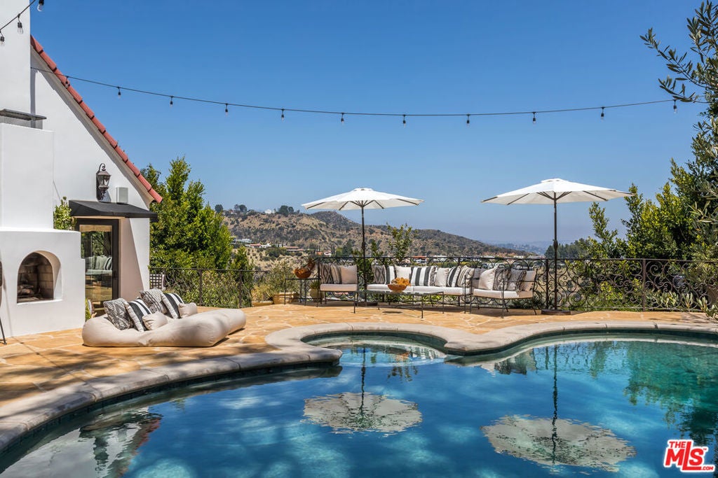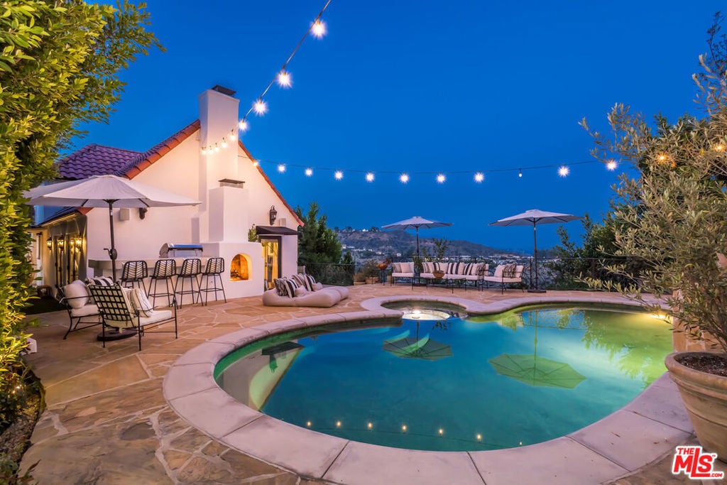 A must-see Hollywood Hills Hideaway | Unmatched Privacy, Safety + Explosive Views. At the very end of a private promontory sits this romantic Mediterranean estate, a rare jewel where timeless elegance meets modern luxury. No expense was spared in creating this fully custom home with Waterworks fixtures, hand selected walnut hardwood floors, artisan tilework, and bespoke cabinetry throughout. For the health conscious, the home is comprised of all natural materials along with a whole house water filter (Aquasana) and a whole house filtered HVAC system (IQ Air). A drinking water filtration system was also installed in the kitchen. The chef's kitchen features Viking appliances, Liebherr refrigerator seamlessly integrated with the cabinetry for a sleek built-in aesthetic, opening to dramatic indoor-outdoor living spaces perfect for entertaining. Celebrity approved with a state-of-the-art security system and rolling tamper-proof, bullet-resistant shutters, this property offers true peace of mind. The open layout flows to multiple expansive terraces, a sparkling pool, bubbling fountains, fire pit, cabana, and two additional outdoor fireplaces, all framed by sweeping, romantic views of the city. Rare direct access to your three-car garage, Sonos-powered surround sound, and fully connected smart home systems for lighting, cameras, and security all easily controlled from your phone make for easy secure living. Set on a large private lot with endless possibilities, this home isn't just a place to live, it's a lifestyle. Video: https://vimeo.com/1131091578/a379a412aa?fl=pl&fe=sh