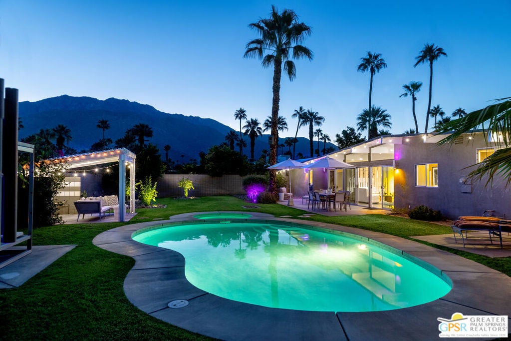 Welcome to a slice of Atomic Age design in the heart of Palm Springs at 2835 East Plaimor Avenue. This stylish home, designed by the prestigious Alexander Construction Company, encapsulates the quintessential mid-century modern aesthetic. With 1,608 square feet of living space, this residence offers three spacious bedrooms and two well-appointed bathrooms, perfectly accommodating a modern lifestyle. Nestled in the famed Sunmor Estates, the property sits on a generous 10,019 square foot lot, offering ample space for relaxation and entertainment. This floor plan includes a versatile bonus room, ideal for a media or casual den space. Step outside to experience the epitome of California living with a south-facing yard that features a sparkling pool and inviting spa, all set against a backdrop of stunning mountain views. The home is being sold fully furnished!. Whether you're soaking up the sun or stargazing at night, this residence is a sanctuary of style and comfort. Don't miss the opportunity to make this extraordinary home your own.