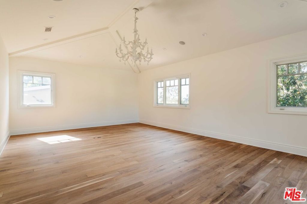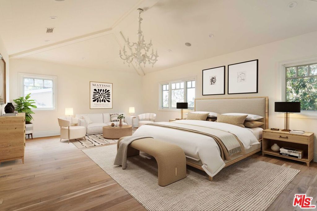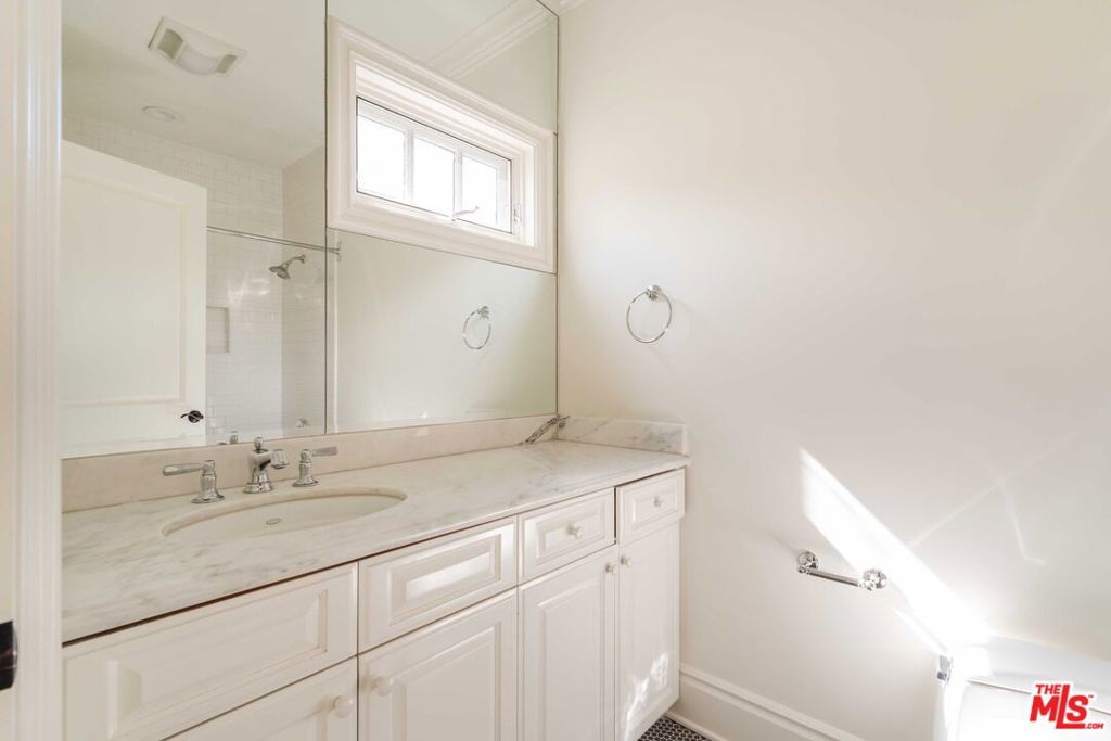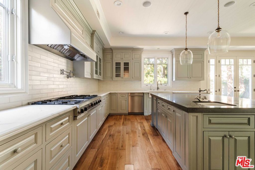 Set on a picturesque tree-lined street in the coveted Santa Monica Canyon, this private Traditional home blends modern luxury with timeless design across a thoughtful floor plan. Guests are welcomed through a gated, grassy front yard into a stately foyer with vaulted ceilings and a striking capiz shell chandelier. Hardwood floors lead past the formal living and dining rooms to the open-concept heart of the home - featuring a family room with fireplace and chef's kitchen boasting a large island, Viking appliances, and an adjacent breakfast area. French doors open to a tranquil backyard ideal for al fresco dining, lounging, and play. A butler's pantry and walk-in pantry connect the kitchen to the dining room. Completing the main level are a guest suite, office with built-ins, powder room, laundry room, and two-car garage. A dramatic, light-filled staircase leads to four bedroom suites upstairs. The luxurious primary suite features vaulted ceilings, a generous walk-in closet, private covered terrace with fireplace, and a spa-like bath clad in Arabescato marble with dual vanities, a large shower, and a soaking tub. All three upstairs bedrooms are ensuite with two sharing a jack-and-jill bathroom. A homework/desk area and built-ins/storage complete this level. Located within the Canyon Elementary School District, tenants also enjoy the best of the Canyon lifestyle with a short stroll to Rustic Coffee, the Santa Monica Stairs, and neighborhood favorites like Giorgio Baldi, Caff Delfini, and the Golden Bull - plus the beach just a few blocks away. Experience refined comfort and exceptional design on one of Santa Monica Canyon's most desirable streets. Home may be leased furnished - call listing agents for details.