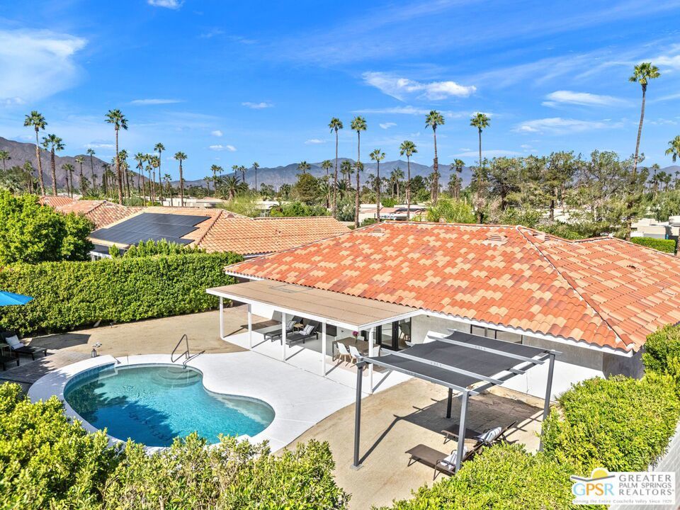 SUN, STYLE, and mountain VIEWS! A walled and hedged contemporary in Quail Point with 3 bedrooms, 3 baths, and a south-facing pool that captures the best of Palm Springs. Set within Vista Norte with no HOA and land you own. Ultra private grounds with gorgeous views and San Jacinto working its magic. Investor friendly too, currently eligible for a SHORT TERM RENTAL permit from the City of Palm Springs. The open concept layout feels bright and modern with vaulted ceilings and sliders that open to a covered patio for easy indoor outdoor living. The primary suite has direct pool and patio access, and its updated bath with separate tub and shower really shines. Guest bath refreshed as well, vaulted ceilings continue through the bedrooms, and new wide plank flooring runs throughout. Energy saving NEST system, replastered pool, desert wise landscaping, built in BBQ, utility room, and attached two car garage with the third bath complete the picture. Take the Matterport virtual tour for a better sense of flow.