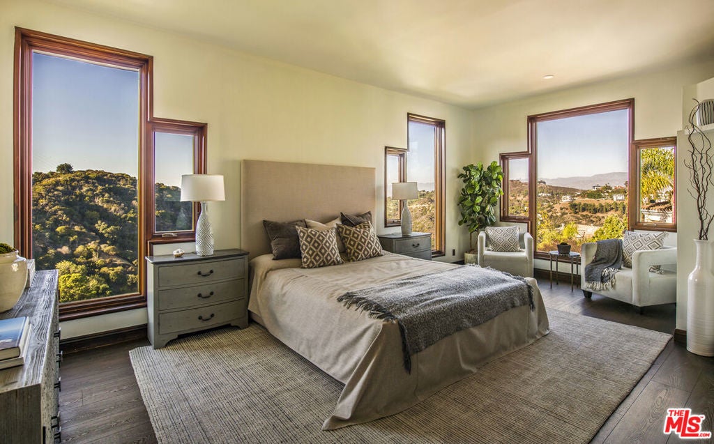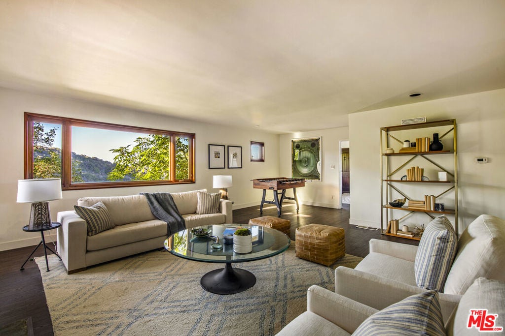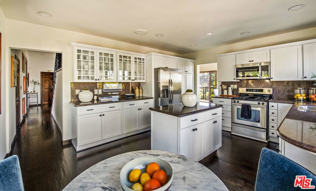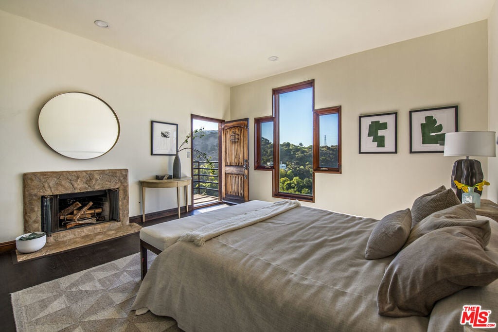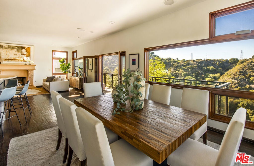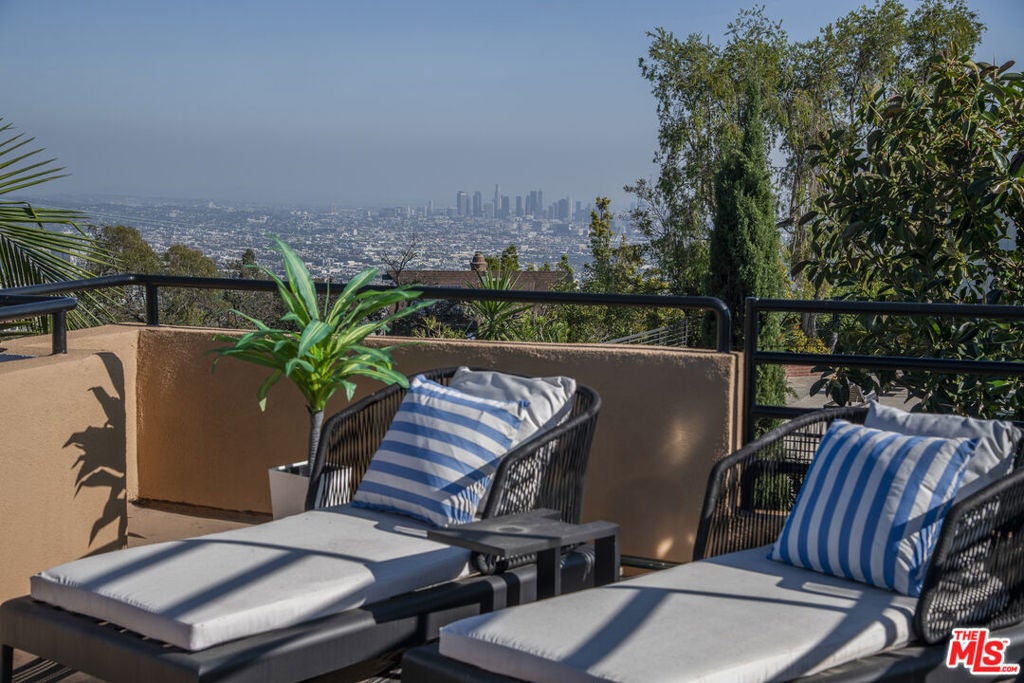 Sited in the heart of Laurel Canyon, this contemporary residence delivers panoramic views from nearly every angle. Designed to maximize its natural surroundings, wide custom windows and a 1,000-square-foot rooftop deck frame unobstructed 360-degree vistas of the mountains, canyon, city skyline, and glittering lights beyond. Set on a quiet street and spread across three combined lots totaling 13,564 square feet, the property offers rare scale, generous outdoor space, and the potential to add value, all within one of the Canyon's most coveted enclaves. Inside, the main living area is defined by soaring ceilings and one of the home's four wood-burning fireplaces. Walls of glass open to a large balcony, while a built-in bar supports seamless indoor/outdoor living and entertainment. The kitchen connects naturally to the living area and features an oversized island, ample storage, and stainless steel appliances, completing a thoughtful layout. There are three bedrooms, all en-suite and four bathrooms, each with high ceilings and custom windows. On the lower level, a generously-sized flex space, with its own entrance and full bath offers the ideal setup for a guest suite, office, or creative studio. Additional amenities include a two-car garage, ample street parking, extra storage, newer A/C system, and water filtration system. All of this, within the highly sought-after Wonderland Elementary School district and just moments to all that Sunset and Ventura Boulevards living have to offer.