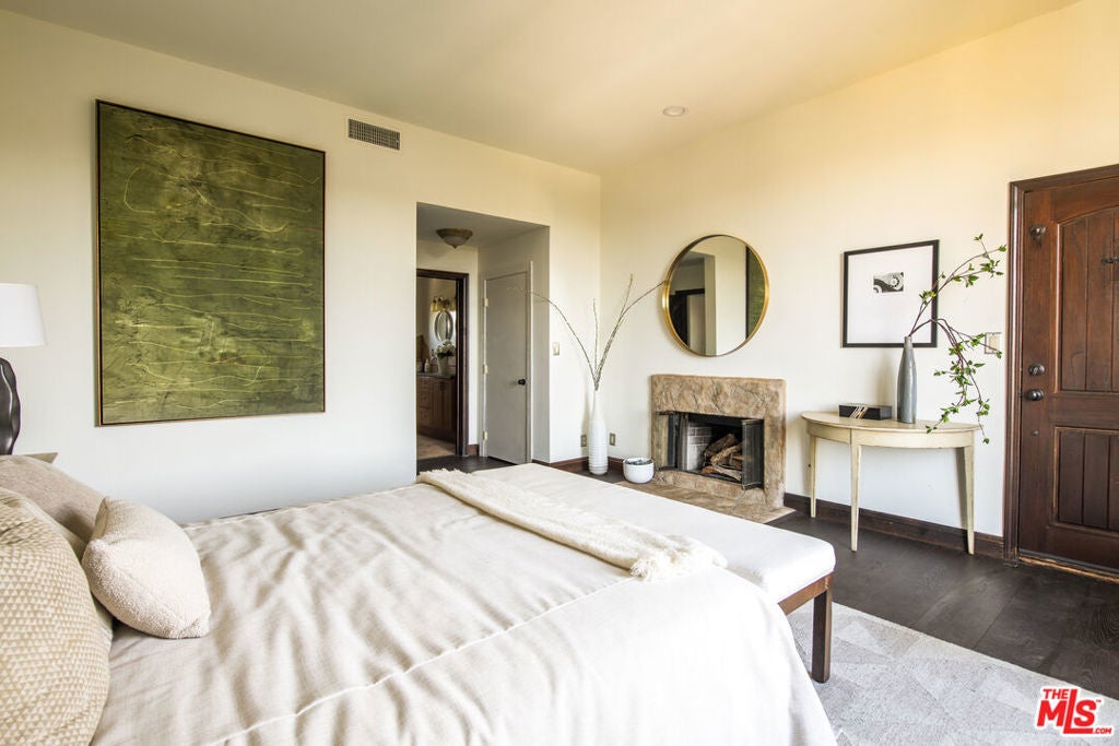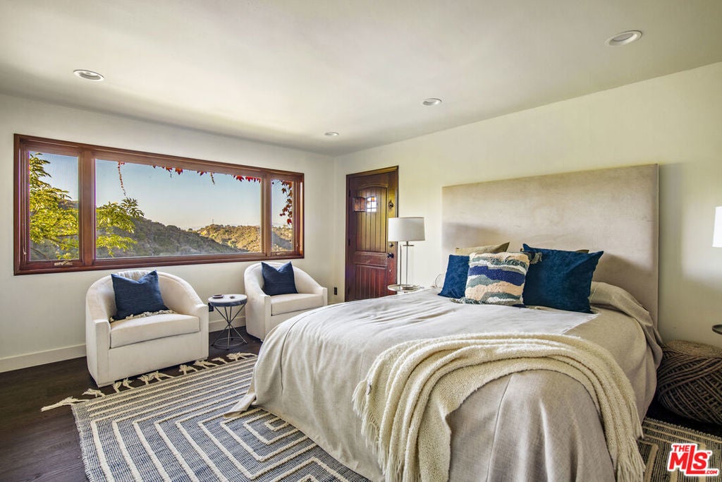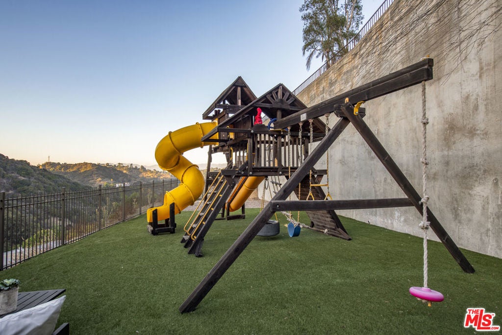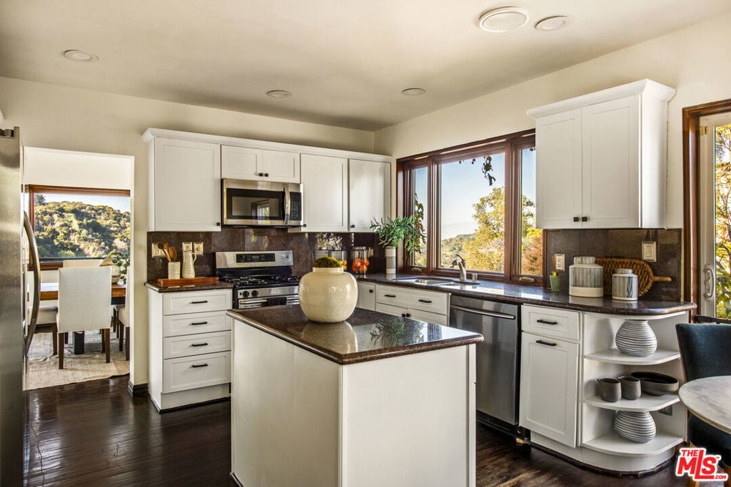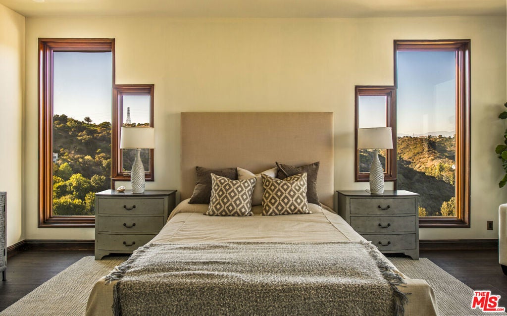 Sited in the heart of Laurel Canyon, this contemporary residence delivers panoramic views from nearly every angle. Designed to maximize its natural surroundings, wide custom windows and a 1,000-square-foot rooftop deck frame unobstructed 360-degree vistas of the mountains, canyon, city skyline, and glittering lights beyond. Set on a quiet street and spread across three combined lots totaling 13,564 square feet, the property offers rare scale, generous outdoor space, and the potential to add value, all within one of the Canyon's most coveted enclaves. Inside, the main living area is defined by soaring ceilings and one of the home's four wood-burning fireplaces. Walls of glass open to a large balcony, while a built-in bar supports seamless indoor/outdoor living and entertainment. The kitchen connects naturally to the living area and features an oversized island, ample storage, and stainless steel appliances, completing a thoughtful layout. There are three bedrooms, all en-suite and four bathrooms, each with high ceilings and custom windows. On the lower level, a generously-sized flex space, with its own entrance and full bath offers the ideal setup for a guest suite, office, or creative studio. Additional amenities include a two-car garage, ample street parking, extra storage, newer A/C system, and water filtration system. All of this, within the highly sought-after Wonderland Elementary School district and just moments to all that Sunset and Ventura Boulevards living have to offer.