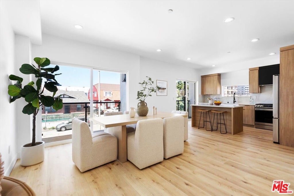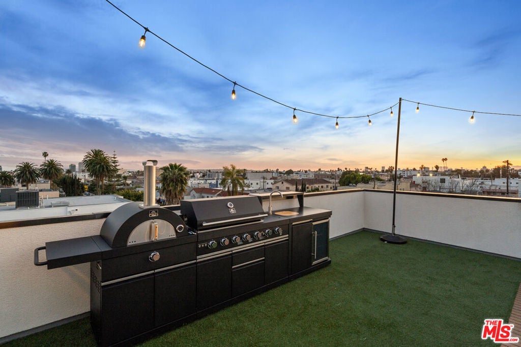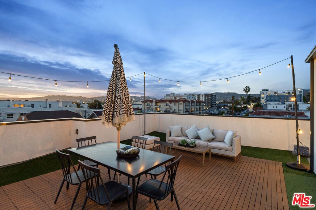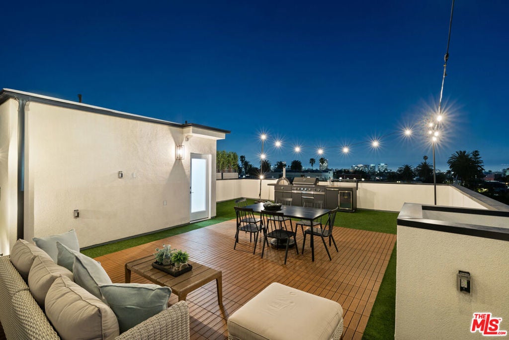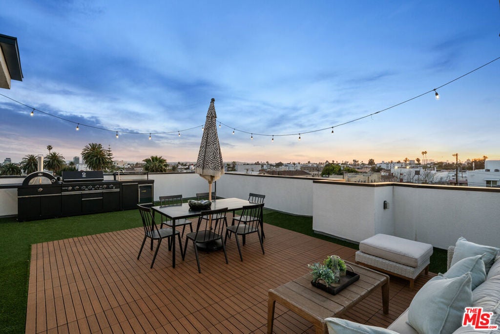 Perfectly positioned between the creative pulse of Hollywood, the charm of Larchmont Village, the historic character of Melrose Hill, and the vibrant energy of Koreatown, this home offers a rare blend of cultural access and neighborhood distinction. Unveiling a sophisticated urban living, this brand-new 2025 built home offers an unrivaled blend of elegant design and expansive spaces that culminate in an opulent lifestyle experience. Step inside to discover an interior where every detail has been thoughtfully curated for discerning tastes. The residence boasts soaring 10-foot ceilings, stylish shaker-style interior doors, and an abundance of natural light pouring in through oversized sliding glass doors that open to multiple serene balconies. The thoughtfully designed interiors offer a harmonious blend of space, light, and comfort, unfolding with an open-concept layout that highlights exquisite high-end finishes and premium materials throughout. From the wide-plank floors that unify the interiors to the fixtures, each element contributes to an ambiance of refined elegance and unparalleled comfort. At the heart of the home lies a chef's kitchen, an absolute dream featuring a central panel-wrapped island, warm wood custom cabinetry, and premium stainless-steel appliances an ideal space for both daily life and sophisticated entertaining. With ample storage and a conveniently located washer and dryer, this home ensures comfortable living for you and your family in its 4 spacious bedrooms and 4 elegant bathrooms. Additionally, enjoy the convenience of a direct access side-by-side 2-car garage plus 2 uncovered parking spaces. The crown jewel is an expansive 779 square feet private rooftop terrace, your personal sanctuary that commands breathtaking, uninterrupted panoramic views of iconic landmarks like the Hollywood Sign, Griffith Park Observatory, and the dazzling Downtown Los Angeles skyline. This magnificent outdoor haven is a true entertainer's paradise, purpose-built for entertainment and offering 360-degree vistas. It features a fully-equipped outdoor kitchen complete with a natural gas BBQ, an integrated fridge, a convenient sink, and a pizza oven. Composite decking, artificial turf and charming string lighting complete this exquisite space, perfect for hosting unforgettable gatherings or simply unwinding under the stars. Centrally located near major employers like Paramount Studios, Netflix, Kaiser Permanente, Children's Hospital Los Angeles, and Los Angeles City College, this home also offers seamless access to key transportation corridors including the 101 Freeway, Beverly Blvd., and Melrose Ave., connecting you to Downtown and beyond with ease. Schedule your private tour today.