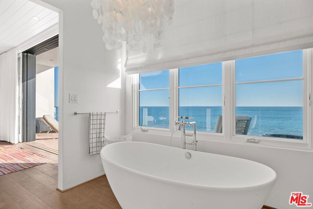 Fully furnished and ready for move-in immediately!! This Spanish contemporary beachfront property is located on the coveted & legendary Escondido beach. It is one of sandiest beaches in Malibu & stretches for miles in the east & west direction. The beach house is positioned facing south, so it captures the breathtaking sunrise over Santa Monica Bay & the sunset over Point Dume. The house was rebuilt in 2016 from the ground up & features a concrete foundation w/ caissons & one of the largest cantilevered decks on Escondido Beach, which sits suspended just feet above the sand allowing seamless private direct beach access. The guest enters the one-of-a-kind beach house via a gated arched entry, which leads to the hardscaped courtyard w/ large spa & mature olive trees. Behind the oversized iron front door reveals the spacious open floor plan w/ high ceilings, recessed lighting & hardwood floors. The kitchen features quartz countertops & high-end appliances, while the living & dining area has a spacious sectional w/ huge tv & plenty of seating for family & guests. Ready for the beach? Then head outside through the floor-to-ceiling sliding glass pocket doors to the expansive oceanfront deck w/ wraparound bench seating, built-in BBQ & private direct beach access. Adjacent to the living area is a cozy media room w/ bar, wine cellar & direct deck access. The second level features two bedrooms w/ Juliet balcony & bunk beds, multiple skylights & a grand oceanfront master suite complete w/ sitting area, balcony & panoramic ocean views from the Queen's Necklace to Point Dume. There is plenty of parking in the two-car garage or designated parking area on the premises & is close proximity to world-class dining, shopping & entertainment. Private membership offering to the Sycamore Tennis Courts available.