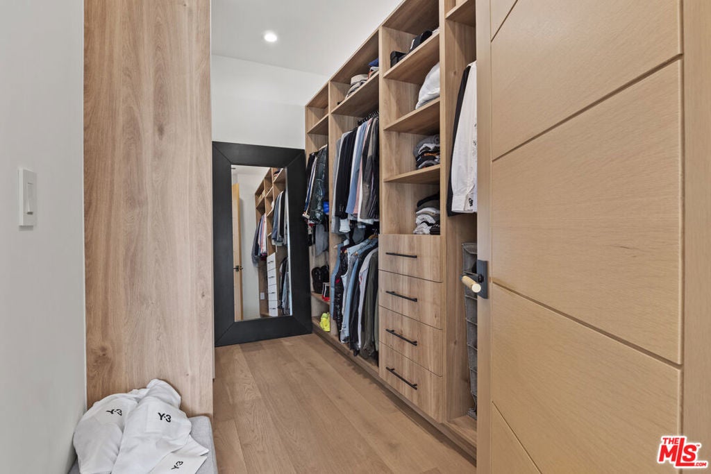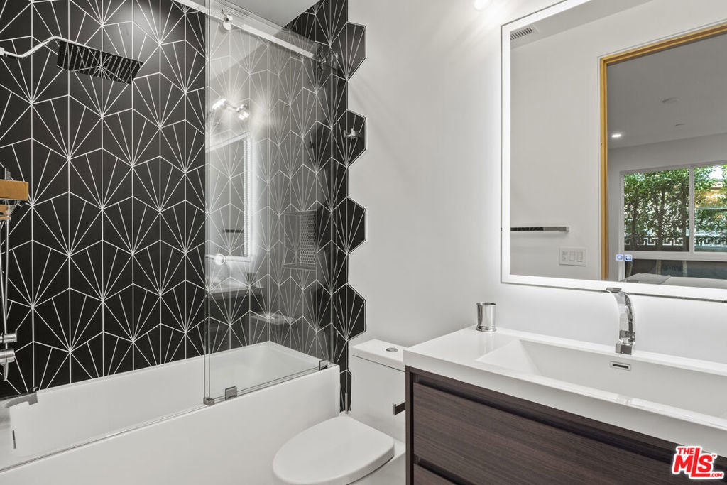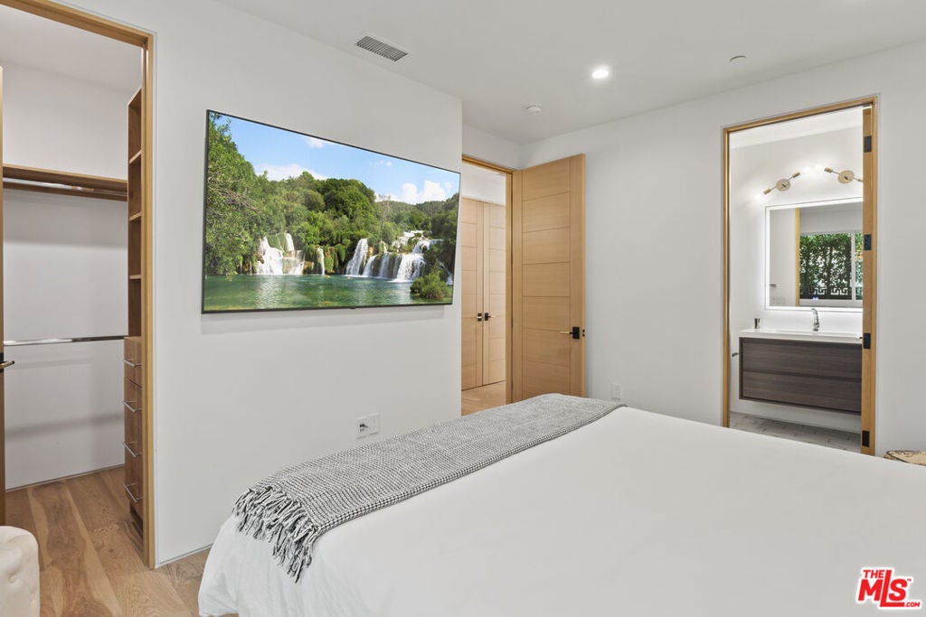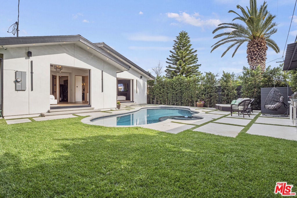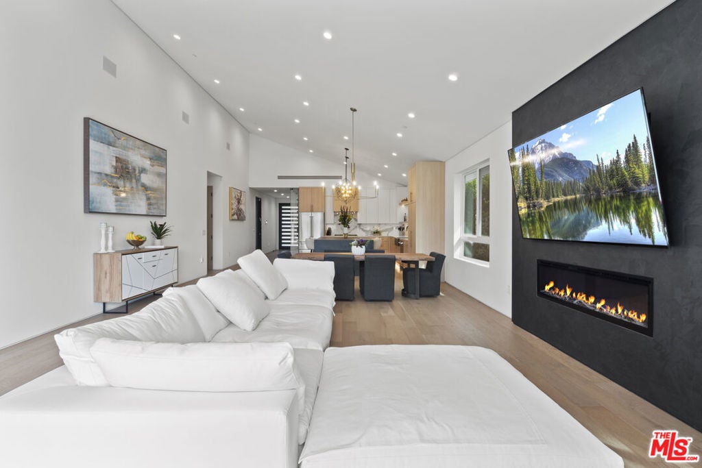 Introducing North Hollywood's latest gem, a stunning modern home situated just moments away from the bustling studios, the NoHo Arts District, and the brand-new NoHo West shopping center. With its contemporary design and abundance of modern amenities, this newly developed home is a true statement-maker. As you step inside, you'll immediately notice the airy open floor plan with high ceilings and a plethora of smart home features. The main living space is expansive and boasts impressive 15ft vaulted ceilings that create a grand ambiance. The designer chef's kitchen is a masterpiece, featuring high-end Bertazzoni appliances, a massive center island with a butcher block slab, and built-in features like an integrated pet bowl, paper towel holder, and a drawer microwave. The family room is the perfect spot to relax and unwind, with a beautiful fireplace and pocketing glass doors that create a seamless indoor/outdoor living experience. Step outside, and you'll find a heated pool and spa, as well as a covered outdoor kitchen complete with a BBQ, sink, and mini-fridge. The luxurious primary suite is a true sanctuary, featuring cathedral ceilings, a spacious walk-in closet, and a sumptuous bathroom with a lavish soaking tub. There are also two additional ensuite bedrooms with walk-in closets, a fourth bedroom/office, a custom wine rack, LED-lit mirrors in every bathroom, and a laundry room. The home also boasts a dog run, a two-car garage, and a built-in home speaker system. This exceptional modern home in North Hollywood is an absolute must-see, offering unparalleled luxury and convenience in a prime location.