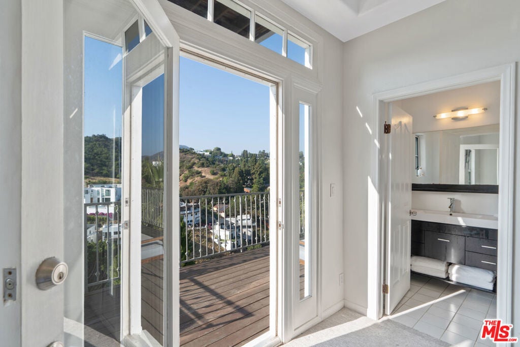 FOR LEASE Behind a gate, on a quiet street is a lovely refreshed home waiting for your enjoyment. Remodeled kitchen, updated bathrooms with each bedroom, and vaulted ceilings are just some of the features of this home. Street level is a two-car garage with direct access to the house and one bedroom with its own bathroom. Upstairs is the living, dining, powder, kitchen, breakfast area den office/tv room. Windows on the north side of the house flood the rooms with light and have panoramic views of the canyon, reservoir and Hollywood Sign. Downstairs from street level is a huge primary bedroom with its own spa tub, separate shower and wonderful sitting/office area. Also downstairs is a third bedroom with its own bathroom and walk-in closet. All levels access decks on the north side of the house. Short walk to Lake Hollywood reservoir or Beachwood Village, and walking distance to shops and restaurants on trendy Franklin Ave. A wonderful home to come home to and relax.