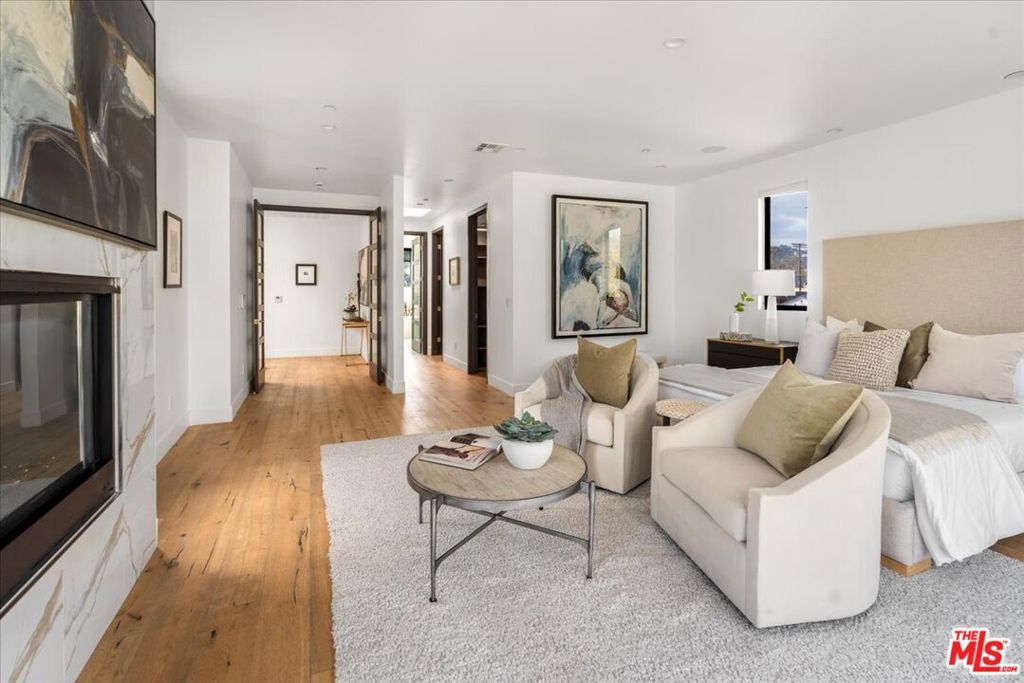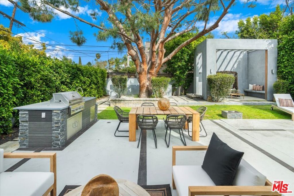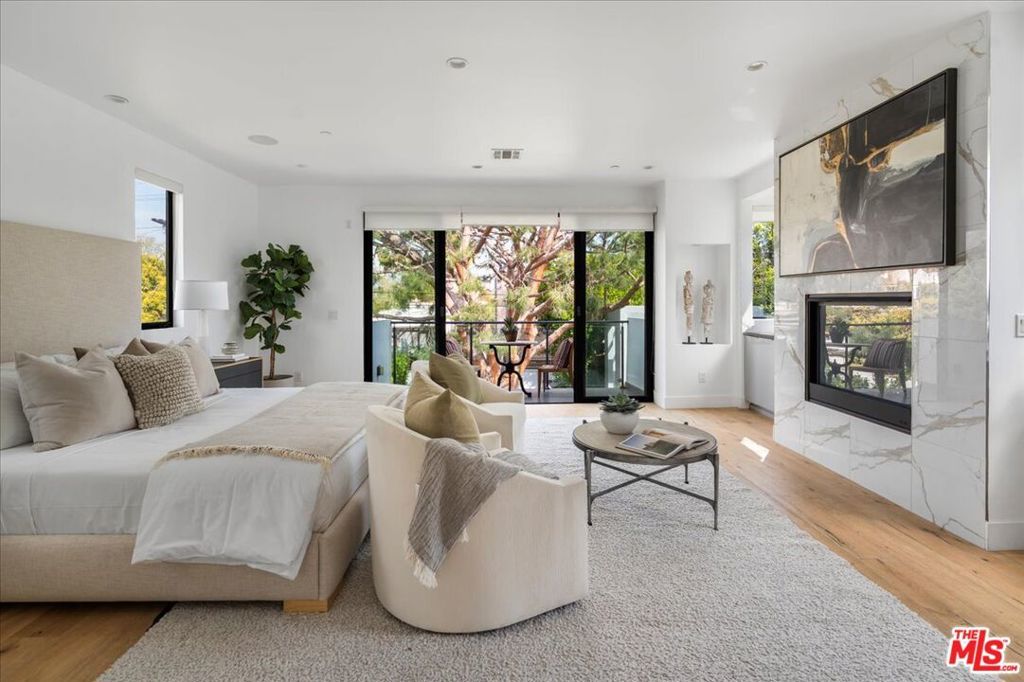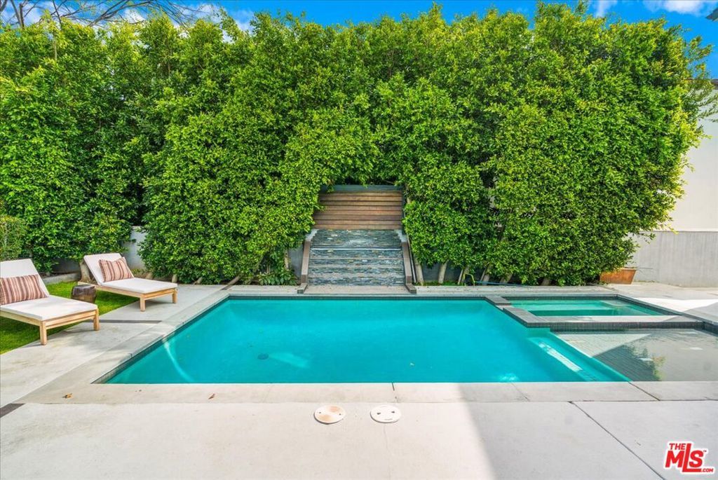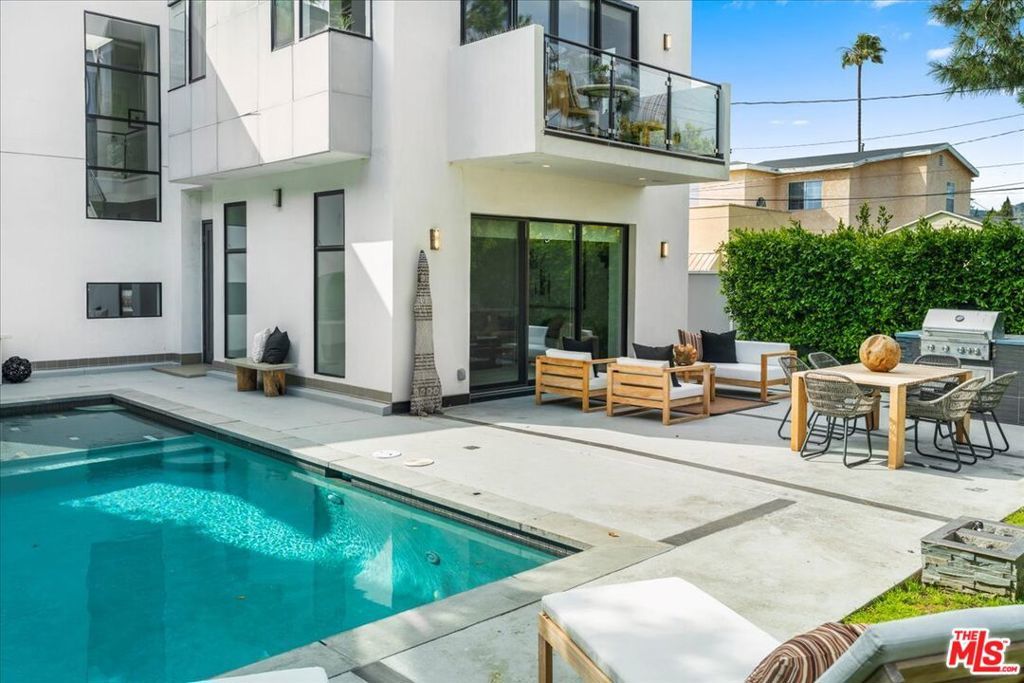 Located in highly coveted Prime Beverly Grove, this private, gated modern architectural home offers seamless indoor-outdoor living. Filled with natural light, the spacious two-story layout includes a basement media room.Features lofty ceilings, recessed lighting, designer tile, and hardwood floors throughout. The custom Chef's kitchen boasts Viking appliances, marble counters, dual sinks, three ovens, large center island, stainless steel accents, and a walk-in pantry.Living room opens via pocket sliding doors to a stunning backyard oasis with pool, spa, firepit, BBQ, waterfall, and gazebo perfect for entertaining.Upstairs, the luxurious primary suite features a fireplace, balcony, soaking tub, rain shower, and large walk-in closet.Walking distance to Melrose Ave dining, shopping, and nightlife.