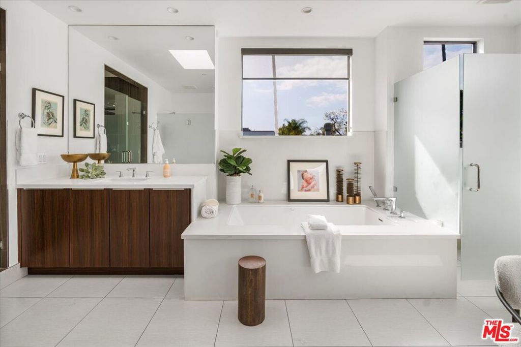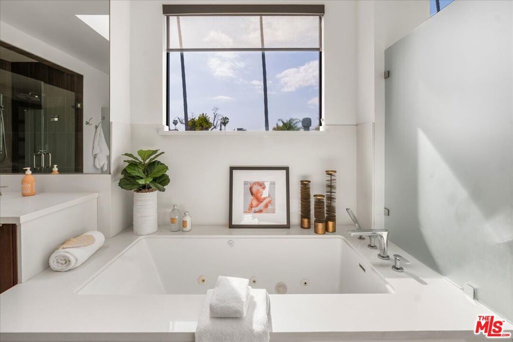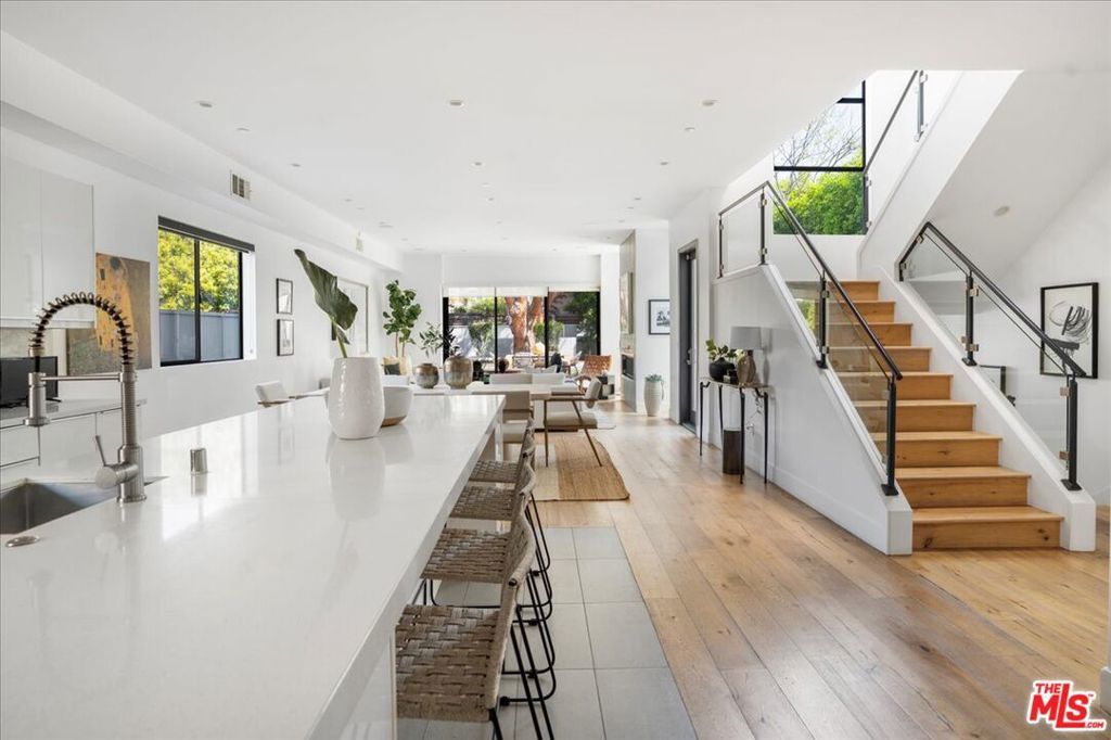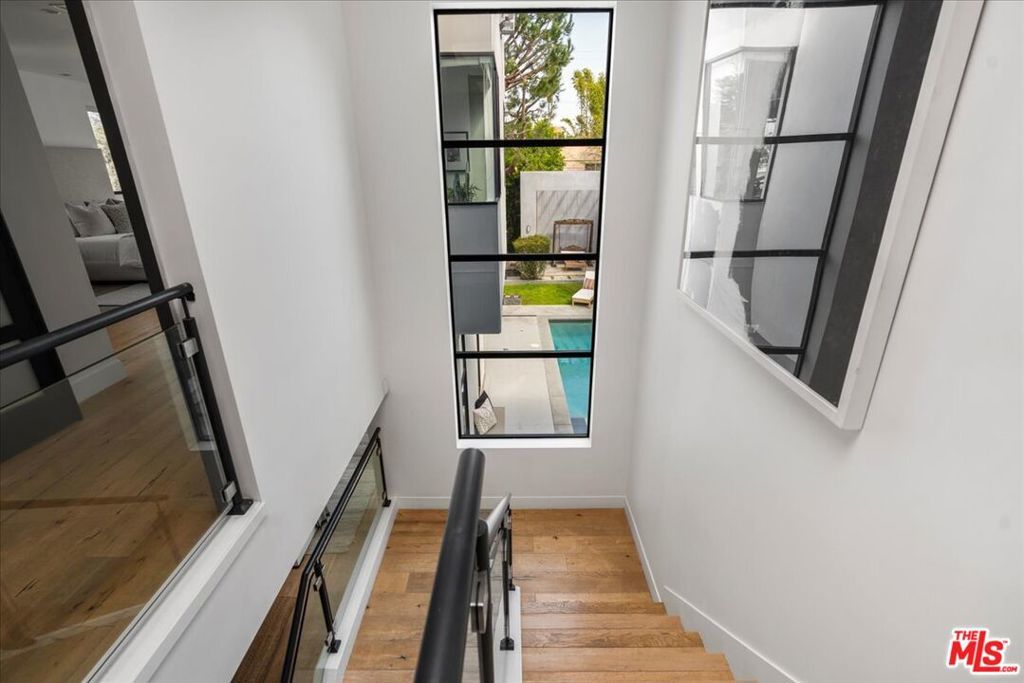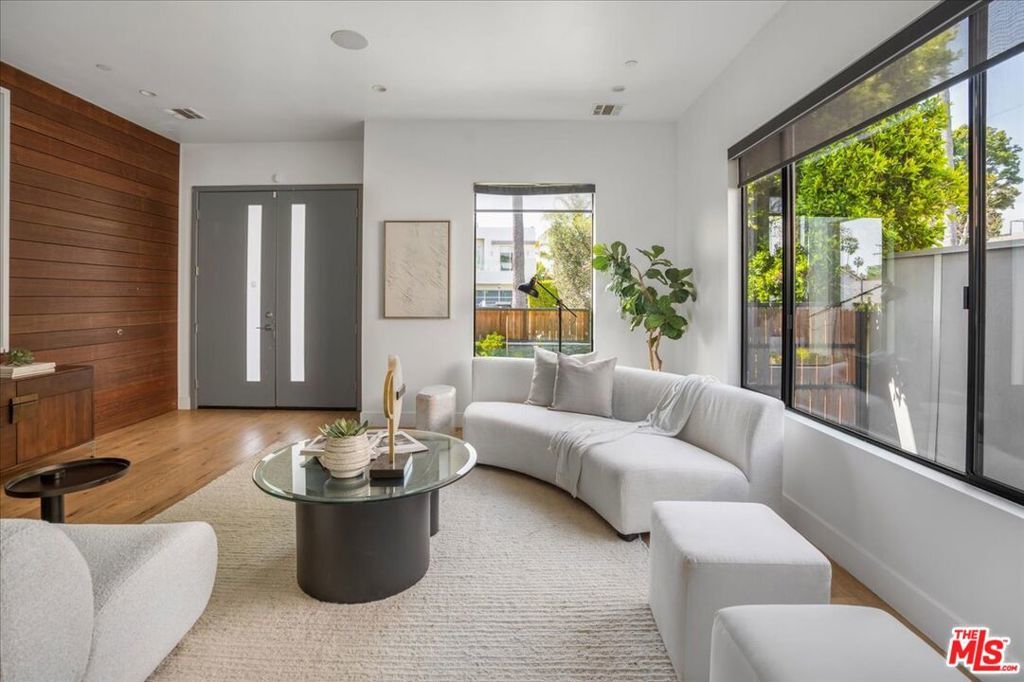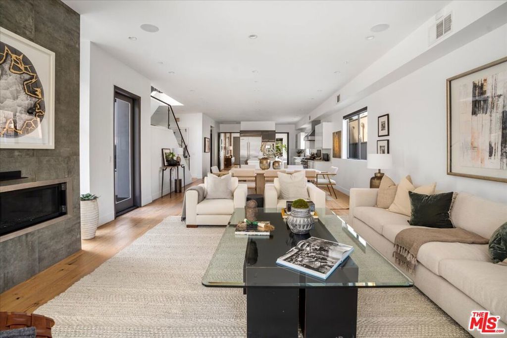 Located in highly coveted Prime Beverly Grove, this private, gated modern architectural home offers seamless indoor-outdoor living. Filled with natural light, the spacious two-story layout includes a basement media room.Features lofty ceilings, recessed lighting, designer tile, and hardwood floors throughout. The custom Chef's kitchen boasts Viking appliances, marble counters, dual sinks, three ovens, large center island, stainless steel accents, and a walk-in pantry.Living room opens via pocket sliding doors to a stunning backyard oasis with pool, spa, firepit, BBQ, waterfall, and gazebo perfect for entertaining.Upstairs, the luxurious primary suite features a fireplace, balcony, soaking tub, rain shower, and large walk-in closet.Walking distance to Melrose Ave dining, shopping, and nightlife.