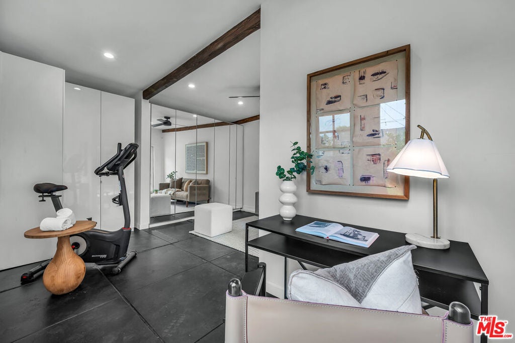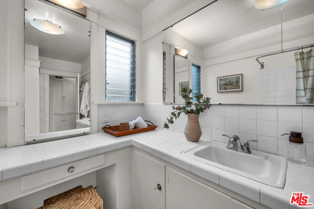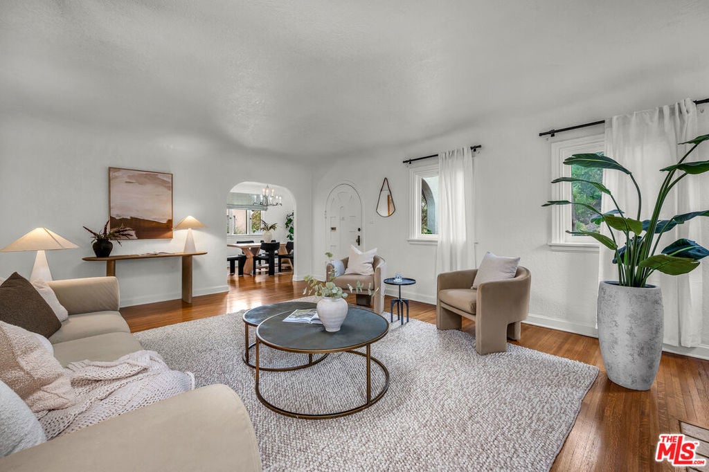 Ideally located in the heart of Larchmont Village, this charming home will captivate you from the moment you arrive. An electric gate opens to a secure driveway, offering both convenience and peace of mind. The inviting front patio provides the perfect spot to enjoy your morning coffee or unwind in the evening. Inside, a wealth of original architectural details awaits beautiful coved ceilings, arched doorways, and elegant French windows. The sunny, spacious living room features gleaming hardwood floors and a stunning Batchelder fireplace as its centerpiece. The formal dining room easily accommodates large gatherings, while the kitchen offers new countertops, ample storage, and an adjacent laundry room for added functionality. The large bathroom includes a tub and a comfortable vanity area, ideal for starting your day in style. The bright and airy primary bedroom offers a tranquil retreat, and the second bedroom opens directly to the private backyard an oasis with multiple areas for dining, relaxing or play. The converted garage serves as a versatile office or creative studio, complete with custom built-ins and French doors. Additional features include central air conditioning and a security system. Just blocks from Larchmont Boulevard's beloved shops, cafes, and boutiques, this very special home perfectly blends original character with modern comfort in one of Los Angeles's most desirable neighborhoods.