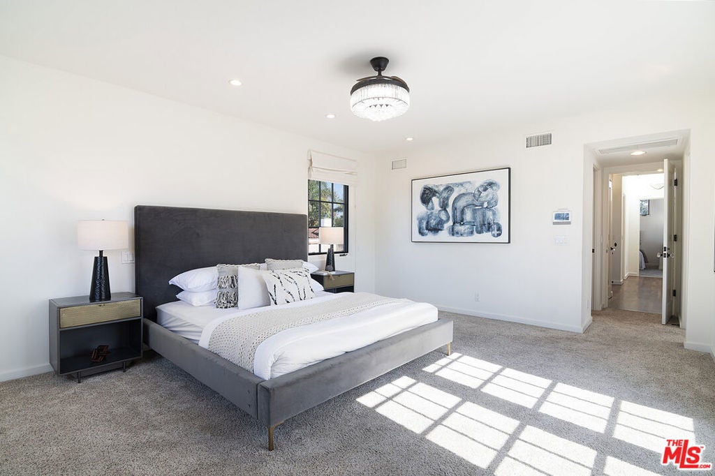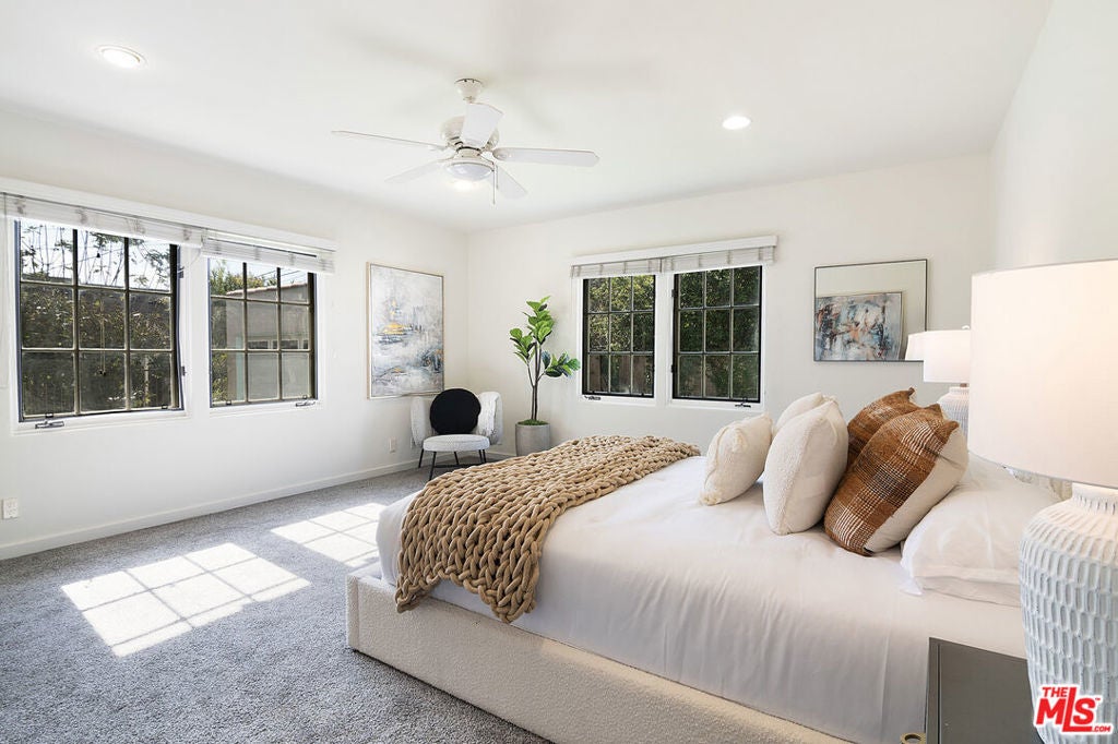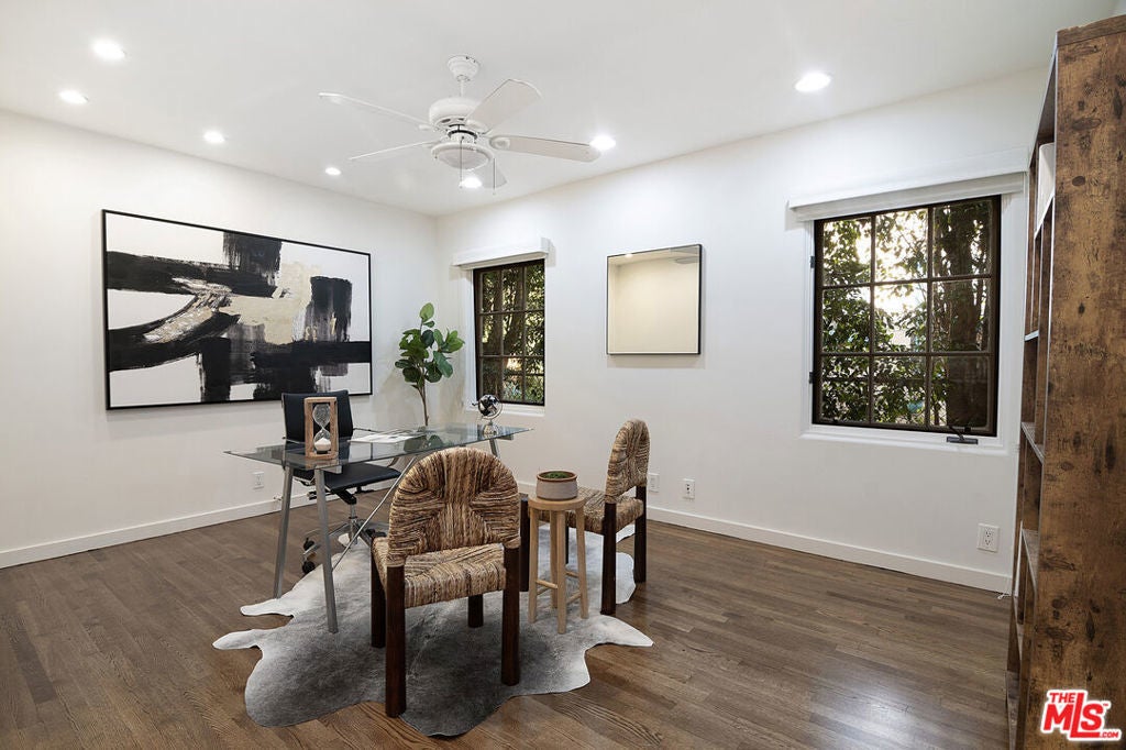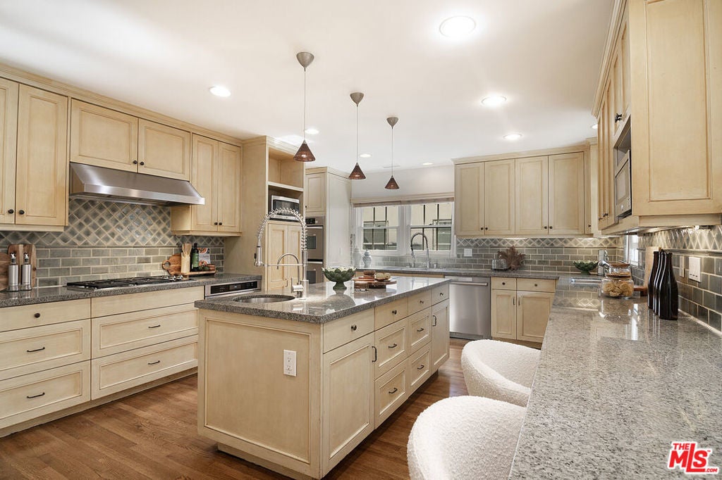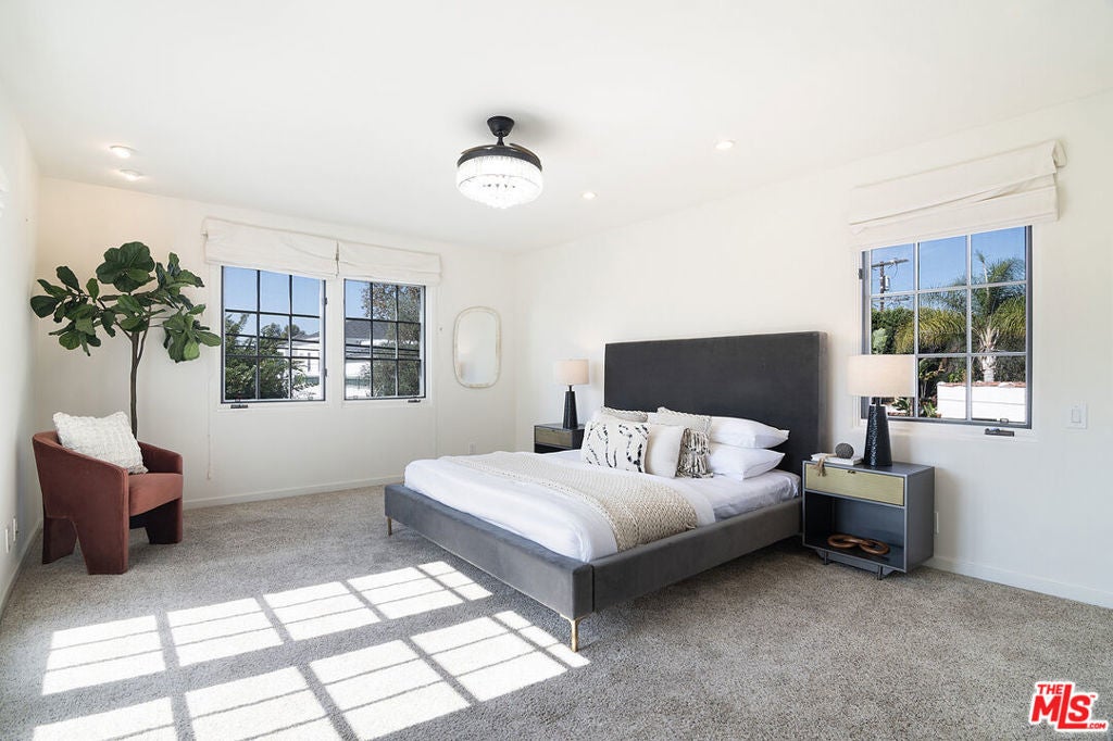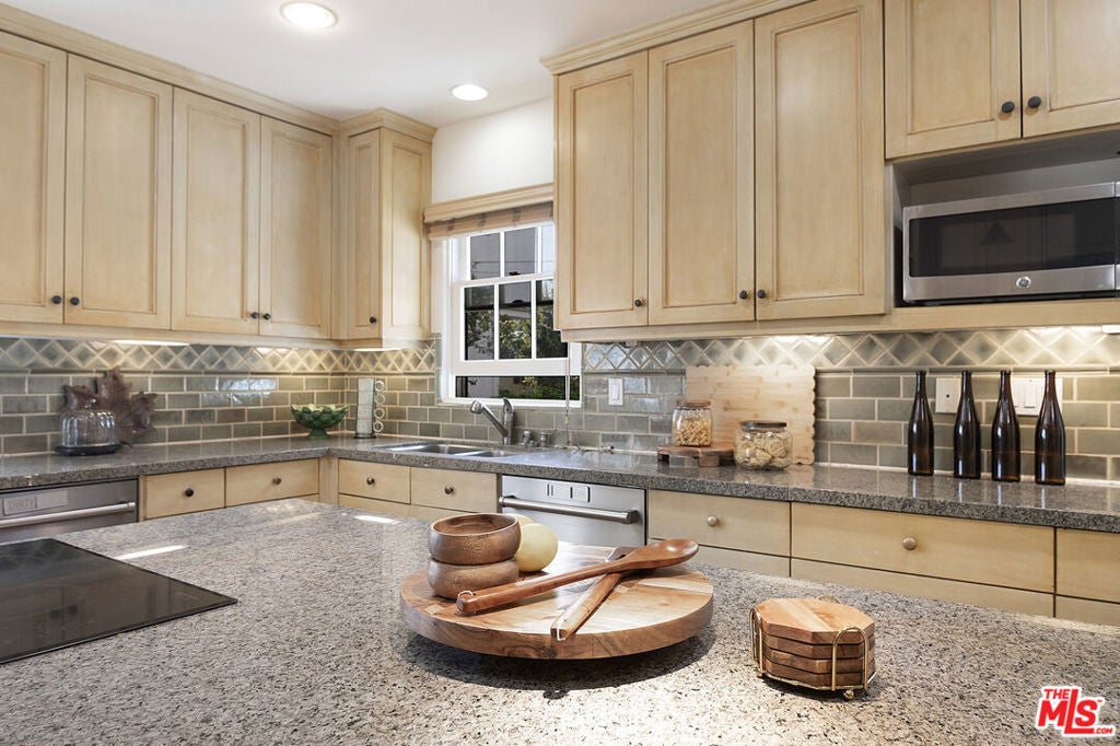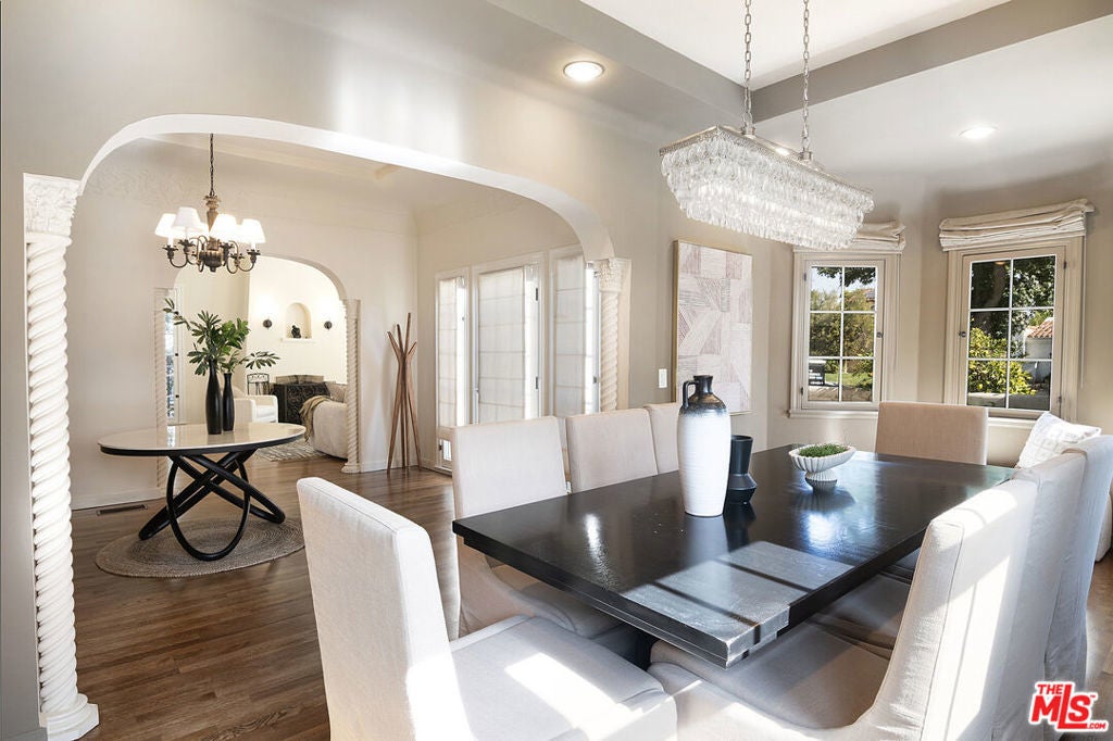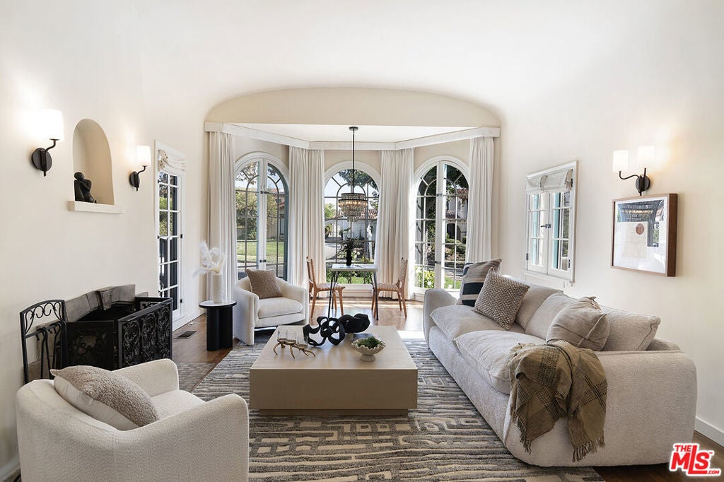 Originally built in 1928, and entirely remodeled and a second floor added to the house in 2005, 131 S Martel now has 6 beds and 4.5 baths over 3860 sq ft on a 7006 sq ft lot in a prime Miracle Mile location close to The Grove and Pan Pacific Park! The front courtyard brings you to a glass door entrance and a center hall foyer with living room on one side and dining room on the other. The living room has floor to ceiling arched windows at the front and a statement fireplace as the focal point of the room. The large formal dining room is surrounded by windows. The remodeled wood kitchen has abundant cabinetry and countertop space, a center island, 3 sinks, 2 dishwashers, double wall oven + single gas oven, oversized fridge and freezer, walk-in pantry, and built in breakfast bar. A family room with built-ins drenched in sunshine is right off the kitchen and opens to the yard. There's a great office downstairs! There are 5 beds + large office and 4.5 baths, generous closet space, and remodeled bathrooms. The primary bedroom suite has a large walk-in shower + built-in steam system + huge jetted tub with cable + Cat5 outlet. Hardwood floors, dual zone central HVAC, new solar energy + battery back-up system (that saves the current owners over 5k a yr in utility bills), 7-parameter security cameras + ADT security. A grassy yard, doggy door from house to yard, a garage for storage (that has power), and a tesla charger + high speed internet access. The location is central and amazing, right near The Grove, Pan Pacific Park, world class shopping and restaurants.