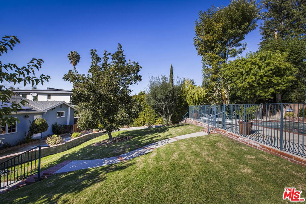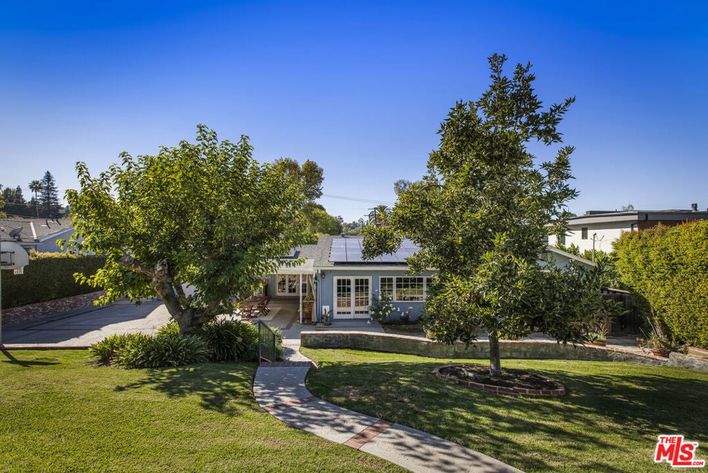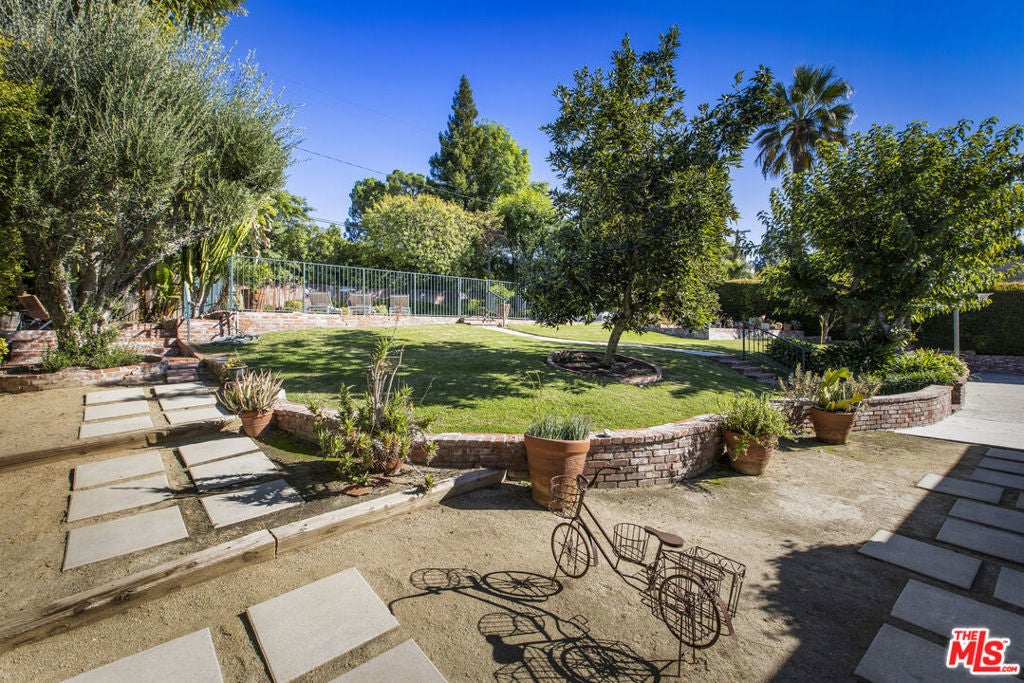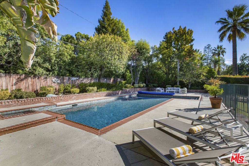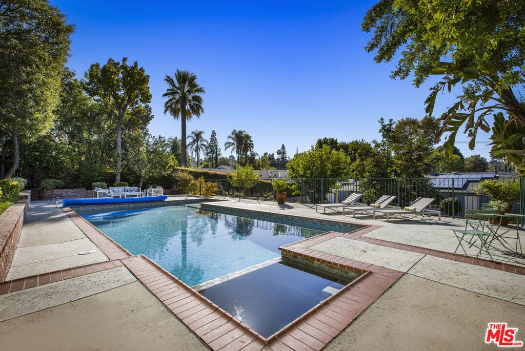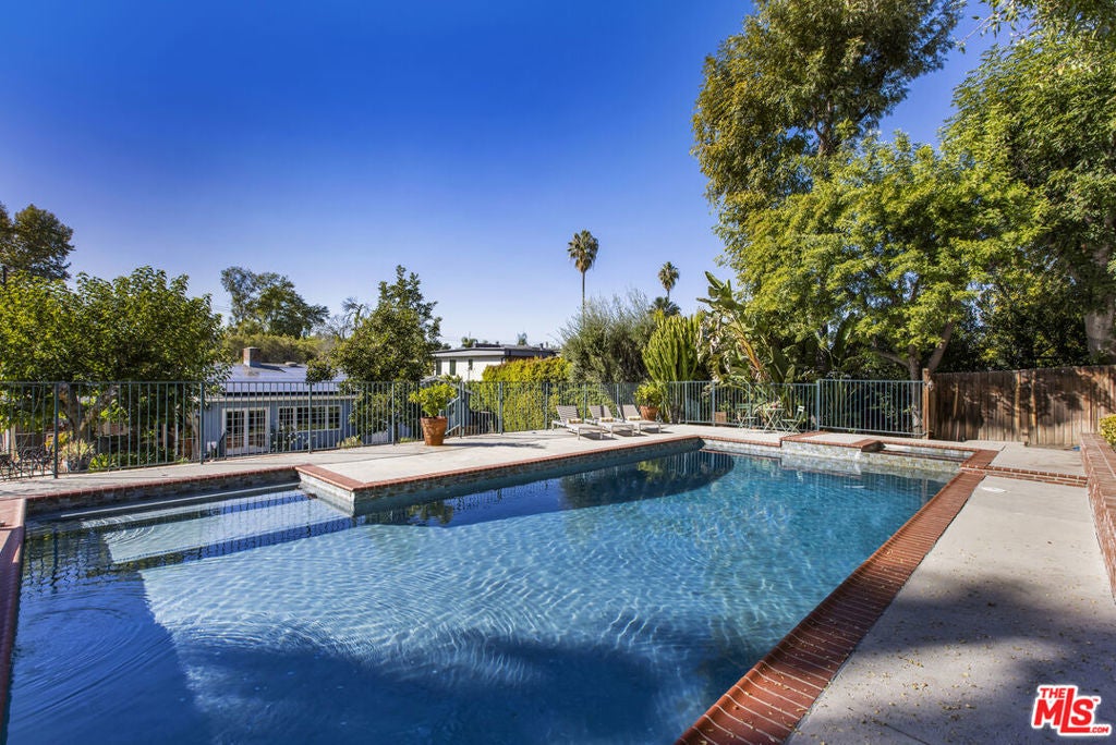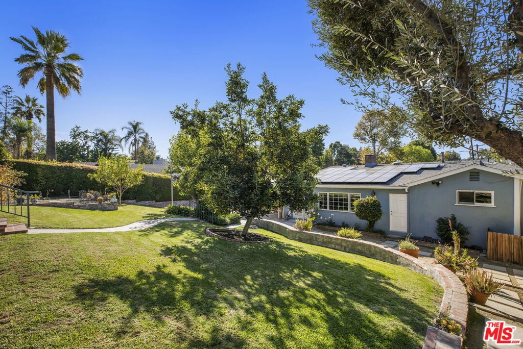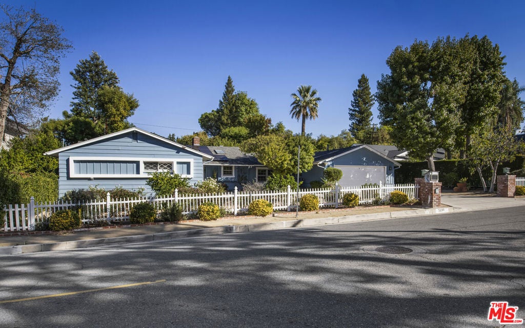 Nestled in the heart of Tarzana, just south of Ventura Blvd, this 5-bedroom, 4-bathroom Ranch-style pool home is a rare gem - lovingly maintained by the same family for nearly 40 years. Tucked behind a white picket fence, it offers the perfect blend of open-concept living, comfort, and incredible indoor-outdoor entertaining. Step inside this 1956 beauty and discover a cozy living room with beamed ceilings, a brick fireplace, and rich hardwood floors throughout. The oversized formal dining room, bathed in natural light from multiple exposures, easily accommodates dinner parties of eight guests or more, with views of the lush, park-like backyard and pool. The heart of the home is a gourmet eat-in kitchen featuring granite countertops, high-end appliances, and custom cabinetry with abundant storage. Just off the kitchen, a spacious family room with pitched, beamed ceilings is flanked by glass sliding doors on both sides, creating seamless flow to the expansive outdoor living areas. Positioned behind the family room is a versatile guest suite with its own full bathroom- ideal for multigenerational living - along with a dedicated laundry room with side-by-side washer and dryer, and direct access to the two-car garage. On the opposite side of the home, the primary suite offers a peaceful retreat with a large walk-in closet and a spa-like en suite bathroom featuring a soaking tub. Two additional generously sized bedrooms share a full Jack-and-Jill bathroom with both a separate shower and tub. A charming fifth bedroom, currently used as an office, plus an additional full bathroom in the hallway, completes this enviable floorplan. Outside, the expansive backyard (nearly 20,000 SF) is a private oasis - fully enclosed by mature trees and hedges. At the far end of the yard, you'll discover an oversized, gated pool and spa with a generous shallow area, perfect for kids to splash and play all summer long. An outdoor kitchen with built-in storage, multiple covered dining and lounging areas, and ample room for a basketball hoop or pickleball court complete this entertainer's dream yard. Additional highlights include new designer lighting, new carpeting in primary closet, fresh interior painting, a two-car garage with an EV charger, and a location just moments from some of the San Fernando Valley's best restaurants and shops such as Scratch Bar & Kitchen, Taj Mahal, Cici's Cafe, Asal Bakery, The Brothers Sushi, Casalena, Sadaf, Borekas Sephardic Pastries, Anajak Thai Cuisine, and Osteria La Buca. This special enchanting Tarzana retreat offers space, privacy, and style in one of the Valley's most desirable pockets. 2011 panels will be owned by the owner in 2031. The second group of panels can be purchased for $2700 in 2046. There are monthly payments of $127.81 and $171.50.