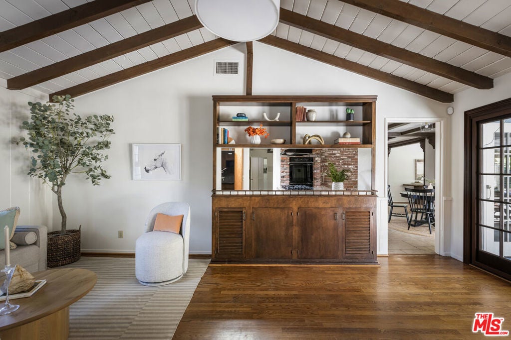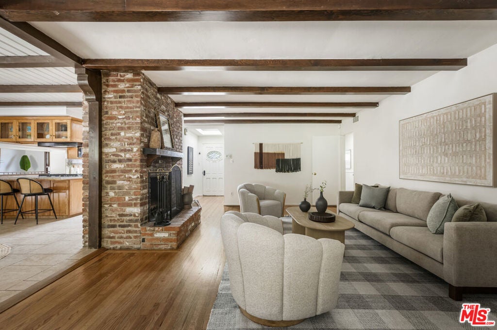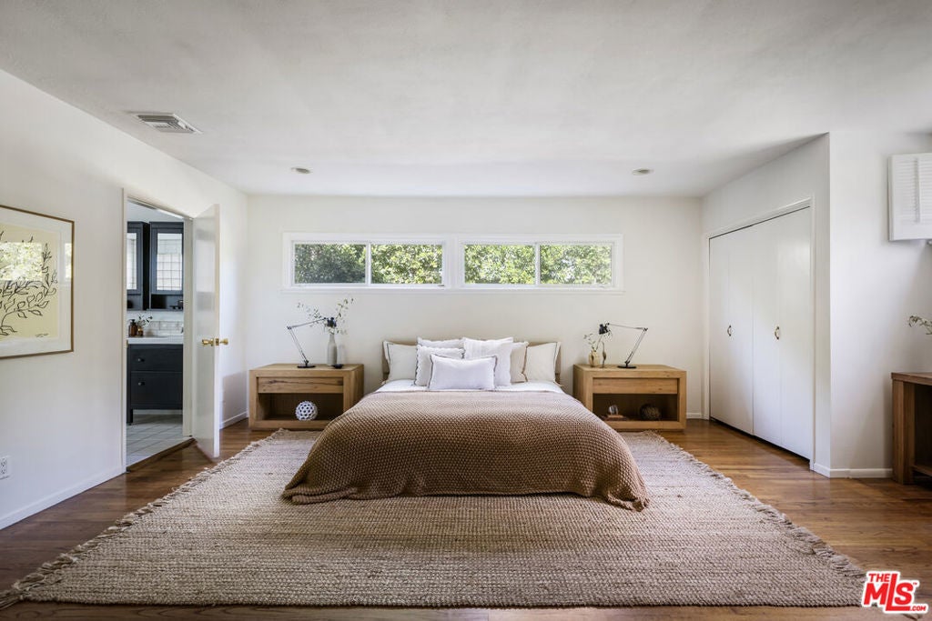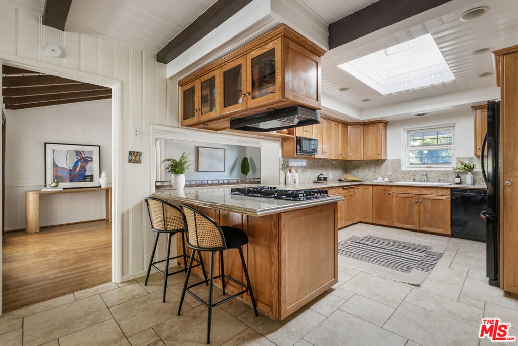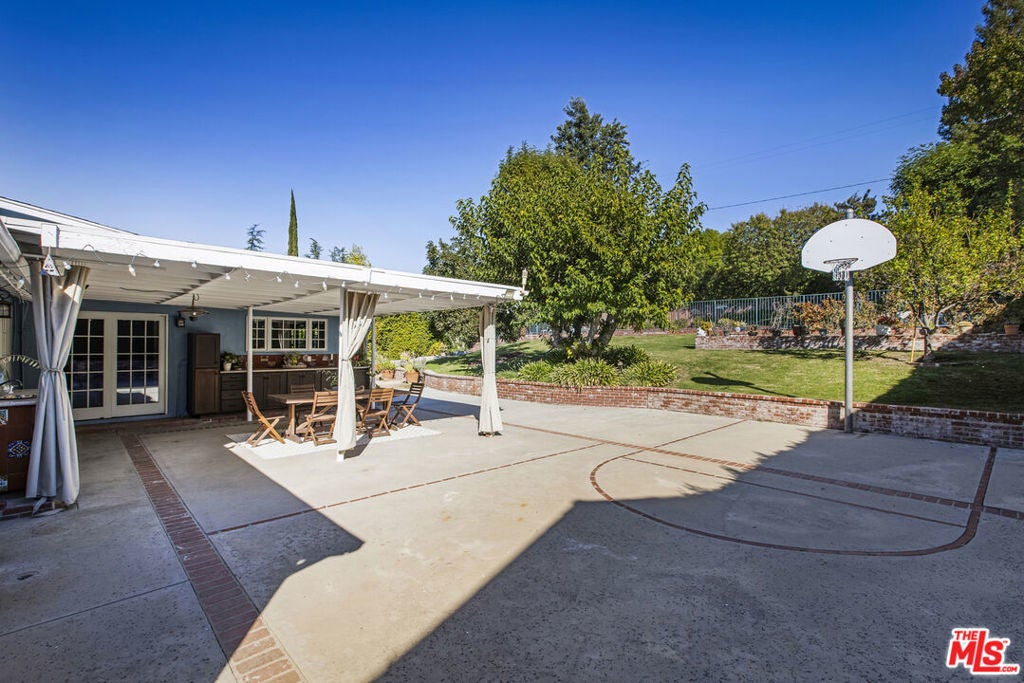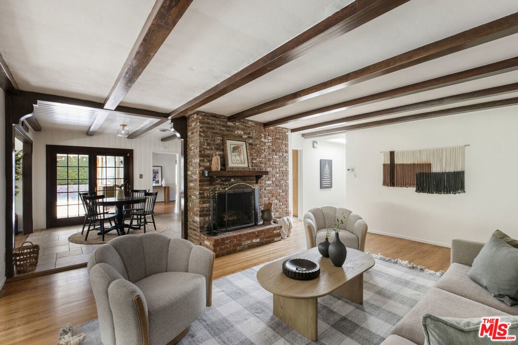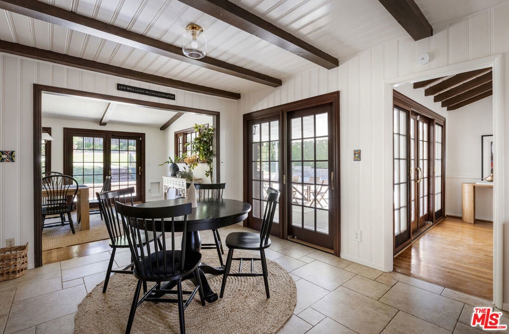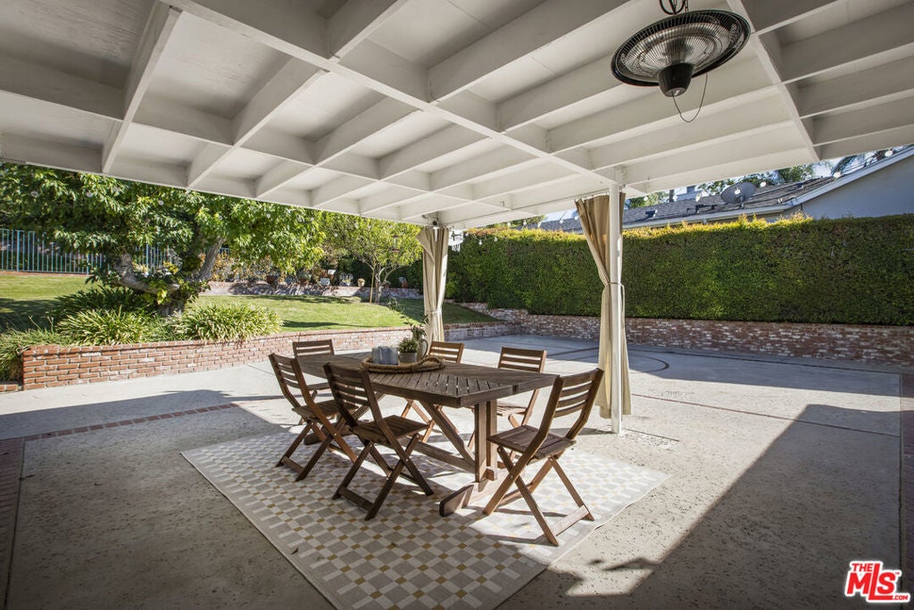 Nestled in the heart of Tarzana, just south of Ventura Blvd, this 5-bedroom, 4-bathroom Ranch-style pool home is a rare gem - lovingly maintained by the same family for nearly 40 years. Tucked behind a white picket fence, it offers the perfect blend of open-concept living, comfort, and incredible indoor-outdoor entertaining. Step inside this 1956 beauty and discover a cozy living room with beamed ceilings, a brick fireplace, and rich hardwood floors throughout. The oversized formal dining room, bathed in natural light from multiple exposures, easily accommodates dinner parties of eight guests or more, with views of the lush, park-like backyard and pool. The heart of the home is a gourmet eat-in kitchen featuring granite countertops, high-end appliances, and custom cabinetry with abundant storage. Just off the kitchen, a spacious family room with pitched, beamed ceilings is flanked by glass sliding doors on both sides, creating seamless flow to the expansive outdoor living areas. Positioned behind the family room is a versatile guest suite with its own full bathroom- ideal for multigenerational living - along with a dedicated laundry room with side-by-side washer and dryer, and direct access to the two-car garage. On the opposite side of the home, the primary suite offers a peaceful retreat with a large walk-in closet and a spa-like en suite bathroom featuring a soaking tub. Two additional generously sized bedrooms share a full Jack-and-Jill bathroom with both a separate shower and tub. A charming fifth bedroom, currently used as an office, plus an additional full bathroom in the hallway, completes this enviable floorplan. Outside, the expansive backyard (nearly 20,000 SF) is a private oasis - fully enclosed by mature trees and hedges. At the far end of the yard, you'll discover an oversized, gated pool and spa with a generous shallow area, perfect for kids to splash and play all summer long. An outdoor kitchen with built-in storage, multiple covered dining and lounging areas, and ample room for a basketball hoop or pickleball court complete this entertainer's dream yard. Additional highlights include new designer lighting, new carpeting in primary closet, fresh interior painting, a two-car garage with an EV charger, and a location just moments from some of the San Fernando Valley's best restaurants and shops such as Scratch Bar & Kitchen, Taj Mahal, Cici's Cafe, Asal Bakery, The Brothers Sushi, Casalena, Sadaf, Borekas Sephardic Pastries, Anajak Thai Cuisine, and Osteria La Buca. This special enchanting Tarzana retreat offers space, privacy, and style in one of the Valley's most desirable pockets. 2011 panels will be owned by the owner in 2031. The second group of panels can be purchased for $2700 in 2046. There are monthly payments of $127.81 and $171.50.